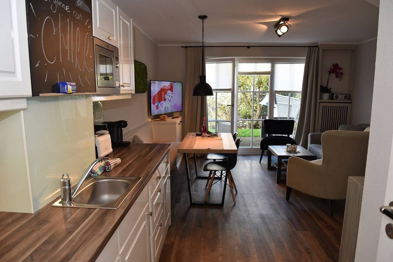 Herzlich willkommen in unserer charmanten Ferienwohnung, nur einen Steinwurf von der Wenningstedter Promenade und dem Hauptstrand entfernt! Mit einer Fläche von ca. 60 qm bietet diese Ferienwohnung im Erdgeschoss und Untergeschoss den idealen Rückzugsort für Ihren Sylt-Urlaub. Das Erdgeschoss präsentiert einen großzügigen Wohn-/Essbereich mit einer gut ausgestatteten Küchenzeile, die keine Wünsche offen lässt. Von hier aus gelangen Sie auf eine sonnige Westterrasse, auf der Sie die wohltuende Meeresluft genießen können. Im Untergeschoss erwarten Sie zwei gemütliche Schlafzimmer. Der erste Raum verfügt über ein komfortables Doppelbett, während der zweite Raum mit einem Etagenbett ausgestattet ist. Ein großzügiges Duschbad steht ebenfalls zur Verfügung und rundet das Angebot ab. Für zusätzlichen Komfort haben Sie die Möglichkeit, im Keller des Hauses Waschmaschine und Trockner gegen eine Gebühr zu nutzen. Ein Parkplatz direkt am Haus sorgt für eine bequeme Anreise und erleichtert Ihnen den Zugang zu Ihrer Ferienunterkunft. Entdecken Sie die Annehmlichkeiten von Sylt in unserer liebevoll gestalteten Ferienwohnung und erleben Sie einen unvergesslichen Aufenthalt – Erholung und Genuss erwarten Sie!