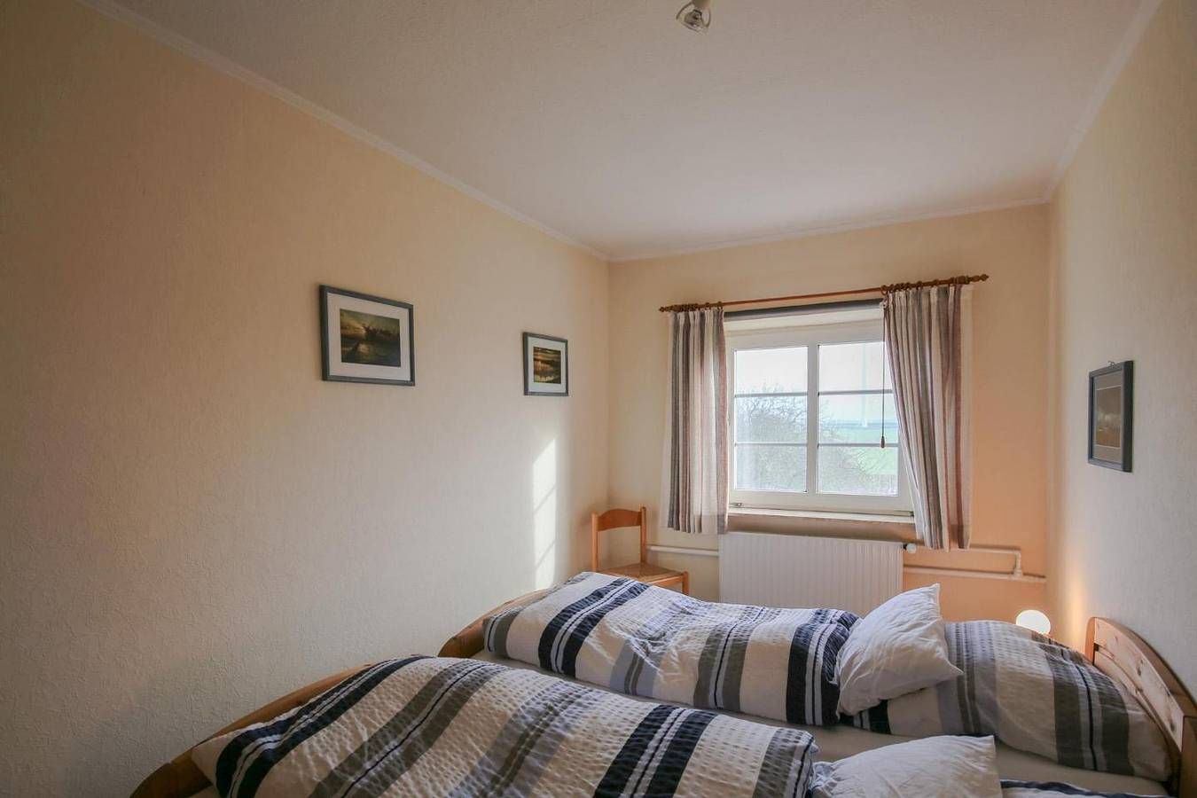 Ruhige einladende Ferienwohnung im Hof direkt am Nordseedeich mit viel Platz inmitten wunderbarer Natur. Die Lage Die Wohnungen liegen 500 Meter hinter dem Nordseedeich des Nordfriesischen Wattenmeeres. Die Hamburger Hallig und andere Bademöglichkeiten sind in unmittelbarer Nähe. Die Halligen und Inseln (Sylt und andere) sind von hier aus gut zu erreichen. Bredstedt (6 km) ist Einkaufsstadt und hat ein beheiztes Freibad. Husum als Zentrum der Westküste und Geburtsstadt von Theodor Storm ist ca. 20 km entfernt. Sie haben einen sehr reizvollen Ausblick in den Koog und zum nahen Deich. Die Ausstattung Die Wohnung ist ca. 60 qm groß, großzügig geschnitten mit einem großen lichtdurchflutetem Wohn- und Essraum. Die vielen sichtbaren Balken bei hohen Decken sorgen für ein behagliches Raumgefühl. Die Einbauküche hat eine exklusive Ausstattung (Mikrowelle, Spülmaschine, separater Eisschrank), das Schlafzimmer mit zwei zusammenstehenden Einzelbetten ist ebenso wie der Wohn-Essraum mit viel Liebe eingerichtet und nordisch dekoriert. Das Badezimmer hat eine Sauna (gegen Gebühr von nur 5,- € pro Benutzung) mit Liegefläche für zwei Personen. Im Garten stehen Grill und Gartenmöbel kostenlos zur Verfügung. Die Besonderheiten Die Unterkunft befindet sich auf dem Grundstück eines aktiv bewirtschafteten Landhofs. Mit landwirtschaftlichen Aktivitäten ist zu rechnen. In unserem Nichtraucher-Ferienhaus stellen wir Ihnen WLAN gerne kostenfrei zur Verfügung. Ihnen stehen Parkplätze direkt vor der Tür zur Verfügung. Wir bieten Ihnen erholsame ruhige Aufenthalte an der Nordsee in einem besonders schönen Hof. Der Garten ist sehr groß, mit vielen Blumenbeeten, Rosen, Obstbaumbereich und Spielbereich. Der Hofplatz bietet, neben der großen Rasenfläche mit Fußballtor, Ihnen natürlich einen Stellplatz auf dem gepflasterten Bereich vor dem Haus. Eine Erstausstattung an Bettwäsche und Handtüchern wird bei dieser Unterkunft obligatorisch hinzugebucht und ist bereits im Endpreis enthalten. Zusätzliche Wäschepakete können in den optionalen Leistungen hinzugebucht werden.