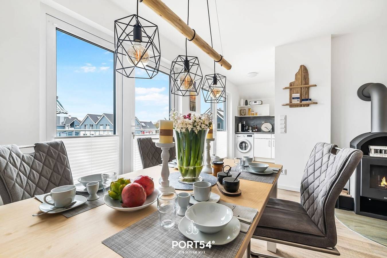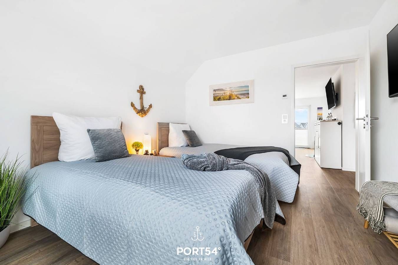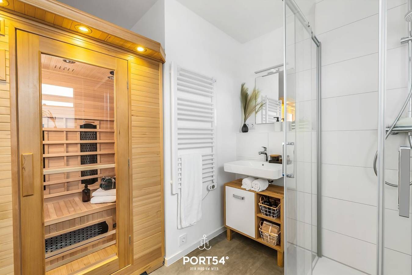 Verbringen Sie Ihren Nordseeurlaub in der exklusiven, modernen Ferienwohnung "SaMi". Ihr modernes Zuhause auf Zeit, mit eigenem PKW-Stellplatz vor dem Haus, erwartet Sie im ersten Obergeschoss auf ca. 80m² mit einer hochwertigen Ausstattung und ästhetischem Raumkonzept. Im Wohnzimmer befindet sich eine modernen Sofagarnitur zum Relaxen oder Fernsehschauen auf dem Flachbild-TV. Auf dem TV haben Sie auch Zugriff auf Netflix - Ihre Urlaubsabende können Sie also entspannt auf dem Sofa ausklingen, während Ihre Lieblingsserie läuft. Der Kamin im Wohnzimmer spendet im Winter mollige Wärme. Die offene Küche ist hochwertig ausgestattet, sodass Ihnen neben der Nespresso- und der Filterkaffeemaschine auch ein Wasserkocher, Spülmaschine, Backofen, Mikrowelle und ein Kühlschrank zur Verfügung stehen. Zwei Schlafzimmer sorgen mit einem Doppelbett, sowie zwei Einzelbetten, für erholsame Nächte. Darüber hinaus befinden sich in beiden Schlafzimmern zusätzliche Flachbild-TV's. Das geräumige Badezimmer bietet eine ebenerdige Dusche, einen Föhn und einen Handtuchtrockner. In der Infrarot-Sauna können Sie sich nach einem ausgiebigen Spaziergang entspannen. Für unsere kleinen Gäste steht ein Kinderhochstuhl zur Verfügung. Auf dem geräumigen Balkon können Sie die Sonne und die Nordseeluft genießen. Packen Sie den großen Picknickkorb mit Leckereien und starten Sie Ihren Ausflug zur Familienlagune Perlebucht. Hier werden unsere Kleinen überrascht mit tollen Spielgeräten, Klettergerüsten, Schaukeln, Hängematten und viel Platz zum Buddeln. Auch für Wassersportler wird einiges geboten. So können Sie in der Wassersportschule das Surfen und Kitesurfen erlernen. Ihre mitgebrachten oder ausgeliehenen Fahrräder, sowie einen Kinderwagen, können Sie im abschließbaren Fahrradschuppen direkt vor dem Haus unterstellen.
