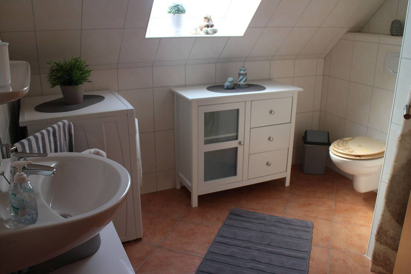 Wir bieten Ihnen eine helle und komfortabel eingerichtete Ferienwohnung im Dachgeschoss mit separatem Eingang. Hier können Sie zu jeder Jahreszeit einen erholsamen Urlaub genießen. Unsere gemütliche Ferienwohnung bietet mit ihren 85qm ausreichen Platz für 6 Personen. Die Wohnung verfügt über 3 Schlafräume, ein Wohn-/Essraum mit offener Küche und 1 Bad mit sep. WC. Das1. Schlafzimmer ist sehr geräumig und mit einem großen Doppelbett, 2 Nachttischen, einem Kleiderschrank und eínem Stuhl ausgestattet. Das 2. Schlafzimmer verfügt über zwei Einzelbetten und im 3. Schlafzimmer steht Ihnen ein Etagenbett zur Verfügung. Im Wohnbereich erwarten Sie TV, CD-Player und ein Internetanschluß. die Küche ist mit Geschirrspüler, Mikrowelle, Kaffeemaschine, Kühlschrank mit Gefrierschrank, Toaster,Wasserkocher und weiteren Kochutensilien ausgestattet. Im Duschbad steht Ihnen auch eine Waschmaschine zur Verfügung. Im Außenbereich gibt es eine Terrasse mit Gartenmöbel, Sandkasten und einem Parkplatz. Die Ferienwohnung befindet sich in zentraler Lage und bietet einen wunderschönen Blick über Feld und Wiesen. Wettwäsche ist im Preiß inklusive Bitte beachten Sie, dass eine eventuell anfallende Kurabgabe nicht im Gesamtpreis enthalten ist. Diese ist vor Ort zu leisten.