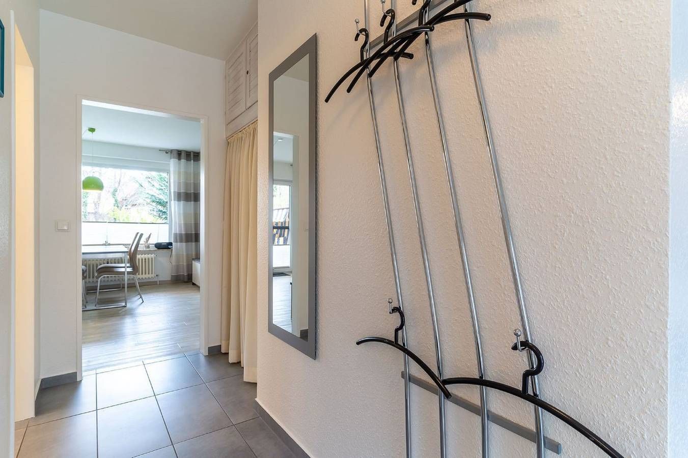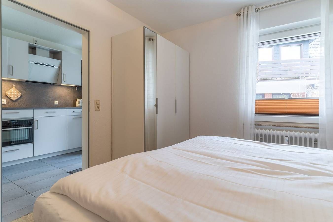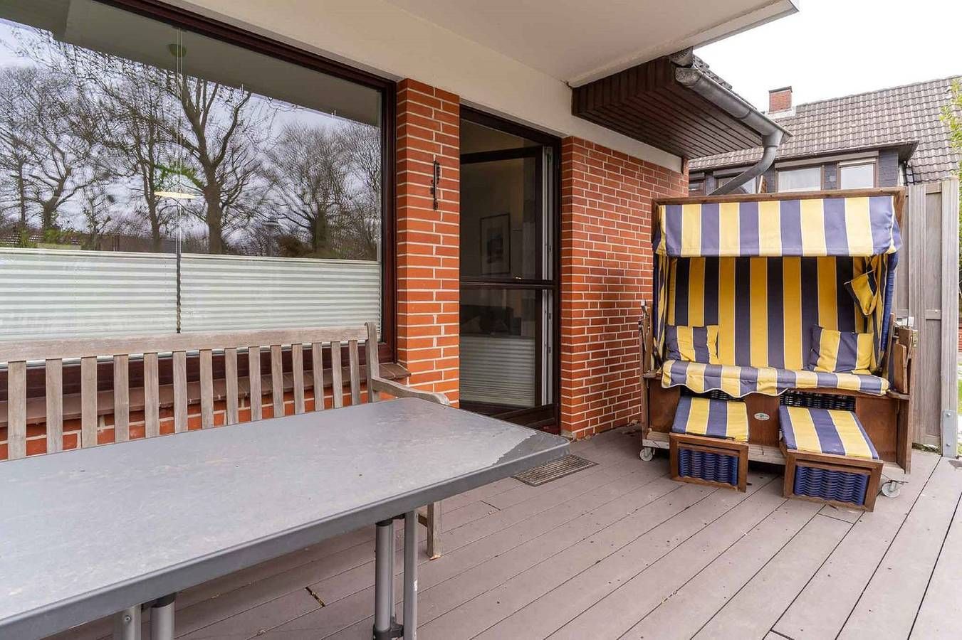 Ferienwohnung Schräggeest - Diese Ferienwohnung befindet sich im Ortsteil Dorf von St. Peter-Ording. Sowohl das Dorfzentrum als auch das Gewerbegebiet sind bequem zu Fuß erreichbar, und trotz der zentralen Lage genießen Sie hier eine ruhige Atmosphäre, fernab vom Trubel. Der Südstrand ist mit dem Rad in etwa 10 Minuten erreichbar, und zur Ordinger Sandbank radeln Sie etwa 15 Minuten. Die Wohnung erstreckt sich über das Erdgeschoss und bietet eine Fläche von etwa 52 qm. Die Ausstattung ist hochwertig und ansprechend. Der helle und großzügige Wohnbereich verfügt über einen Esstisch und eine Wohnlandschaft, die Platz für bis zu 4 Personen bietet. Mit einem Schlafzimmer und zwei Betten im Schlafsofa im Wohnbereich stehen zwei separate Schlafbereiche zur Verfügung. Fliegengitter im Schlafzimmer sorgen für zusätzlichen Komfort. Die Küche lässt keine Wünsche offen und ist mit Geschirrspüler, Ceranfeld, Kühlschrank, Abzugshaube und Backofen ausgestattet. Ein PKW-Stellplatz befindet sich auf dem Grundstück. Das barrierefreie Duschbad sowie Münzwaschmaschine und -trockner stehen den Gästen zur Verfügung. Die Terrasse mit Strandkorb und Gartenmöbeln lädt dazu ein, abends ein kühles Getränk zu genießen und den Tag nach einem schönen Strandtag ausklingen zu lassen.