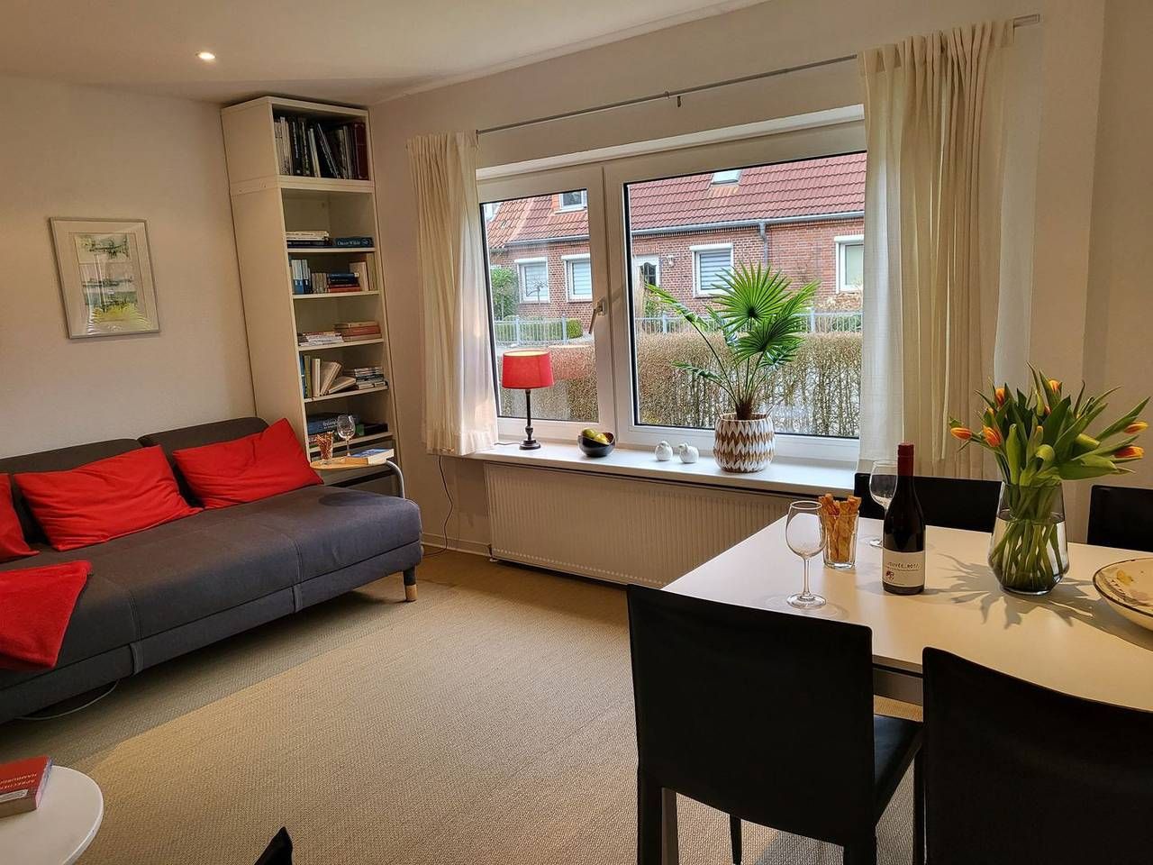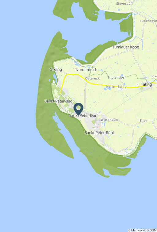 Wohnung Sissy Die moderne Ferienwohnung liegt angenehm ruhig im beliebten und lebendigen Ortsteil Dorf. Von dort sind das Dorfzentrum, vielfältige Einkaufsmöglichkeiten sowie Restaurants und Cafés fußläufig in kürzester Zeit erreichbar. Mittwochs findet der Wochenmarkt mit regionalem Angebot auf dem Marktplatz statt. Das Gewerbegebiet ist fußläufig erreichbar. Auch der Südstrand ist in wenigen Gehminuten erreicht. Zur modernen Ferienunterkunft in St. Peter Ording gehört eine abschließbare Garage für Fahrräder bzw. E-Bikes. Die Wohnung Sissy hat ca. 40 qm und eine schöne Terrasse zum Garten gelegen. Für 2 Personen bietet Sie ein ruhiges zentral gelegenes Quartier. In der Küche steht ein Herd mit Backofen, Geschirrspüler und Kühlschrank zur Verfügung und ist auch sonst mit reichlich Geschirr und Gläsern ausgestattet. Der Wohnraum gestaltet sich gemütlich mit einer gemütlichen Couch und Esstisch. Duschbad mit WC Separates Schlafzimmer mit einem 140x200 cm Doppelbett, der Einstiegt ist nur von einer Seite und vom Fussende aus möglich. Eine Person kann auch auf dem Sofa schlafen. Wichtige Informationen: Nichtraucherwohnung, keine Tiere, WLAN vorhanden, Fahrräder können in der Garage abgestellt werden, PKW-Stellplatz links vom Haus