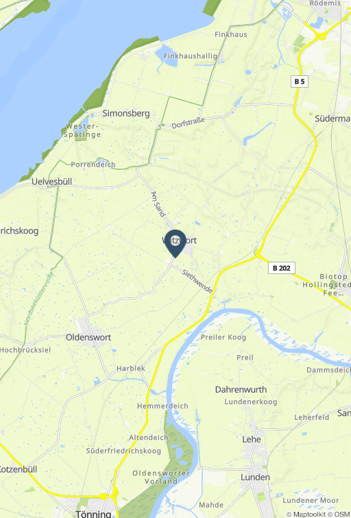 Komfortabler Urlaub auf dem Lande: Unsere Ferienwohnung Sophie lädt Sie ein zu einem erholsamen Urlaub in ruhiger Lage, fernab vom Trubel in Witzwort auf Eiderstedt. Lage Unsere komfortabel eingerichtete Zwei-Zimmer-Ferienwohnung liegt in dem urigen Dorf Witzwort auf Eiderstedt auf einem landwirtschaftlichen Hof, nur 10 km von Husum mit dem idyllischen Hafen und der lebhaften Innenstadt und nur 30 km von Sankt Peter-Ording mit seinen schönen Sandstränden entfernt. Das Ortszentrum von Witzwort und der dortige Lebensmittel-Laden sind nur ca. 10 Geh-Minuten entfernt. Ausstattung Die ca. 100 qm große Ferienwohnung im Erdgeschoss ist modern und exklusiv eingerichtet. Das Wohnzimmer ist mit einer großen Wohnlandschaft mit Schlaffunktion (160 x 200), Ledersessel, Smart-TV (Sat) und Bluetooth-Soundsystem ausgestattet. Am Esstisch finden bis zu 4 Personen Platz. Die moderne, offene Küche ist mit Cerankochfeld, Backofen, Mikrowelle, Geschirrspüler und Kühl-Gefrierkombination ausgestattet. Vor dem Wohnzimmer befindet sich die möblierte Südterrasse und der hundesicher eingezäunte Garten. Nach einem erlebnisreichen Urlaubstag finden Sie Ruhe im separaten Schlafzimmer mit einem Boxspring-Doppelbett (180x200) mit elektrisch verstellbaren Lattenrosten. Hier steht Ihnen auch ein Fernseher zur Verfügung. Das Badezimmer mit ebenerdiger Regendusche, WC, Handtuchwärmer und Waschmaschine rundet das Bild ab. Die Räume werden über eine Fußbodenheizung beheizt. Besonderheiten Hunde sind herzlich willkommen. Der eingezäunte Garten (Zaunhöhe: 1,20 m) gibt Ihnen den nötigen Freiraum. Vom Parkplatz bis zur Eingangstür gibt es keine Stufen (Rampe) und die Türschwelle ist niedrig. Daher ist diese Unterkunft auch für Rollstuhlfahrer geeignet. Gerne stellen wir unseren Gästen kostenloses WLAN zur Verfügung. Fahrräder können im Carport abgestellt werden. Parkplätze sind direkt am Haus vorhanden. Eine Erstausstattung an Bettwäsche und Handtüchern wird bei dieser Unterkunft obligatorisch hinzugebucht und ist bereits im Endpreis enthalten. Zusätzliche Wäschepakete können in den optionalen Leistungen ergänzt werden. Ein Paradies auch für Kinder: Auf dem Hof gibt es sanftmütige Noriker-Wallache, Ziegen, Schafe und Rinder zum Streicheln.
