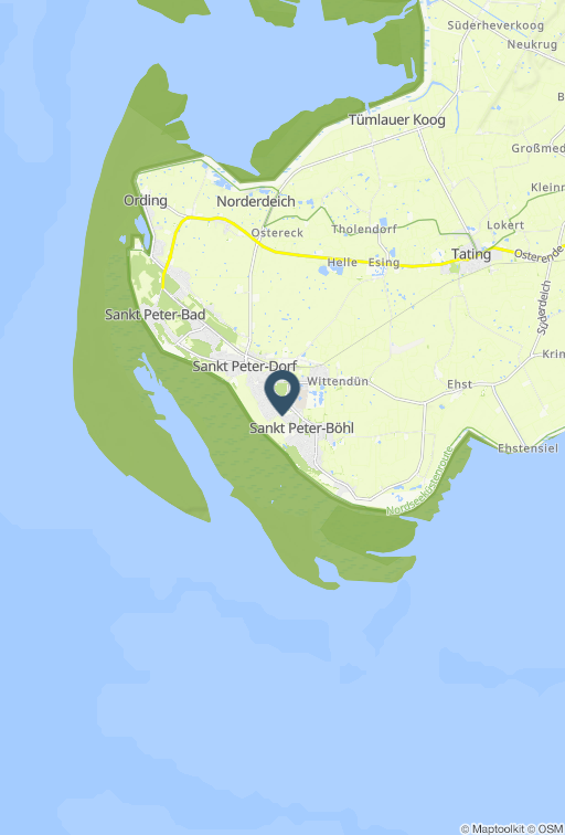 Wohnen im Erdgeschoß auf 74qm für bis zu 4 Personen Ein gemütliches Wohnzimmer mit Kaminofen sorgt für eine entspannte Atmosphäre. Zwei Schlafzimmer bescheren Ihnen einen angenehmen Schlaf. Ein Schlafzimmer ist mit einem Doppelbett, das andere mit zwei Einzelbetten ausgestattet. Auf der eigenen Terrasse lassen Sie sich von der Sonne verwöhnen. Die Küche ist voll eingerichtet (u.a. Geschirrspüler Backofen,...). Ein Vollbad mit Dusche, WC und Badewanne ist vorhanden. Ein PKW-Stellplatz ist vorhanden. Haustiere sind in dieser Wohnung leider nicht erlaubt. Das Wäschepaket kann gegen eine Gebühr pro Person hinzugebucht werden. Ferienwohnung im Herzen von St. Peter-Dorf – zentral, charmant und naturnah Unsere liebevoll eingerichtete Ferienwohnung liegt in direkter Nähe zum historischen Zentrum von St. Peter-Dorf – nur wenige Gehminuten vom Bahnhof, diversen Einkaufsmöglichkeiten und gemütlichen Restaurants entfernt. Im sogenannten „stillen Dorf“ finden Sie alles, was das Urlaubsherz begehrt: von einem Edeka-Markt über Spezialitätengeschäfte bis hin zum Bernsteinmuseum und dem Museum der Landschaft. Der Deich ist nur ca. 5 Gehminuten entfernt. Von dort aus führt ein idyllischer Weg durch die Salzwiesen – etwa 15 bis 20 Minuten zu Fuß – bis zur beliebten Badezone am Strand. Eine Bushaltestelle befindet sich direkt gegenüber der Unterkunft; mit Ihrer Gästekarte nutzen Sie den Ortsbus kostenfrei. Auch Naturliebhaber kommen auf ihre Kosten: Durch den nahen Kurwald erreichen Sie bequem den Westküstenpark mit seinen täglichen Robbenfütterungen sowie zwei nahegelegene Reha-Kliniken. Sonstiges: Ein Wäschepaket (Bettwäsche und Handtücher) kann gegen Gebühr pro Person hinzugebucht werden. Wir freuen uns, Sie bald bei uns begrüßen zu dürfen! Das Wäschepaket kann gegen eine Gebühr pro Person hinzugebucht werden. Die Anreise kann ab 15Uhr stattfinden, die Abreise muss bis um 10Uhr erfolgen. Vom Hamburg kommend folgen Sie der A23 bis zur Abfahrt Heide-West. Über Wesselburen gelangen Sie direkt nach St. Peter-Ording (Ortsteil Böhl). Am Kreisverkehr im Ort nehmen Sie die letzte Ausfahrt in die Böhler Landstraße. Von hier aus biegen Sie links in die Pestalozzistraße ab. Alternativ ist die Bahnverbindung vorhanden. Der Ausstieg ist St. Peter-Ording Süd.