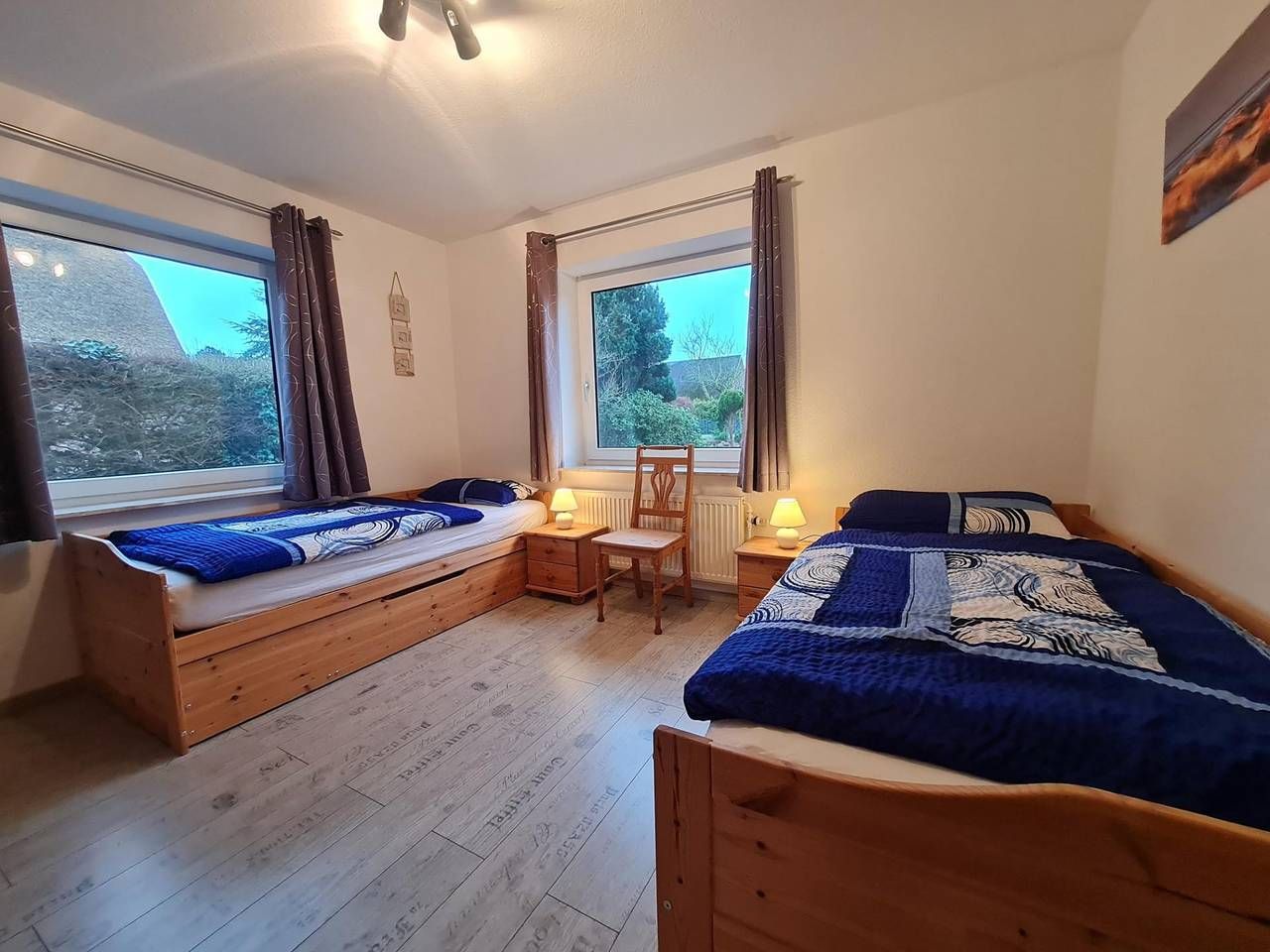 Wohnen im Erdgeschoß auf 74qm für bis zu 4 Personen Ein gemütliches Wohnzimmer mit Kaminofen sorgt für eine entspannte Atmosphäre. Zwei Schlafzimmer bescheren Ihnen einen angenehmen Schlaf. Ein Schlafzimmer ist mit einem...
