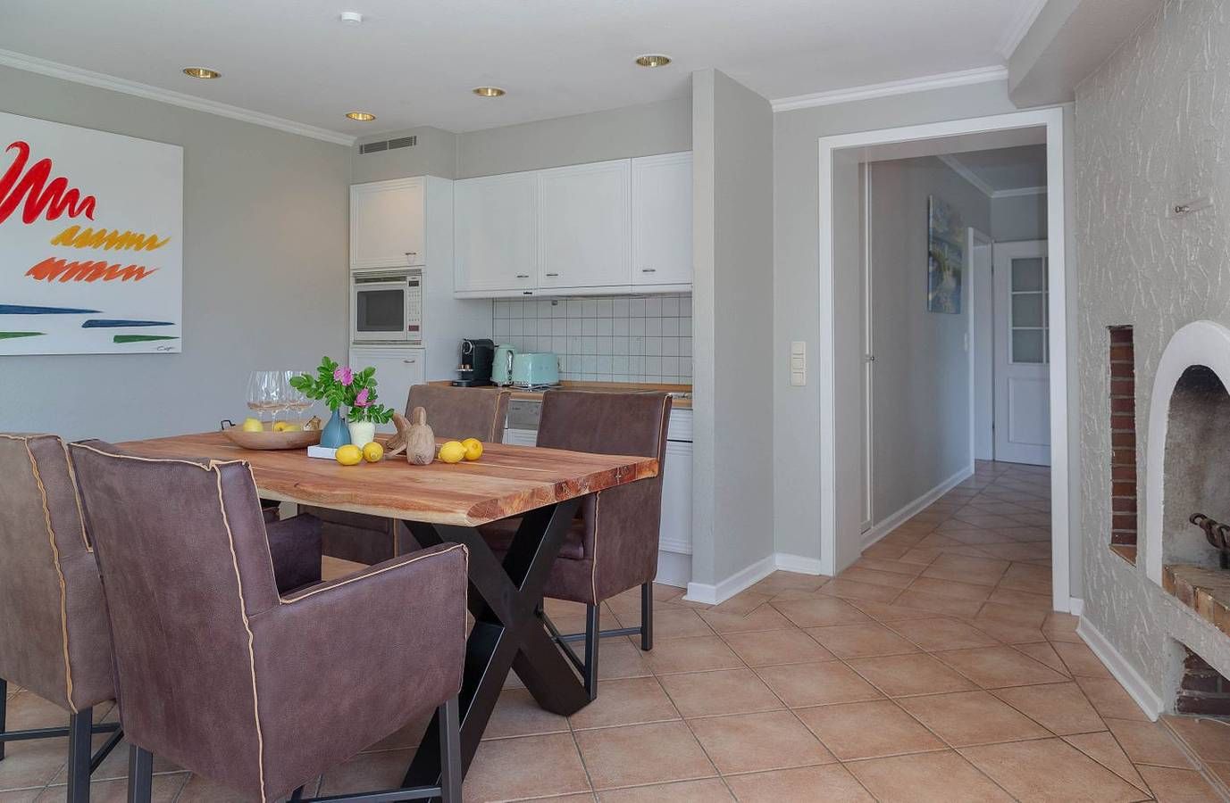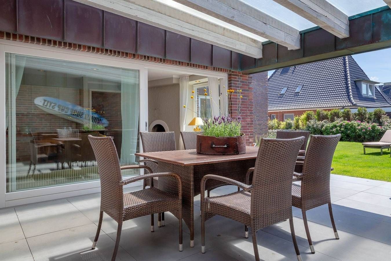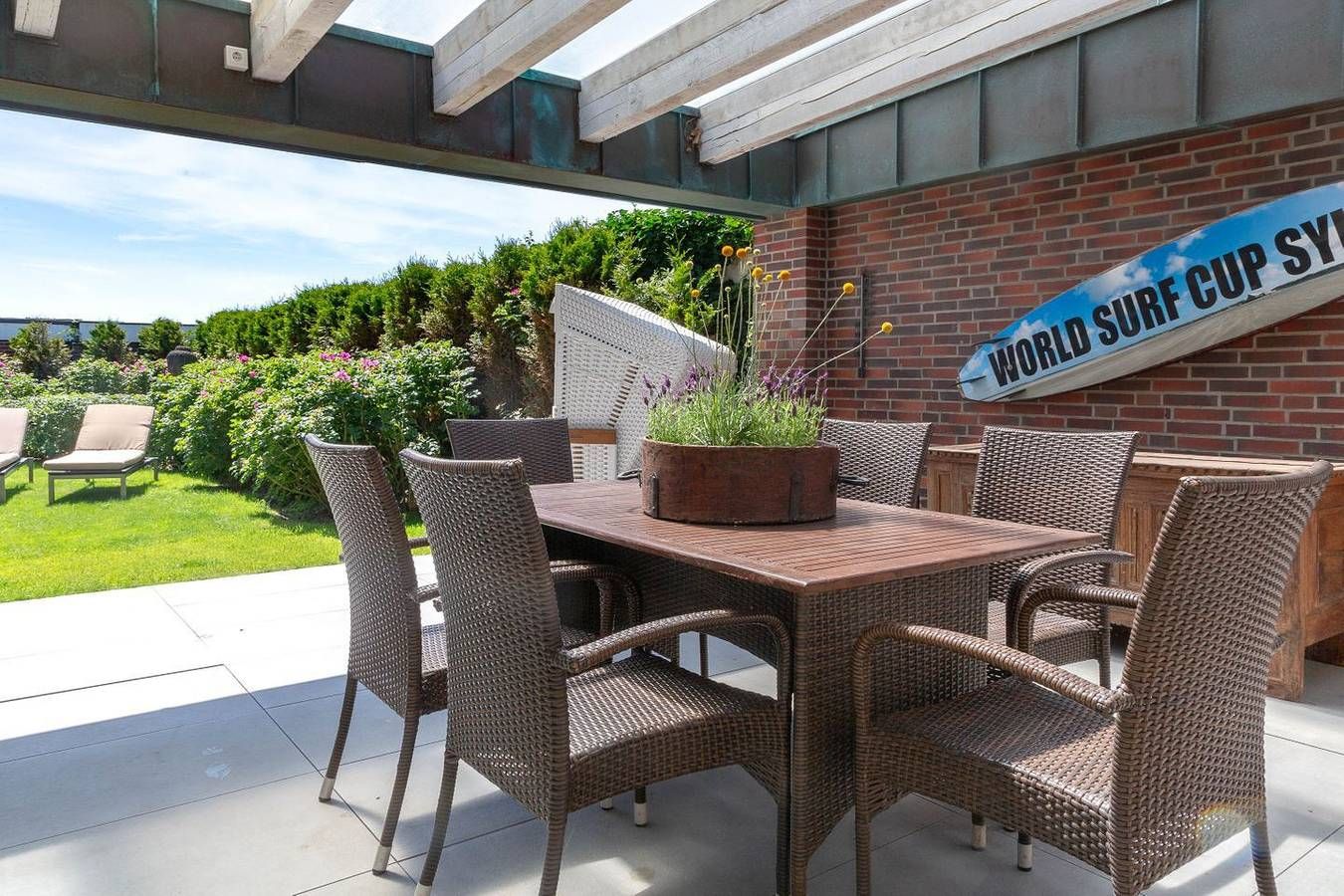 Cottage 6- Wir heißen Sie herzlichst willkommen in unserer 3-Zimmer-Ferienwohnung Strand-Cottage in der "Strandvilla Schützenstraße 4" in Westerland. Die großzügig gestaltete Wohnung mit ca. 142 qm erstreckt sich über 2 Ebenen und bietet Ihnen eine überdachte Terasse mit Garten. Eintreffen und wohlfühlen - lautet hier die Maxime! Diese Erdgeschosswohnung ist ideal für bis zu 4 Personen. Sie besitzt zwei Bäder mit Dusche und WC. Das Wohnzimmer hat große Fensterfronten zum Südwesten und einen Kamin. Die Küche ist ausgestattet mit einem Essbereich für 4 Personen, einem 4er Cerankochfeld, Geschirrspüler, Mikrowellenbackofen und einem zweiten Kamin! Von hier aus geht es zur großen, teilweises überdachten Süd-/Westterasse mit Gartenmöbeln und Strandkorb. Die beiden Schlafzimmer verfügen über jeweils über ein TV. Eines hat einen begehbaren Kleiderschrank, das andere Einbauschränke. Im Souterrain des Hauses befinden sich Waschmaschine und Trockner, ein Bügelbrett und Bügeleisen sowie eine Sauna, die gemeinschaftlich genutzt werden können. Selbstverständlich gibt es im gesamten Haus WLAN. Nette Hunde sind auf Anfrage erlaubt. Hierfür fällt eine zusätzliche Endreinigungsgebühr in Höhe von 120,-- € an.