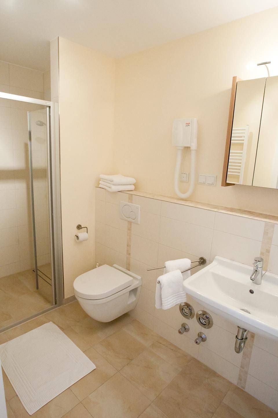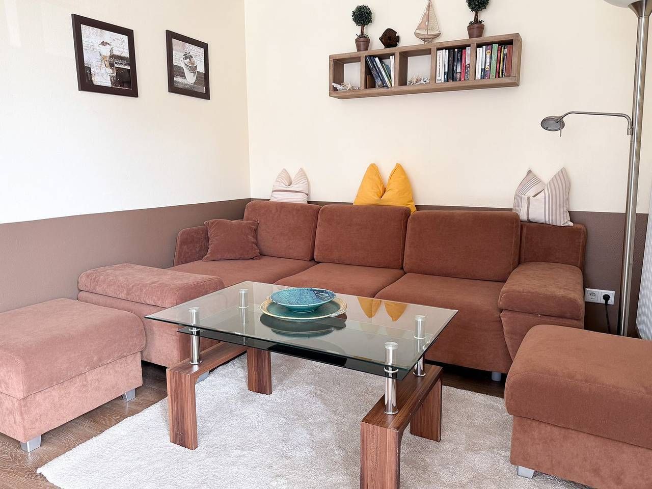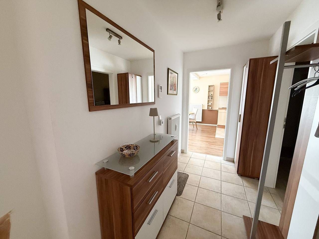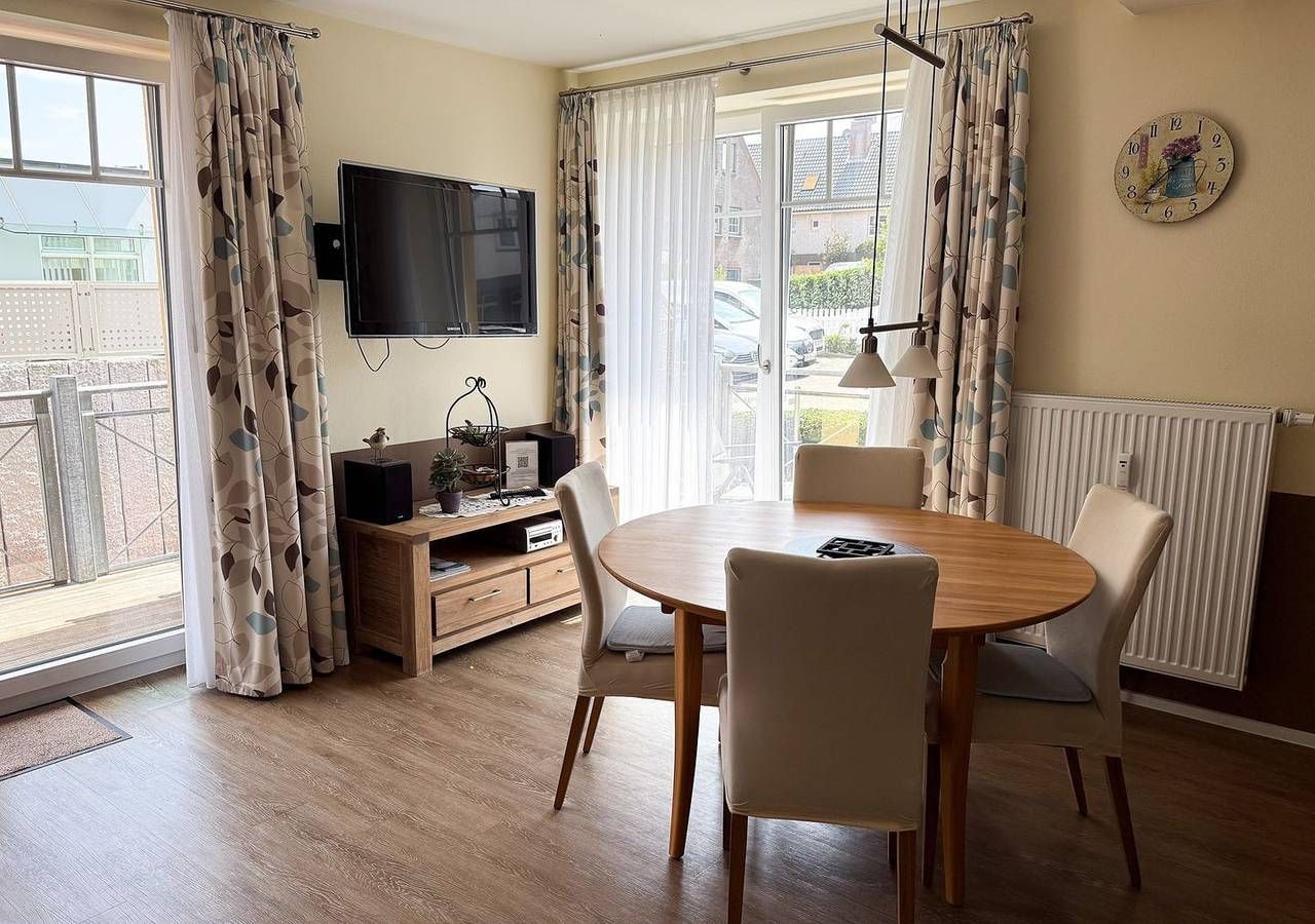Die Ferienwohnung *Strand Residenz 9* im Hochparterre des Hauses *Strand Residenz* in Wittdün auf Amrum ist eine 2-Zimmer-Ferienwohnung (ca. 59 qm Grundfläche) mit Schlafmöglichkeiten für 2 bis 4 Personen. Die Wohnung verfügt über 1 Wohnraum mit WLAN, Sat-TV und offener Küche, 1 Schlafzimmer, 1 Badezimmer mit Dusche und WC; ein Süd-Ost-Balkon mit Strandkorb und Gartenmöbeln (April bis Oktober) und seitlichem Blick auf das Wattenmeer. Im Keller befinden sich eine Münz-Waschmaschine und ein Münz-Trockner sowie eine Münz-Sauna zur Gemeinschaftsnutzung (separate Kosten), PKW-Stellplatz am Haus.