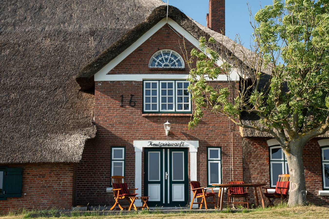 Strandläuferwohnung – Erholung mit Infrarotsauna Maximal 4 Personen | 90 m² Die Strandläuferwohnung im Erdgeschoss bietet auf 90 m² Platz für bis zu vier Personen und ist der ideale Rückzugsort für alle, die sich nach Erholung und Ruhe sehnen. Sie verfügt über einen separaten Eingang, sodass Sie ganz in Ruhe Ihren Aufenthalt genießen können. Ein besonderes Highlight der Wohnung ist die Infrarotsauna, die Ihnen nach einem Tag an der Nordsee Entspannung pur bietet. Warmherzig und mit vielen liebevollen Details eingerichtet, lädt die Wohnung zum Wohlfühlen und Verweilen ein. Der großzügige Wohnbereich ist perfekt, um bei einer Tasse Tee zu entspannen. Nach dem Saunagang können Sie sich in eines der großen Doppelbetten einkuscheln und den Tag gemütlich ausklingen lassen. Genuss am Morgen Starten Sie den Tag mit unserem vielfältigen Frühstücksbuffet, das für jeden Geschmack etwas bereithält – von süß bis herzhaft, regional bis saisonal. Freuen Sie sich auf unsere "Daily Surprise" – eine hausgemachte Spezialität, die Ihren Morgen bereichert. Alles wird frisch zubereitet und mit Liebe gebacken. Gerne erfüllen wir auch Ihre persönlichen Wünsche. Besondere Momente in der "Lohe" Die "Lohe" in der historischen Knutzenswarft steht exklusiv unseren Gästen für gemütliche Zusammenkünfte oder kleinere Feiern zur Verfügung. Der Raum bietet Platz für bis zu 25 Personen. Komfortabler Aufenthalt mit unserem Wäschepaket Buchen Sie ein Wäschepaket mit Bettwäsche, Handtüchern und Badematten. Nach einer Woche tauschen wir es kostenlos für Sie aus. Hunde herzlich willkommen – mit Einschränkungen Auch Ihr vierbeiniger Begleiter darf mitreisen! Wir erlauben einen Hund pro Aufenthalt (bis maximal 25 kg). Bitte informieren Sie uns bei der Buchung, damit wir alles für Sie vorbereiten können.