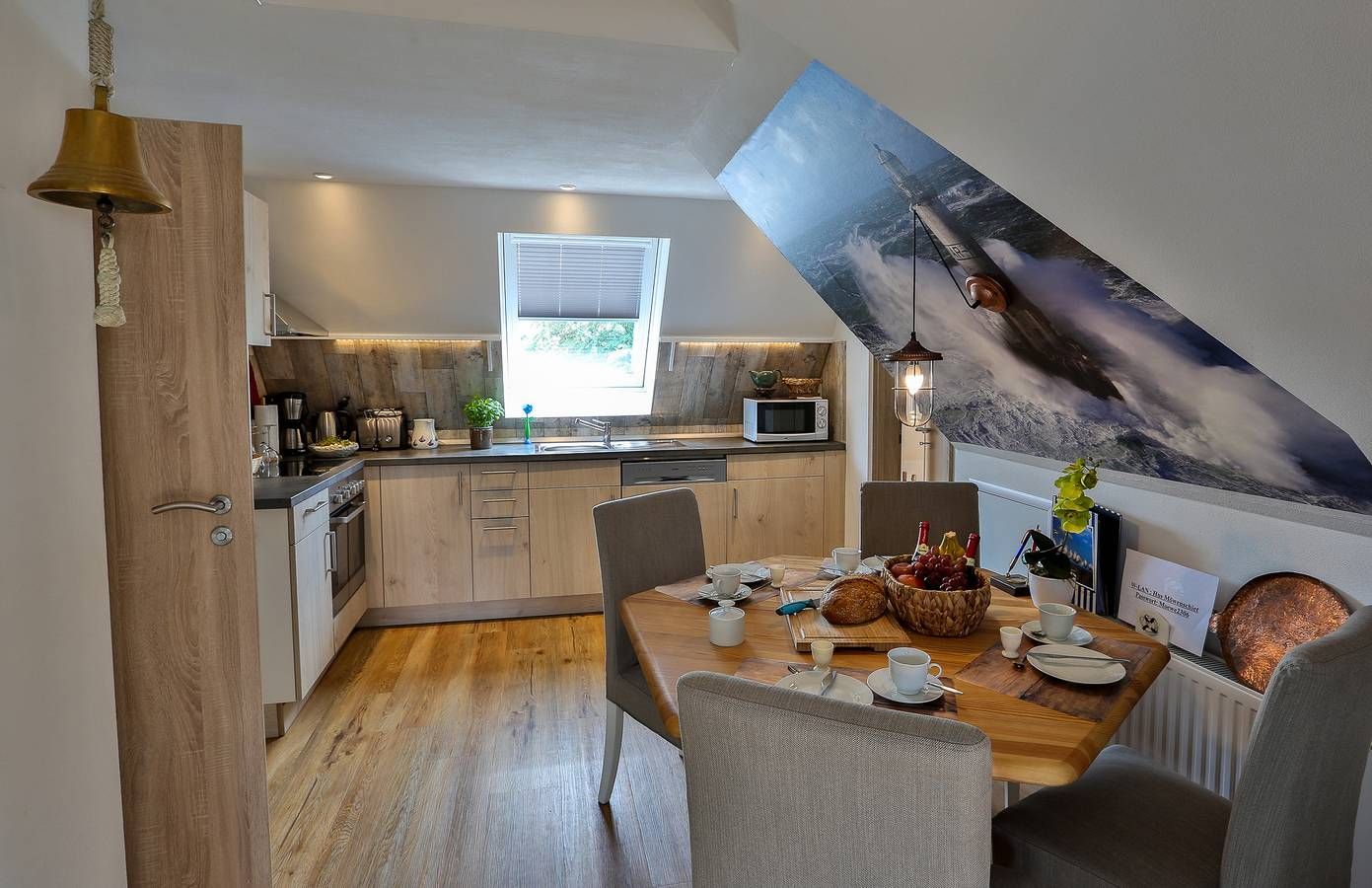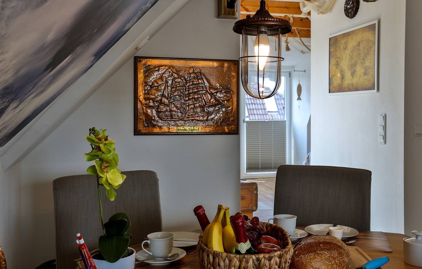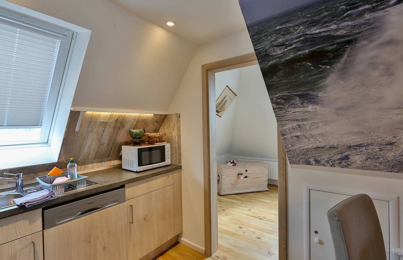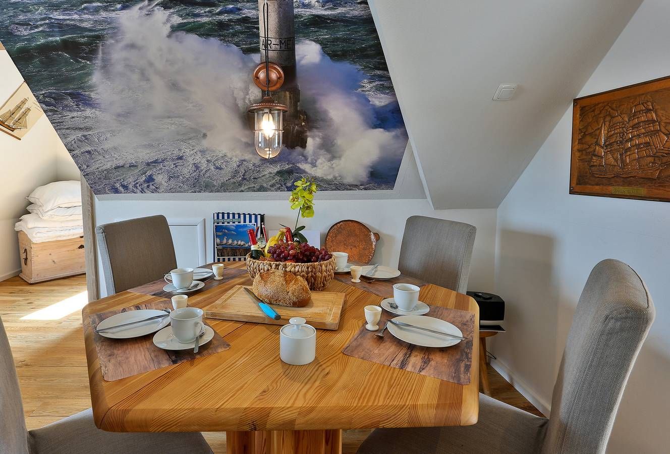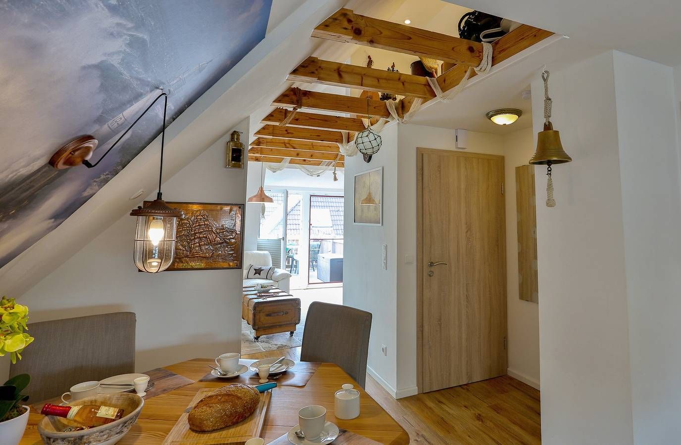 Für ihren unbeschwerten Familienurlaub in Büsum steht die Ferienwohnung Sturmmöwe im Hus Möwenschiet mit ihrer umfangreichen Ausstattung und modernen, komfortablen, maritimen Einrichtung für 2 - 4 Personen zur Verfügung. Die gemütliche Ferienwohnung ist hervorragend für Familien mit 1-2 Kindern oder Paare geeignet. Ideal auch für den Urlaub mit Hund. Die Ferienwohnung Sturmmöwe ist die perfekte Kombination aus zentraler Lage und angehehmer Ruhe um mal wirklich vom Stress des Alltags zu entspannen. Trotz der ruhigen Lage können Sie in 10-15 Minuten fußläufig zu allen wichtigen Stellen, insbesondere den beliebten Strand in Büsum, gelangen. Sie müssen ihre Oase nicht mit diversen anderen Gästen teilen oder den Partylärm vom Strand anhören. Wohnen Im stielvollen Ambiente können Sie es sich auf zwei anspechenden Ledersofas gemütlich machen und von dort aus auf einem großen Flachbild-TV ihre Lieblings Sendungen ansehen. Die Dekoration integriert modernes Wohnen mit den gemütlichen Flair Schleswig-Holsteins mit seiner maritimen Art, ohne aufdringlich zu sein. Wir bieten ihnen natürlich kostenloses W-Lan an. Schlafen Besonderen Wert legen wir auf gemütliche Betten (beide 160x200), gute unverbrauchte Matratzen und ein schönes Ambiente in den Schlafräumen, damit die Nächte erholsam sind und der Urlaub vollends genossen werden kann. Essen/Kochen Die Küche bietet Ihnen eine umfangreiche Ausstattung an Geschirr und Töpfen / Pfannen und Küchengeräten. Ebenso wie einen Backofen, Microwelle und eine Geschirrspülmaschine. Eine Senseo- und eine Tassimo-Kaffeemaschine stehen Ihnen ebenso zur Verfügung wie eine klassische Kaffeemaschine oder ein Raclette-Grill. Am Tisch im Essbereich können bequem 4 Personen sitzen, essen oder spielen. Bad /WC Im großzügigen Duschbad finden Sie nicht nur das WC, eine geräumige Dusche und einen Schrank unter dem Waschbecken, sondern auch einen Fön und einen extra Schminkspiegel und einen Erste-Hilfe-Kasten für den Notfall. Im Badezimmer finden Sie eine Waschmaschine zur kostenfreien Benutzung. Außenbereich Auf dem großen Balkon (Südlage) kann man gemütlich sitzen und laue Sommerabende genießen oder gemeinsam grillen (Der Grill steht für sie zur freien Verfügung). Ein Trockner und ein Gefrierschrank stehen in der Garage zur freien Benutzung. Ebenso finden sie in der Garage mehrere Bollerwagen zum kostenfreien Ausleihen. Dort können auch Fahrräder/E-bikes oder ein elektrischer Rollstuhl untergestellt werden. Ihre Kinder sind uns herzlich willkommen! Im beliebten Kinderzimmer finden Sie eine einzigartige Kletterwand mit Rutschmöglichkeit. Für unsere kleinsten Gäste steht eine umfangreiche Babyausstattung kostenlos für sie bereit (Bettchen, Babyphone, Hochstuhl, Wickelunterlage, Babybettwäsche und Flaschenwärmer). Nutzen Sie unsere kostenfreien Bollerwagen für Ausflüge mit der ganzen Familie. Fellnasen willkommen! Möchten Sie ihren Hund mit in dem Urlaub nehmen, so ist das bei uns gegen einen geringen Aufpreis möglich. Die Ferienwohnung bietet genug Raum und Ausstattung für den Hund. Für unsere Fellnasengäste haben wir verschiedene Körbchen, Näpfe und Leinen, sowie einen Bodenhaken und eine lange Laufleine für Sie bereitgestellt. In unmittelbarer Nähe (100 m) befindet sich der Gemeindewald und ein Freilaufgehege für Hundehalter und ihre vierbeinigen Familienmitglieder. Dort können sie mit anderen Hunden Kontakt bekommen und ohne Leine mal so richtig losfetzen. Achtung: Wir verfügen über eine weitere Ferienwohnung (Fewo Silbermöwe) im Hus Möwenschiet, welche Sie bei diesem Anbieter ebenfalls buchen können. Durch Buchung beider Ferienwohnungen können dann insgesamt 10 Personen im Hus Möwenschiet ihren Urlaub verbringen. Auch für das gemeinsame Essen und Verweilen mit einer entsprechenden Belegung ist bestens vorgesorgt. Für Fragen stehe ich Ihnen gerne zur Verfügung. Am liebsten kläre ich mit Ihnen alles Notwendige schon vor der Anreise, damit alles bestens vorbereitet ist und Sie sofort in ihren Urlaub starten können. ---------------------------------------- Die Kurabgabe, die wie wir im Namen der Gemeinde einbehalten, wird bei der Anreise fällig. Für eine Person (ab 18 Jahren) in der Zeit vom 01. Mai bis 31. Oktober des Jahres (Hauptsaison) 3,00 €, in der Zeit vom 01. November bis 30. April des Jahres (Nebensaison) 1,50 €. Für den Anreisetag wird die Kurabgabe in der jeweils geltenden Höhe erhoben, der Abreisetag ist kurabgabefrei.