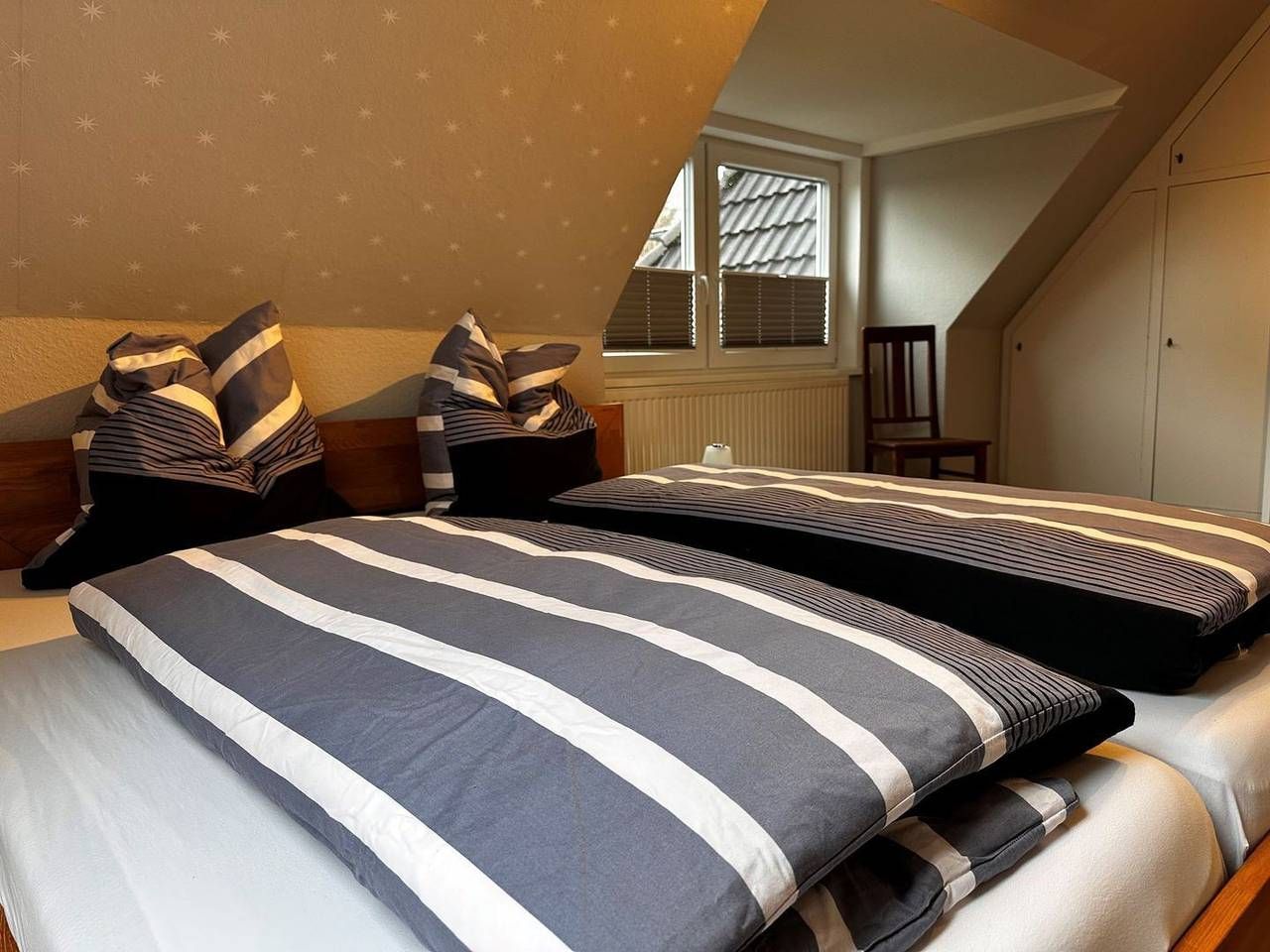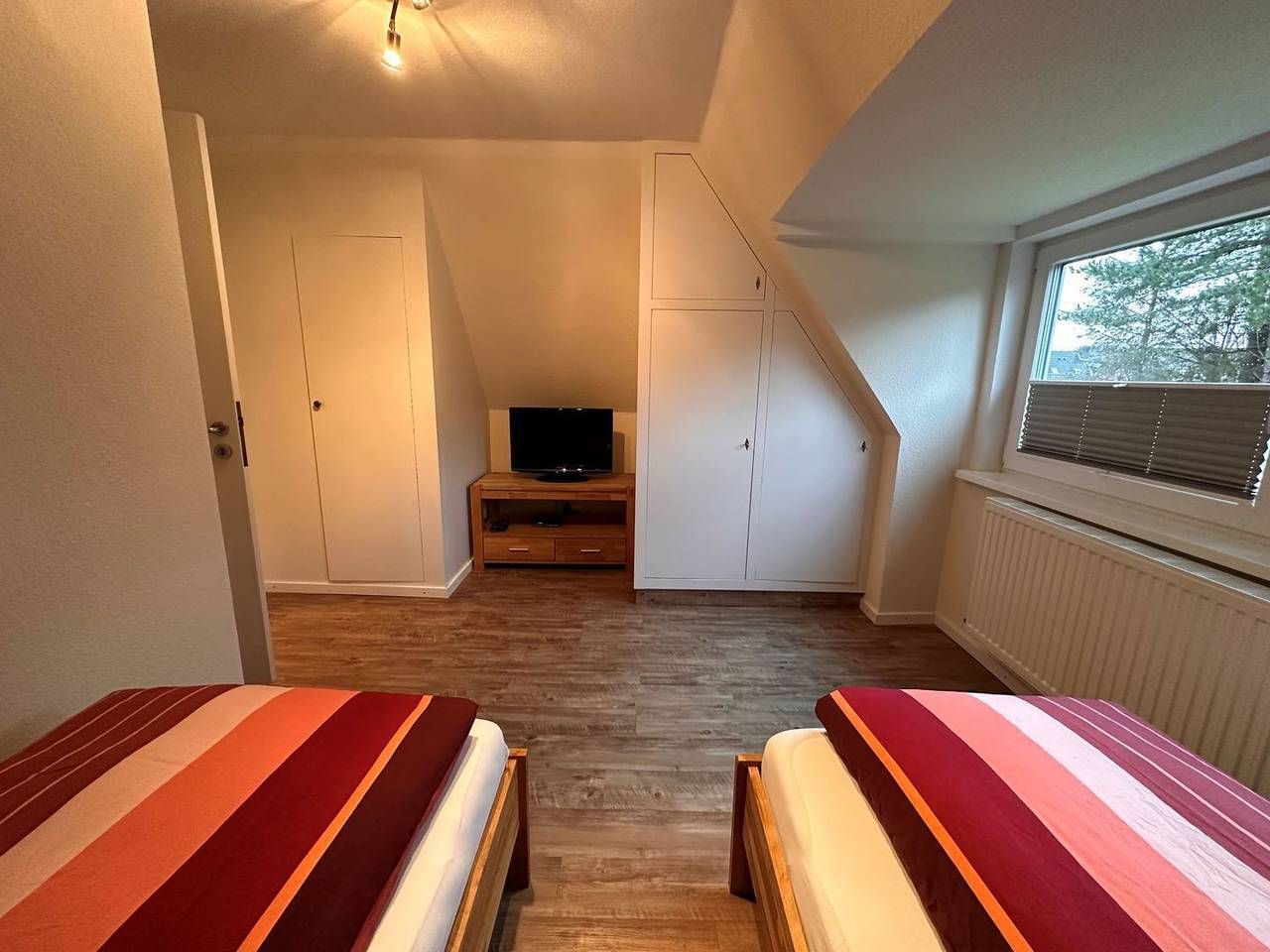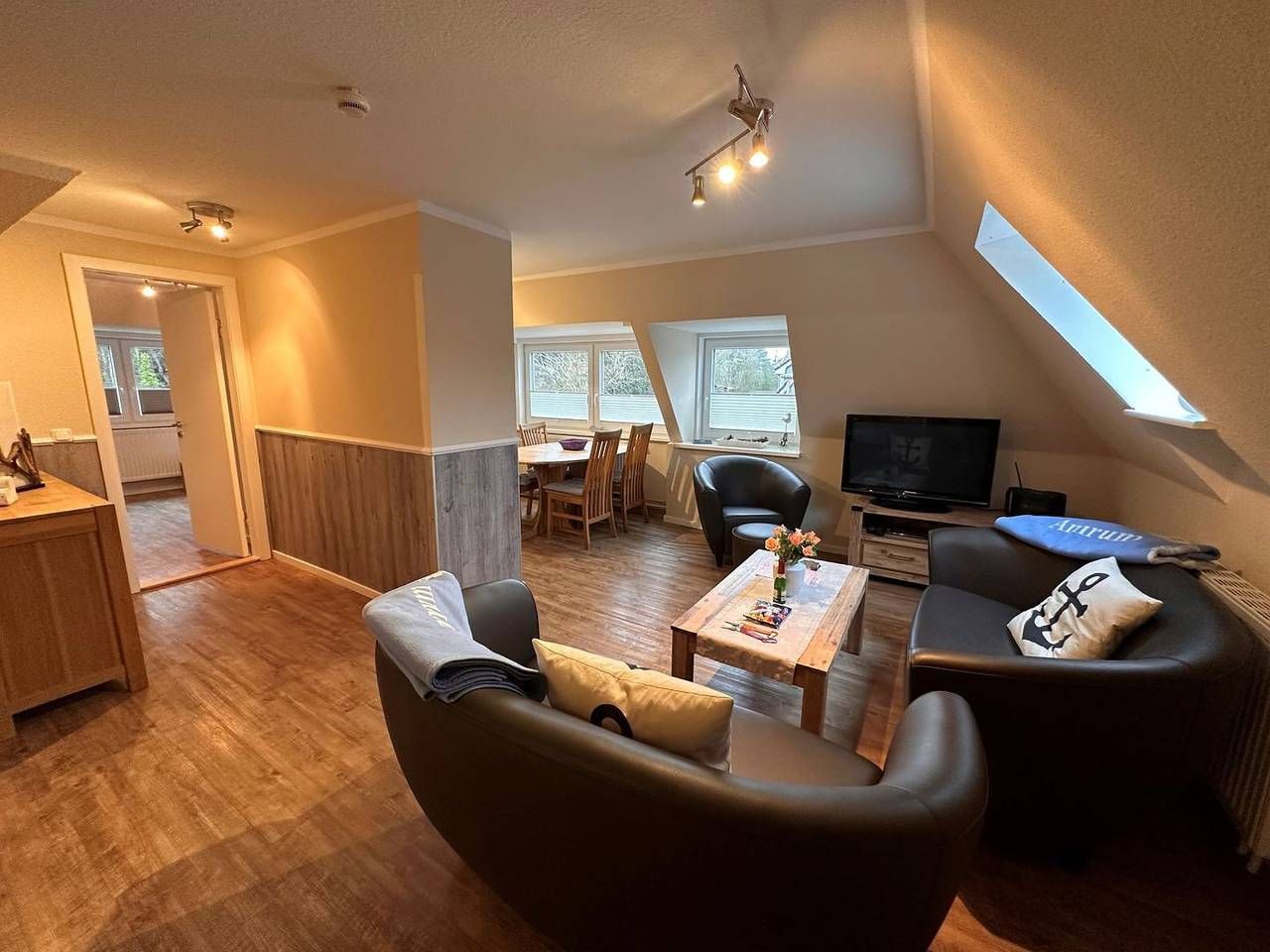 Unsere Ferienwohnung ist hell, modern und komfortabel für bis zu 4 Personen mit Liebe zum Detail eingerichtet. Sie verfügt über ein Wohnzimmer mit Essbereich, in den die volleingerichtete offene Küche integriert ist. Einem Schlafzimmer mit Doppelbett, einem Schlafzimmer mit zwei Einzelbetten, einem Badezimmer mit Dusche, WC und Waschbecken. Des weiteren finden Sie eine Spülmaschine, Wasserkocher, Toaster, Kaffeemaschine etc., Fön, 2 LCD Fernseher, DVD - Player, Musikanlage, WLAN und ein Telefon zur freien Benutzung. Bettwäsche und Handtücher werden gestellt, Inklusive Endreinigung. Ihre eigene Terrasse mit Gartenmöbeln und Strandkorb laden zum Verweilen ein. Ein Parkplatz befindet sich direkt am Haus.