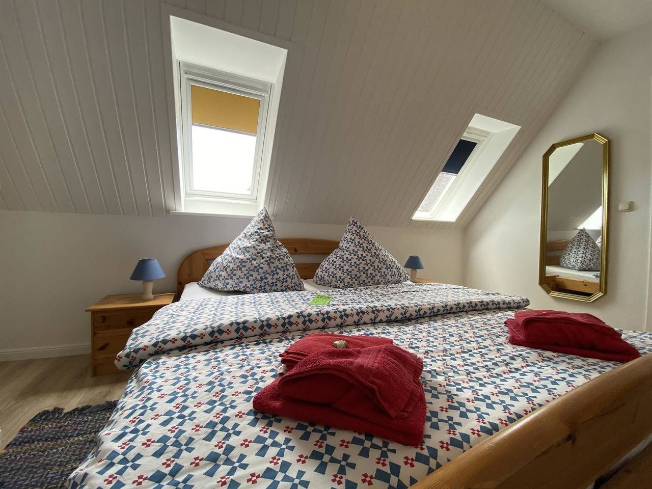 Ferienwohnung mit einer Größe von 38 qm für bis zu 2 Persononen im Obergeschoss eines Mehrfamlienhauses. Wohnraum mit Sitzecke u.a. mit LCD-Flachbildschirm-TV (Sat TV mit HD-Karte). Separates Schlafzimmer mit Doppelbett. Der Zugang zum Badezimmer erfolgt durch das Schlafzimmer. Zum Schlafzimmer führt eine 3-stufige Treppe mit Geländer. Vollständig ausgestattete Küchenzeile mit Cerankochfeld, Backofen , Kühlschrank, Wasserkocher, Toaster etc. und Essecke. Tageslicht Badezimmer mit Dusche/WC. Sitzecke im Garten. Privates Ferienhaus mit drei preiswerten, gemütlichen Ferienwohnungen am Ende einer verkehrsberuhigten Ferienwohnung im Ortsteil St. Peter-Dorf. In der Nähe ausgedehntes Dünengelände, Reithalle und idyllischer Dorfkern. Pkw-Stellplätze sind vorhanden. Urlaub mit Hund auf Anfrage gerne möglich. Für die Obergeschoss-Ferienwohnungen wurde auf dem Grundstück eine Sitzecke mit Gartenmöbeln angelegt; die Erdgeschoss-Ferienwohnung hat eine möblierte Terrasse. Die gemütlich und individuell ausgestatteten Ferienwohnungen werden jedem Anspruch gerecht. Schnelles WLAN-Netz kostenlos für unsere Gäste. Unsere Ferienwohnungen Ufer liegt in einer ruhigen Seitenstrasse im Ortsteil St. Peter-Ording-Dorf; die Strandüberfahrt, den Deich und das Vorland mit den Salzwiesen erreichen Sie in wenigen Gehminuten. Von dort aus wandern Sie zum Strand; die Dauer ist abhängig von Ebbe und Flut (siehe Gezeitenkalender der Kurverwaltung). Auch die anderen Strände von den Ortsteilen St. Peter-Ording-Bad, St. Peter-Ording-Böhl und St. Peter-Ording-Ording sind gut zu Fuß, mit dem Fahrrad, mit dem Auto oder dem Bus zu erreichen. Auch dort erleben Sie Freiheitsgefühl auf dem großflächigen Sandstrand mit der Heilkraft der Natur. Kurarzt, Therapiemöglichkeiten, Fahrradverleihe und die Angebote des täglichen Bedarfs erreichen Sie in wenigen Gehminuten. Ein vielseitiges Restaurationsangebot befindet sich ebenfalls in unmittelbarer Nähe und im nahegelegenen historischen Ortskerns. Für den Kirchgang ist die katholische und evangelische Kirche zu Fuß bequem zu erreichen. Die Benutzung des Ortsbusses ist für die Gäste von St. Peter Ording kostenfrei. Reiterfreunde: Reiterfreunde erreichen die Reitanlage mit Quartiermöglichkeiten für mitgebrachte Pferde in knapp 5-10 Gehminuten. Nur von dort ist das Reiten am Meer erlaubt. WLAN kostenlos Hunde sind herzlich willkommen; Gebührenpflichtig Bettwäsche, Trocken-, Bade- und Geschirrtücher werden kostenlos bereitgestellt Die Kurabgabe wird bei Einzug fällig Anreise ab 15.00 Uhr. Abreise bis 10.00 Uhr.