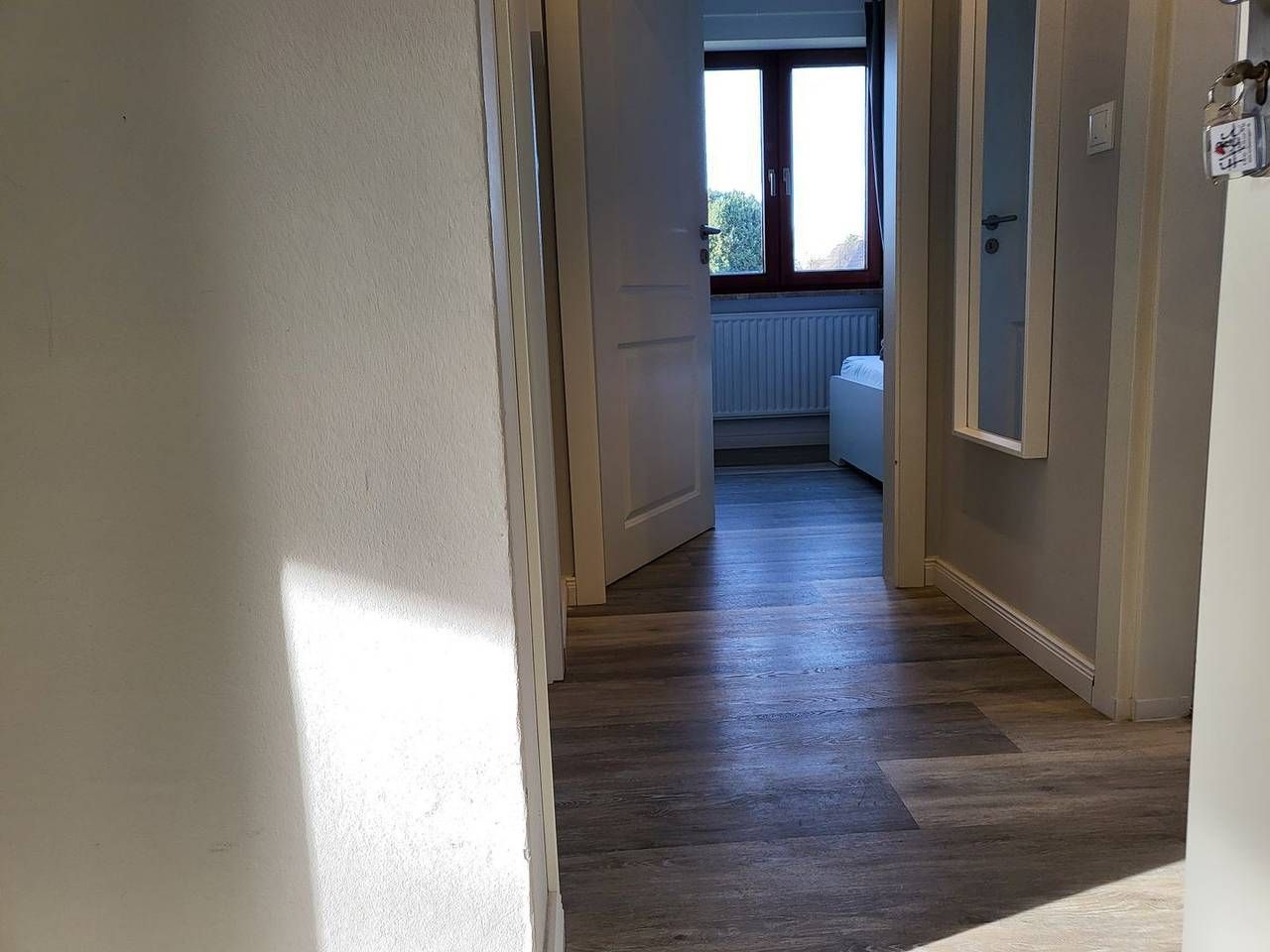 Ferienwohnung 4 in St. Peter Ording Die moderne, 45m² große 2-Zimmer Ferienwohnung liegt im Obergeschoss und verwöhnt ihre Gäste mit großem, möbliertem Balkon. Bis zu 4 Personen verbringen hier einen wunderbaren Urlaub in St. Peter Ording. Das Wohnzimmer ist ausgestattet mit einem hochwertigen Schlafsofa und gemütlichen Sitzgelegenheiten. Für gemütliche Abende und Unterhaltung sorgen ein großer Flachbild-TV und kostenfreies W-LAN. Helle Farben, moderne Einrichtung und Panoramafenster sorgen für eine wohnliche Atmosphäre im Wohnraum. Die separate Küche ist sehr gut ausgestattet und bietet neben einem Kochfeld und Backofen noch Kühlschrank mit Gefrierfach sowie Geschirrspüler und eine Kaffeemaschine. Ein kleiner Esstisch steht zur Verfügung. Das Schlafzimmer ist ausgestattet mit komfortablem 180x200cm Doppelbett und einem großen Kleiderschrank. Ein Babyreisebett sowie ein Kinderhochstuhl stehen kostenfrei zur Verfügung. Zur Ferienwohnung gehört ein modern gestaltetes Badezimmer Veluxfenster, Dusche, Waschbecken und WC. Willkommen im Urlaub, willkommen in St. Peter Ording! Wichtige Informationen: Glattboden. Nichtraucher, keine Haustiere, familienfreundlich, kinderfreundlich, Parkplätze und Fahrradunterstand vorhanden, W-LAN vorhanden.