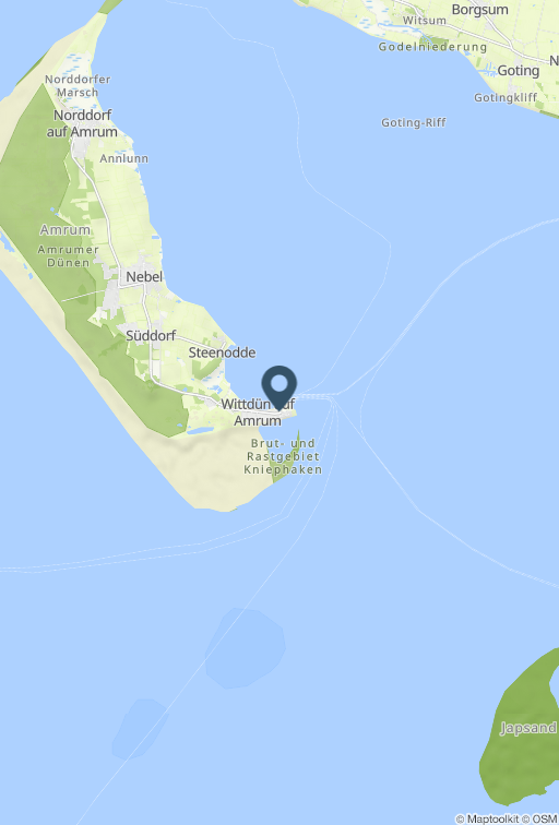 Die Wohnung befindet sich in Wittdün auf Amrum und bietet einen direkten Blick auf die Nordsee in Richtung Seezeichenhafen. Die Lage ist besonders reizvoll, da sie dir einen unmittelbaren Blick auf das Meer ermöglicht.