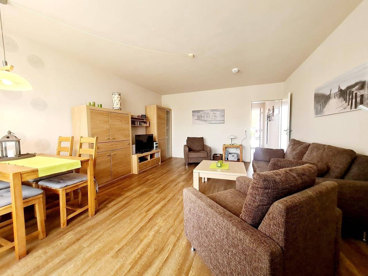 1 Wohnschlafraum mit moderner ausziehbarer Schlafcouch, Anbauwand, 2 Sesseln, Couchtisch, Farb-TV, DVD-Player und Stereoanlage sowie Eßecke. 1 Schlafraum mit 2 Einzelbetten und Kleiderschrank. Separate Küche mit modernem...
