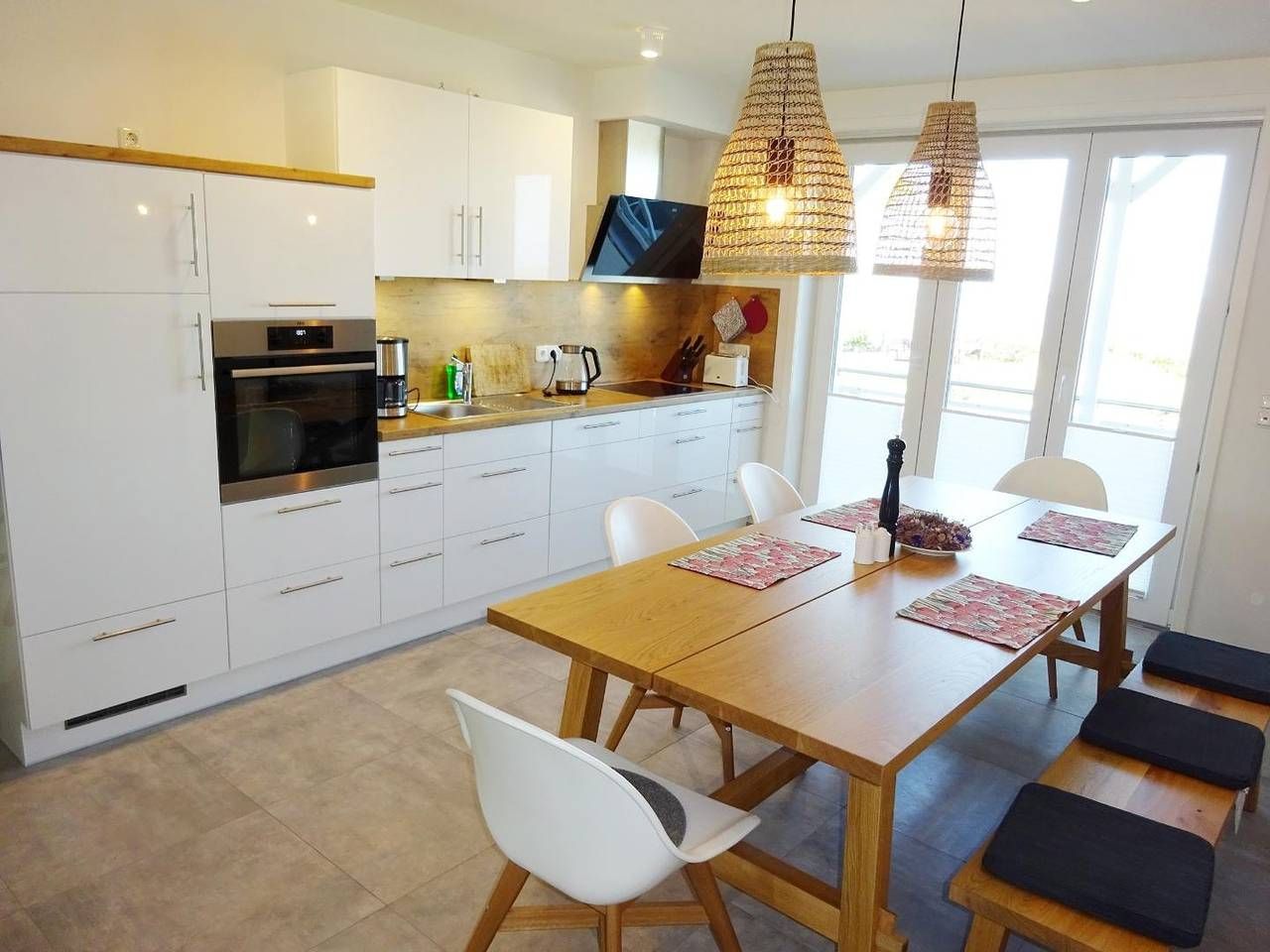 Die Ferienwohnung *Weiße Düne 4* im Erdgeschoss des Hauses *Weiße Düne* in Wittdün auf Amrum ist eine 3-Zimmer-Ferienwohnung (ca. 93 qm Grundfläche) mit Schlafmöglichkeiten für 2 bis 4 Personen. Die Ferienwohnung ist behindertenfreundlich, da das Haus über eine Rampe erreichbar und ein Aufzug zur Wohnung vorhanden ist. Die Wohnung verfügt über 1 Wohnraum mit WLAN, Sat-TV und offener Küche, 2 Schlafzimmer, 1 Badezimmer mit Dusche und WC, 1 Gäste-WC; 1 Süd-Balkon vom Wohnzimmer, 1 Nord-Balkon mit Meerblick vom Esszimmer, Balkonmöbel (April – Oktober). Im rechten Keller (1. Tür rechts) befinden sich eine Münz-Waschmaschine und ein Münz-Trockner zur Gemeinschaftsnutzung. Eigener PKW-Stellplatz in der Nähe des Hauses, Unterstellmöglichkeit für Fahrräder. Nur wenige Meter vom Meer entfernt.