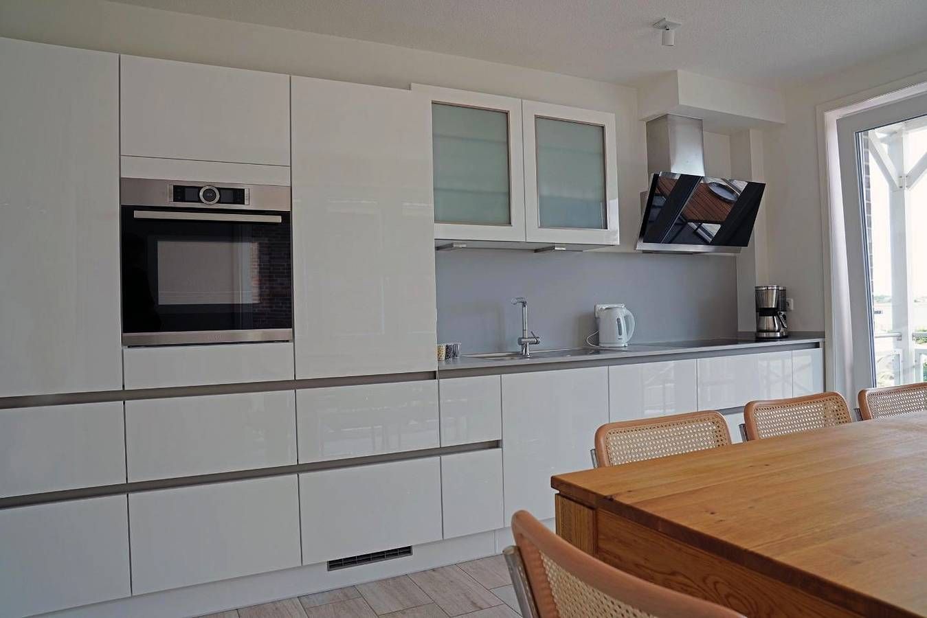 Die Ferienwohnung *Weiße Düne 9 | Gen Norden* im Erdgeschoss des Hauses *Weiße Düne* in Wittdün auf Amrum ist eine 3-Zimmer-Ferienwohnung (ca. 75 qm Grundfläche) mit Schlafmöglichkeiten für bis zu 4 Personen + Kleinkind, das im Babybett schläft. Die Wohnung verfügt über 1 Wohnraum mit WLAN, Sat-TV, Video-on-Demand kostenlos (Netflix, Amazon Prime), Bluetooth-Lautsprecher für Musik über eigenes Smartphone, offene Küche, 2 Schlafzimmer, 1 Badezimmer mit Badewanne und WC, 1 Gäste-WC, Fußbodenheizung in allen Räumen; 1 Süd-Terrasse mit Strandkorb (April-Oktober) vom Wohnzimmer, 1 Nord-Balkon mit Meerblick vom Esszimmer, Balkonmöbel (April – Oktober). Im Keller befinden sich eine Münz-Waschmaschine und ein Münz-Trockner zur Eigennutzung. Eigener PKW-Stellplatz gegenüber des Hauses (Halten am Haus bei An- und Abreise möglich), Abstellmöglichkeit für Fahrräder vor dem Haus. Nur wenige Meter vom Meer entfernt. Kostenfreie Nutzung des Fitnessstudios sowie der Sauna des „Eilun Fit“ in Norddorf.