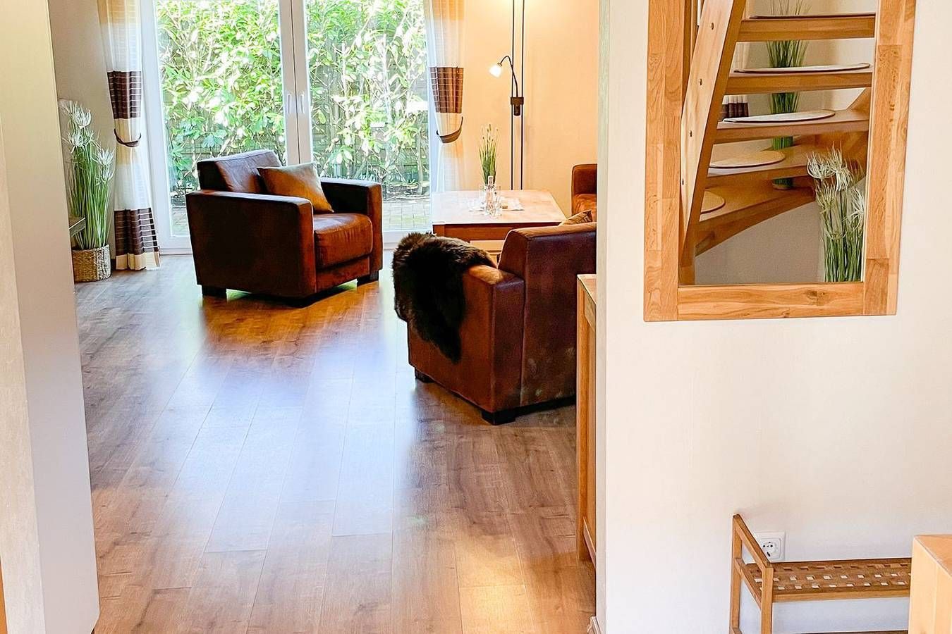 Das Ferienhaus Willi empfängt Sie in zentraler und dennoch ruhiger Lage im beliebten Nordseeheilbad Büsum. In nur etwa 500 Metern erreichen Sie die Nordsee und den weitläufigen Büsumer Strand. Einkaufsmöglichkeiten, Restaurants und das Stadtzentrum sind ebenfalls fußläufig in rund 700 Metern erreichbar, sodass Sie Ihren Aufenthalt flexibel und bequem gestalten können. Mit einer Wohnfläche von 79 m² bietet das Ferienhaus ein großzügiges Raumangebot für bis zu vier Personen. Kinder sind willkommen, sodass Sie hier einen erholsamen Aufenthalt mit der gesamten Familie verbringen können. Auch ein Hund ist herzlich willkommen. Im ersten Stock können bis zu vier Personen übernachten: aufgeteilt auf zwei Schlafzimmer, eins mit Doppelbett, ein weiteres mit zwei Einzelbetten. Diese sorgen für ausreichend Privatsphäre und erholsame Nächte. Der offene Wohnbereich verbindet das Wohnzimmer geschmackvoll mit der voll ausgestatteten Küche, die mit modernen Geräten sowie umfangreichen Küchenutensilien ausgestattet ist. Ein Esstisch bildet den Mittelpunkt des Raumes und lädt zu gemeinsamen Mahlzeiten ein. Im gemütlichen Wohnzimmer finden Sie eine komfortable Sitzecke mit Sofa und Sesseln sowie einen Fernseher und ein Radio für unterhaltsame Abende. Ein WLAN-Zugang steht selbstverständlich zur Verfügung und ermöglicht Ihnen flexibles Arbeiten oder Surfen im Internet. Ein besonderes Highlight ist die private Infrarotkabine zur Eigennutzung innerhalb der Unterkunft, die für erholsame Momente und Entspannung nach einem Tag an der Nordsee sorgen. Das Badezimmer ist modern gestaltet und verfügt über eine bodengleiche Dusche, ein Fenster, sowie einen Haartrockner. Bettwäsche und Handtücher, sowie Geschirrhandtücher werden als Erstausstattung bereitgestellt. Eine Waschmaschine und ein Wäscheständer stehen Ihnen ebenfalls zur Verfügung. Der Außenbereich lädt mit einer eigenen, nicht einsehbaren Terrasse zum Verweilen im Freien ein. Ihren PKW stellen Sie im Carport ab. Desweiteren steht Ihnen eine abschließbare Unterstellmöglichkeit für Fahrräder zur Verfügung. Kinderreisebetten und Hochstühle sind nach Verfügbarkeit und auf Anfrage erhältlich. Ob Sie als Familie, Paar oder mit Ihrem Hund einen entspannten Urlaub an der Nordsee planen: Im Ferienhaus Willi finden Sie komfortable Bedingungen, eine hochwertige Ausstattung und eine attraktive Lage in Büsum. Sichern Sie sich Ihren Aufenthalt und genießen Sie erholsame Tage in direkter Meernähe.