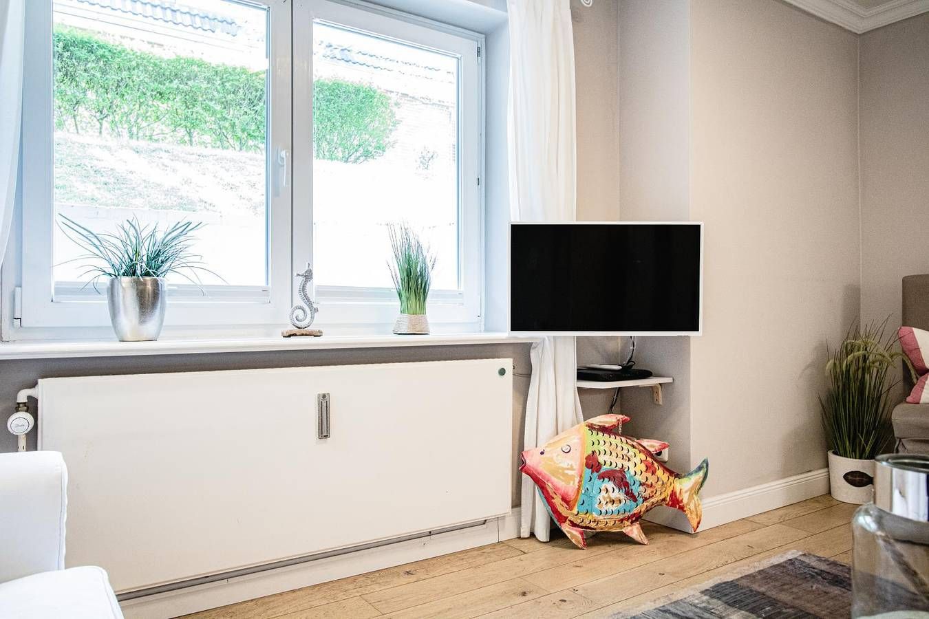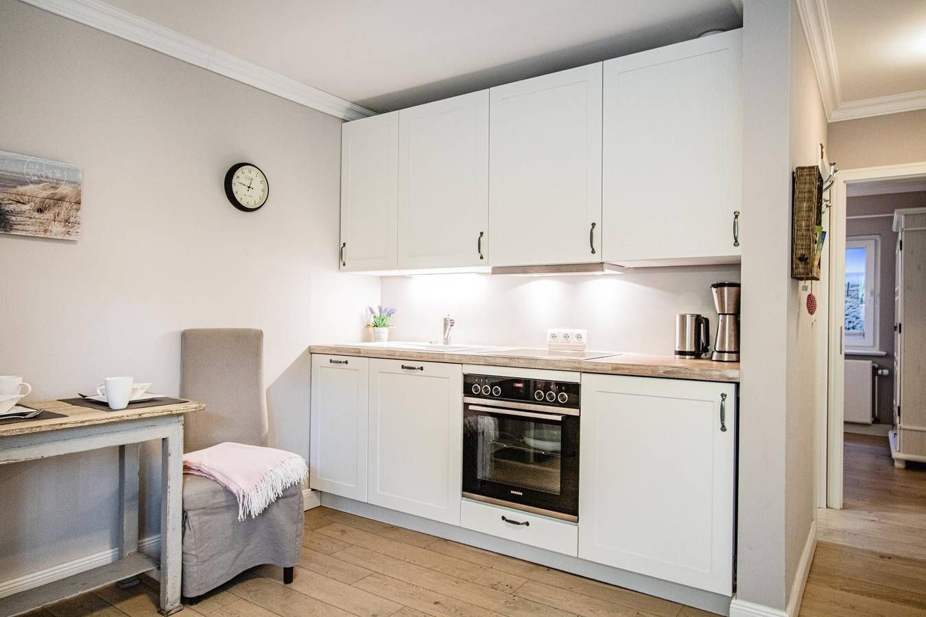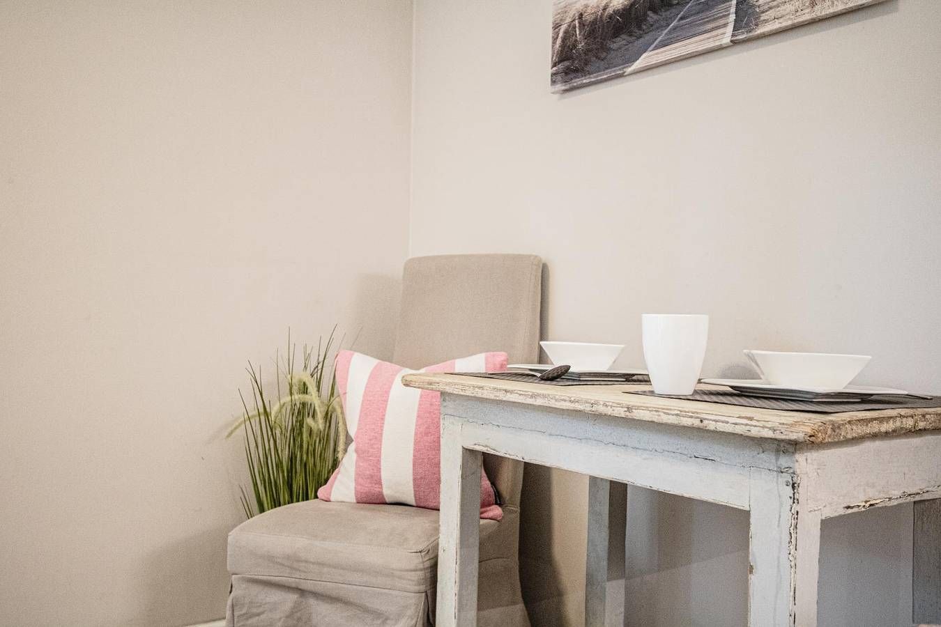 Austernperle 2024 renoviert und nausgestattet mit Möbel "Maison Rivera" Im Herzen von Wenningstedt liegt dieses gemütliche Souterrain-Appartement. In der Nähe des Gemeindeparks und nur wenige Gehminuten vom Strand entfernt entspannen Sie sich vom Alltag. Einkaufsmöglichkeiten und Bäcker erreichen Sie innerhalb von wenigen Minuten zu Fuß. Erleben Sie einen unvergesslichen Sonnenuntergang auf der Promenade oder bei Gosch mit einem Glas Wein. Der Wenningstedter Dorfteich ist auch nur wenige Minuten entfernt. Hier machen Sie einen entspannten Urlaub auch ohne Auto. Helle moderne Räume und warme Farben erwarten Sie zum Entspannen und relaxen. Wohnen Das Wohnzimmer ist mit Sitzgruppe, Fernseher und Radio ausgestattet. Eine Eßecke für 2 Personen ist integriert.´ Das Schlafzimmer ist mit großem Fenster, Schrank und Fernseher ausgestattet. Das schicke kleine Duschbad macht schon morgens gute Laune. Küche Die Küche ist mit Spülmaschine, Mikrowelle, Backofen, Kühlschrank mit Eisfach,Toaster, Wasserkocher und ausreichend Geschirr und Küchenutensilien ausgestattet. Schlafen Schlafzimmer mit großem Doppelbett und Kleiderschrank. Badezimmer kleines, modernes Duschbad, WC, Waschtisch. Ausreichend Handtücher und Vorleger. Außenbereich Radabstellplatz. Sonstiges Jeweils ein Wäschepaket pro Person mit 2 Badetüchern, 2 Handtüchern Badvorleger sowie Geschirrtuch. Wischlappen und Spülschwamm sowie Maschinentabs sind im Gesamtpreis enthalten. Auch Ihr gut erzogener Hund ist bei uns willkommen. Die Wohnung ist eine Nichtraucherwohung! Bitte beachten Sie die Regelung zur gesonderten Kurtaxe der jeweiligen Gemeinde auf Sylt. Diese wird gesondert berechnet und ist spätestens bei Anreise fällig.