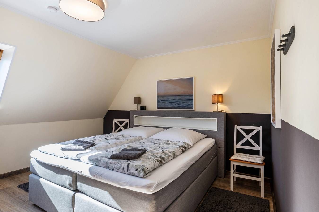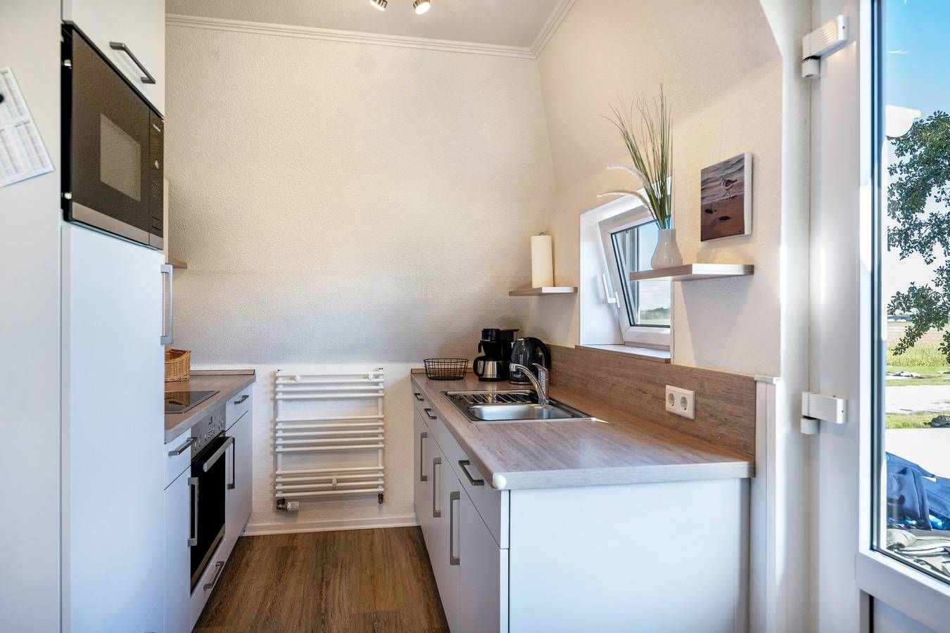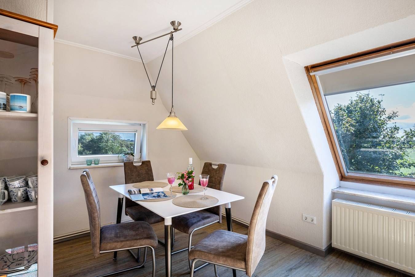 Die Ferienwohnung Flut im Dachgeschoß befindet sich in Pellworm und ist die ideale Unterkunft für einen entspannten Aufenthalt. Die 60 m² große Unterkunft besteht aus einem Wohnzimmer, einer gut ausgestatteten Küche, 2 Schlafzimmern und 1 Badezimmer und bietet somit Platz für 4 Personen. Zur Ausstattung gehören außerdem ein Smart TV mit Streaming-Diensten sowie Kinderbücher und Spielsachen. Außerdem stehen Ihnen eine Tischtennisplatte und eine gemeinsame Sauna zur Verfügung. Ein Babybett und ein Hochstuhl sind ebenfalls vorhanden. Diese Unterkunft verfügt über einen privaten Außenbereich mit einer offenen Terrasse, einem Balkon und einem Grill. Achtung : Zur Ferienwohnung Flut führt eine Gitterstufentreppe nach oben, hier muss der Hund getragen werden. Die Familie Harrsen heißt Sie herzlich willkommen auf der Nordseeinsel Pellworm, mitten im Nationalpark Nordfriesisches Wattenmeer! Besuchen Sie unser schönes Fleckchen Erde für Ihre ganz besondere Auszeit. Erleben Sie Wohlfühlmomente in unserer Ferienwohnung "Ebbe oder Flut" mit Blick in den Garten, auf Wiesen und Felder. Entspannen Sie sich in unserem schönen Bauerngarten mit Gartenhaus und Saunahaus inkl. Außendusche. Genießen Sie Ihren Urlaub inmitten der Natur, denn in unserem großen Garten ist genug Platz für alle, ob im Strandkorb, im Liegestuhl oder auf der gepflegten Liegewiese, hier können Sie entspannen und neue Kraft tanken. Unsere Ebbe und Flut-Ferienwohnungen sind mit allem ausgestattet, was Sie für einen schönen Urlaub brauchen. Sollten Sie etwas brauchen, helfen wir Ihnen gerne weiter. Die Wohnräume sind gemütlich eingerichtet, Flachbild-TV, DVD-Player, JBL-Lautsprecher, Gesellschaftsspiele, Bücher. Die Schlafzimmer können verdunkelt werden und Fliegenfenster sind meist vorhanden, alle Betten sind Boxspringbetten, die Küchen sind ebenfalls wunderbar ausgestattet Die Küchen sind ebenfalls hervorragend ausgestattet, die Senseo-Kaffeemaschine ist für Pulver und Pads geeignet. Wir bieten einen kostenlosen Brötchenservice (von Ostern bis 31. Oktober auch Sonntags) Die Benutzung der Waschmaschine und des Trockners ist im Preis inbegriffen. Auf Wunsch stellen wir gerne Hochstuhl, Wickeltisch, Reisebett, Babywanne für die kleinsten Urlauber zur Verfügung. Kleinste Urlauber. Fahrzeuge, Tischtennis, verschiedene Schaukeln, Rutsche, etc. stehen für Sie bereit.Euer Vierbeiner kommt auch nicht zu kurz. Auf Anfrage stellen wir Fress- und Wassernapf, kleinen Teppich oder Hundekorb bereit. Der Garten ist wunderbar zum Austoben und recht gut eingezäunt. Die Insel Pellworm hat vier Hundestrände, wo die Fellnase so richtig toben kann.