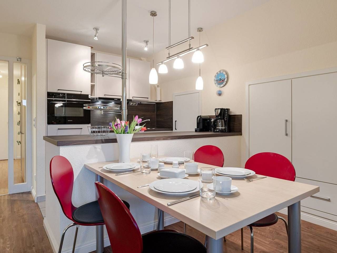 Klein, fein und überaus freundlich eingerichtet: So präsentiert sich unsere Ferienwohnung Ringelblume. Das Apartment mit einer Wohnfläche von 70 qm erstreckt sich über 2 Etagen und kombiniert Wohnkomfort mit hellen Räumlichkeiten in einer ruhigen und familienfreundlichen Umgebung. Im unteren Bereich liegt das Wohnzimmer mit einer angeschlossenen offenen Küche zahlreiche Sitzgelegenheiten laden zu entspannten Stunden zu jeder Tageszeit ein. Es gibt weiterhin ein Schlafzimmer mit Doppelbett und ein Duschbad. Im oberen Stockwerk befinden sich ein weiterer Schlafraum sowie Badezimmer mit Dusche und WC. Der Standort erlaubt Ausflüge zum nah gelegenen Wattenmeer und zum Lister Zentrum, das bequem zu Fuß erreicht werden kann.