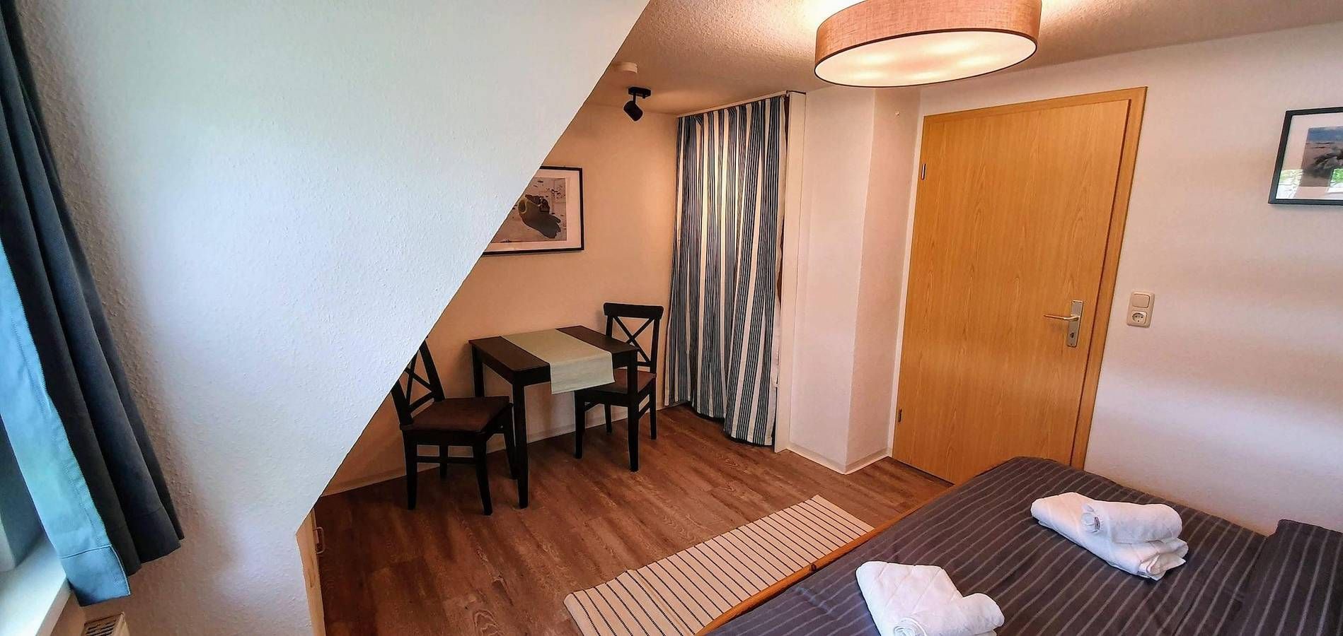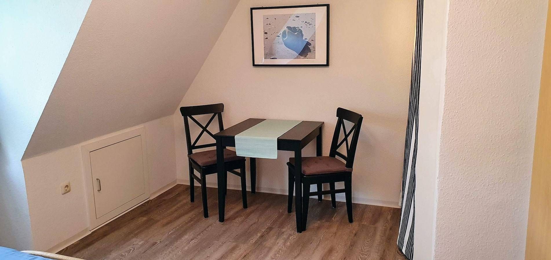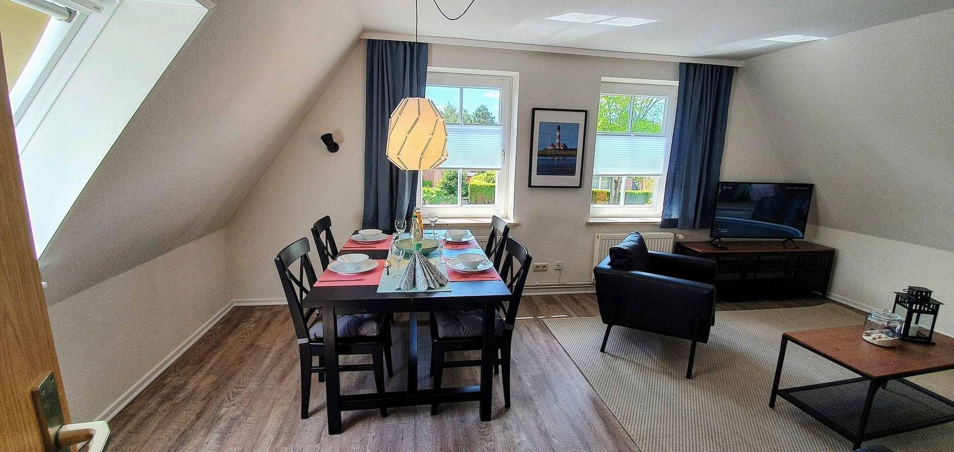 Ferienwohnung für 2 Pers. in zentraler Lage. St. Peter-Dorf Ferienwohnung - 'Dünenblick' OG rechts - Neu renoviert Die neu renovierte Ferienwohnung liegt zentral im Ortsteil von St. Peter-Dorf und ist nur wenige Gehminuten vom historischen Ortskern entfernt, ca. 50 m² Wohnfläche. Die gesamte Wohnung wurde im Winter 2019/2020 komplett renoviert. Restaurants, Einkaufsläden, Farradverleih sowie ein Bäcker für die morgendlichen frischen Brötchen befinden sich in unmittelbarer Nähe. Als Inhaber der Kur-Gästekarte von St. Peter-Ording, die Sie bei der Anreise erhalten, können Sie sich kostenlos mit dem regelmäßig verkehrenden Bus zu den Stränden und ins Kurzentrum befördern lassen. • Ein Wohnzimmer mit schönem Essplatz, gemütliche Sitzecke, Flachbildschirm-TV •Das Objekt hat einen WLAN Zugang (schnelles Internet) • Die neue Einbauküche ist separat und ist mit Backofen, Ceranfeld mit Abzug und Geschirrspüler ausgestattet • Ein Schlafzimmer mit Doppelbett • Ein Duschbad mit WC. Bettwäsche ist im Mietpreis enthalten, Handtücher können gegen eine Gebühr zur Verfügung gestellt werden. Zur Ferienwohnung gehört eine Sitzecke mit Gartenmöbel im Garten. PKW- Stellplatz auf dem Grundstück. Sie wohnen am Rande eines der kleinen Wälder von St. Peter-Ording im Ortsteil Dorf ruhig und angenehm. Das Dorfzentrum mit zahlreichen Einkaufsmöglichkeiten und Restaurants ist ca. 2 Gehminuten entfernt. Den Nordseedeich erreichen Sie zu Fuß ebenfalls in ca. 15 Minuten, zu den Stränden bestehen gute Verkehrsverbindungen mit dem Ortsbus (kostenlos mit Gästekarte), Fahrrad oder Auto Auf Grund von Kanal-und Straßenbauarbeiten in der Straße Heideweg, beginnend Zufahrt Pestalozzistraße bis zunächst Kreuzung Ostlandstraße, ab dem 26.08.2024 kann es zu Behinderungen kommen. Die Bettwäsche ist im Übernachtungspreis bereits enthalten. Gegen eine Gebühr können auch Handtücher zur Verfügung gestellt werden.