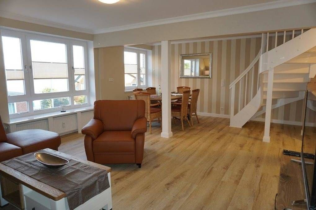 Moin und herzlich willkommen in Ihrer Wohlfühloase auf Föhr. Unsere stilvolle Wohnung im "Fiete Deppe Hus" mit traumhaftem Meerblick erwartet Sie im Herzen von Wyk, direkt am Beginn der Strandpromenade. Nur wenige Schritte...