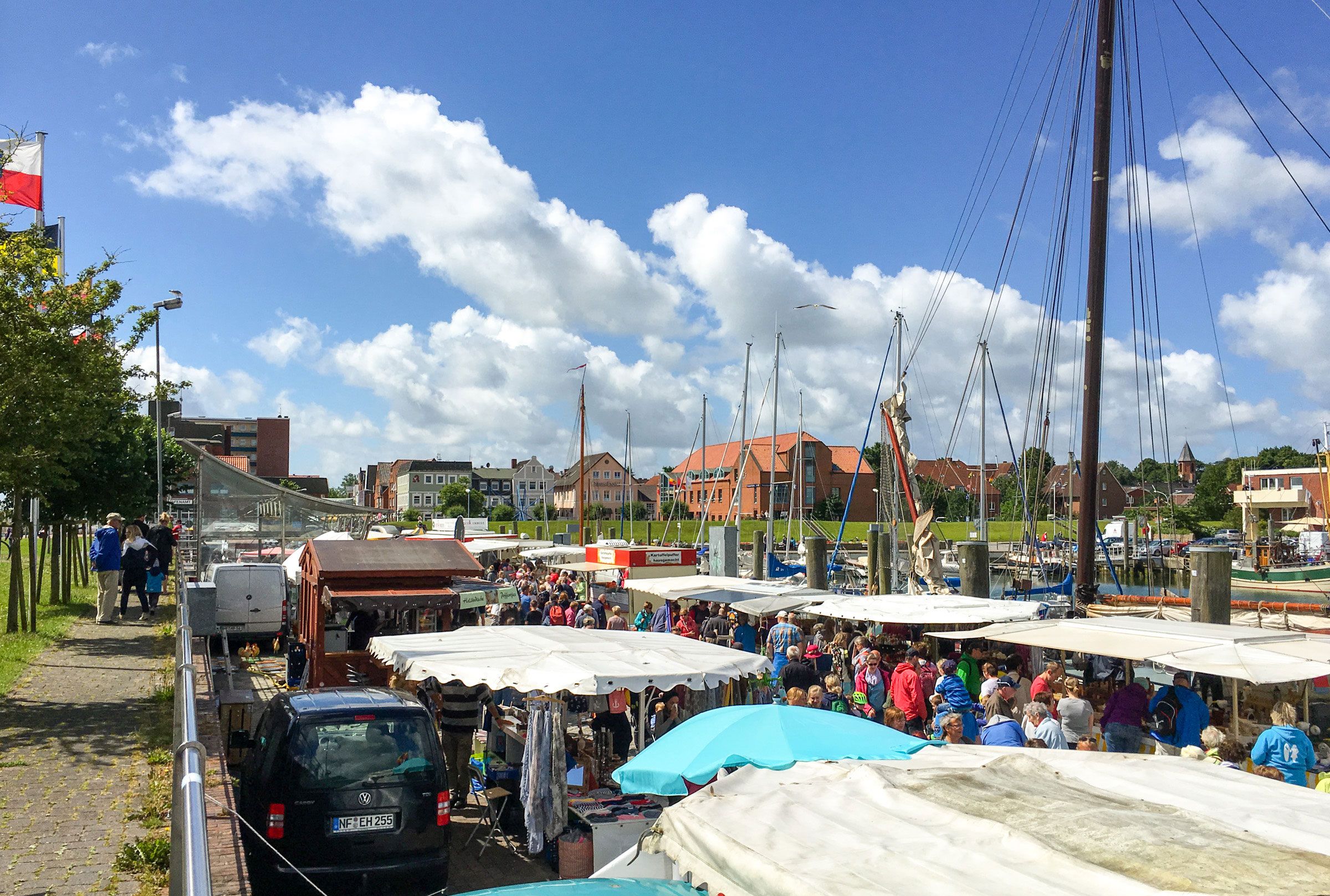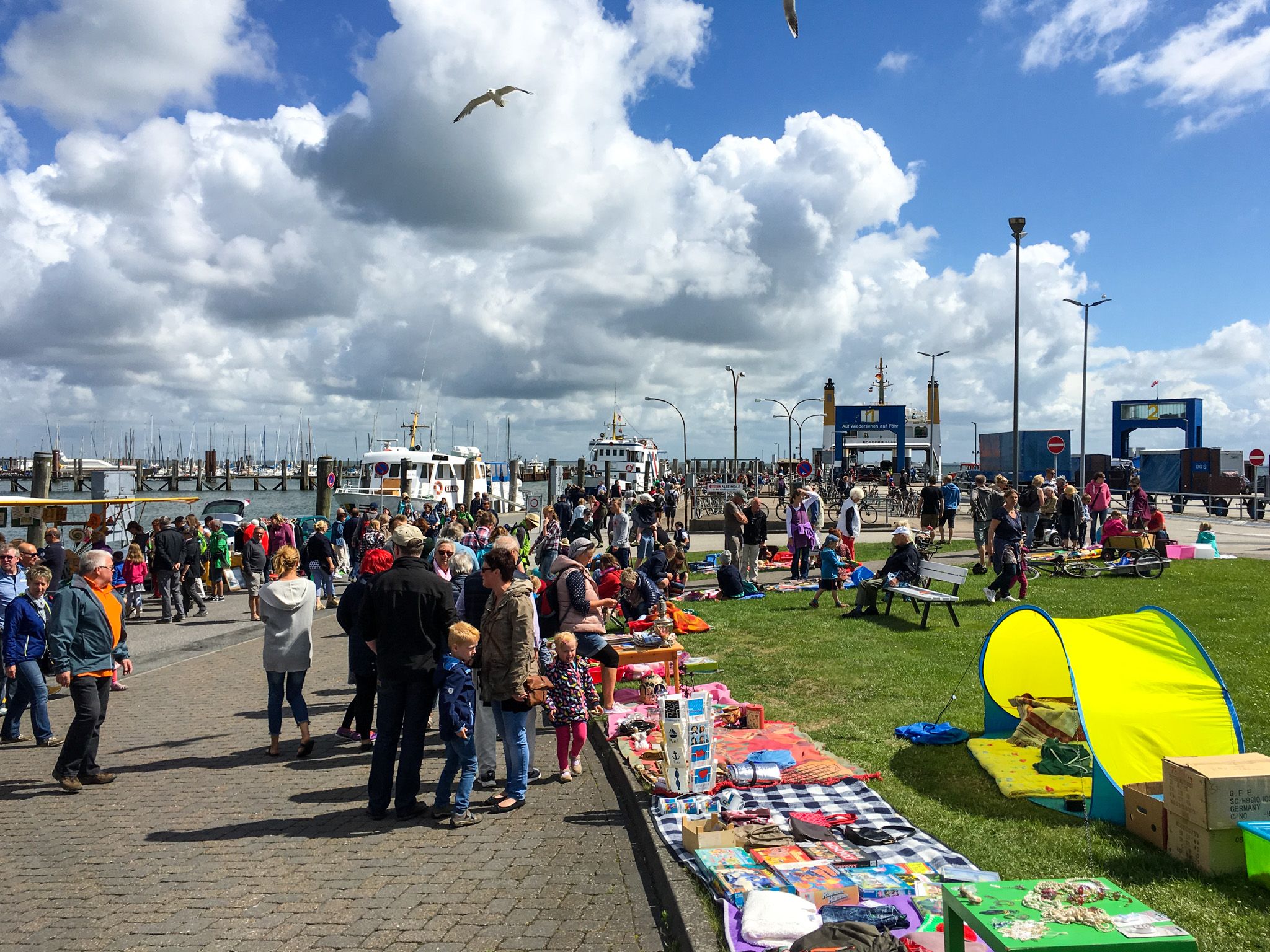 Von Fischbrötchen, Bratwurst, Obst und Gemüse über Bilder, Postkarten und Klamotten bis hin zu Souvenirartikeln: an den unterschiedlichen Verkaufsständen des Fischmarkts bekommt man nahezu alles. Lassen Sie sich überraschen von der Vielfalt und dem bunten Treiben und genießen Sie die Köstlichkeiten, die dort angeboten werden! Auf der Ostkaje des Wyker Binnenhafens finden Sie viele attraktive Stände und Verkaufswagen, die zum Bummeln und Verweilen einladen. Neben den traditionellen Marktständen ist oberhalb der Marktfläche in der Saison ein Floh- und Trödelmarkt zu finden, der insbesondere von Kindern genutzt wird, um ausgemusterte Spielsachen zu verkaufen.