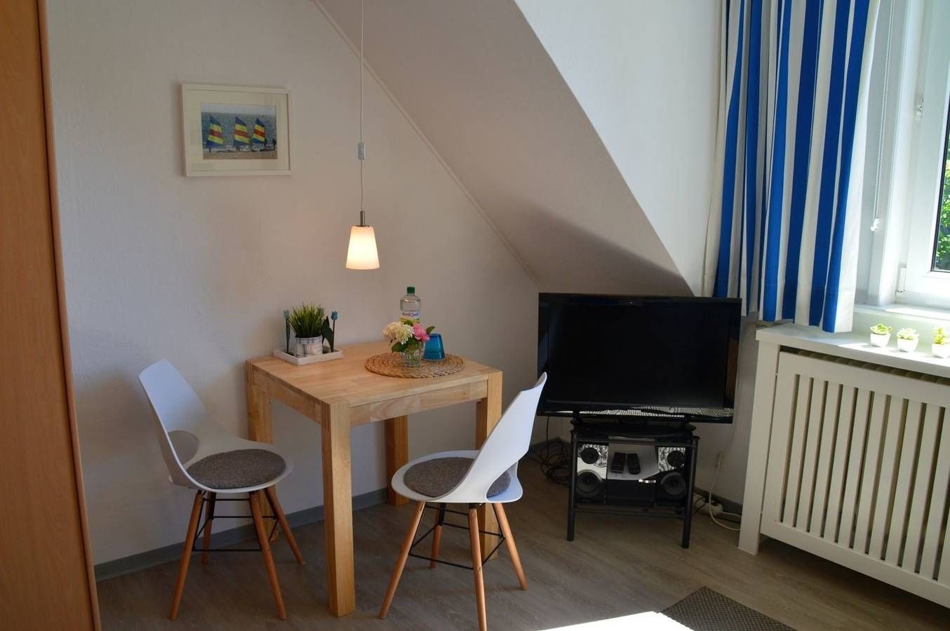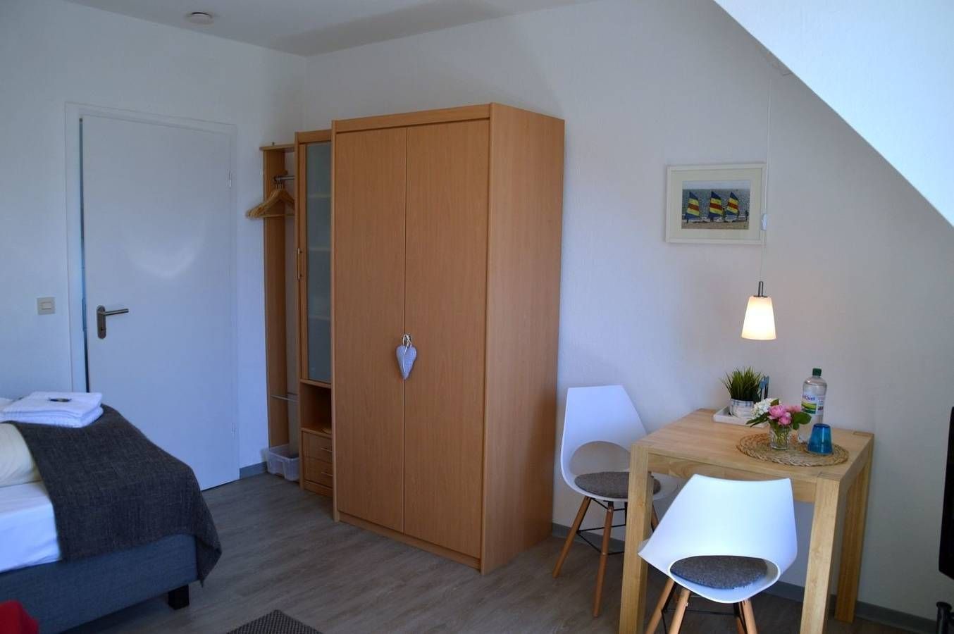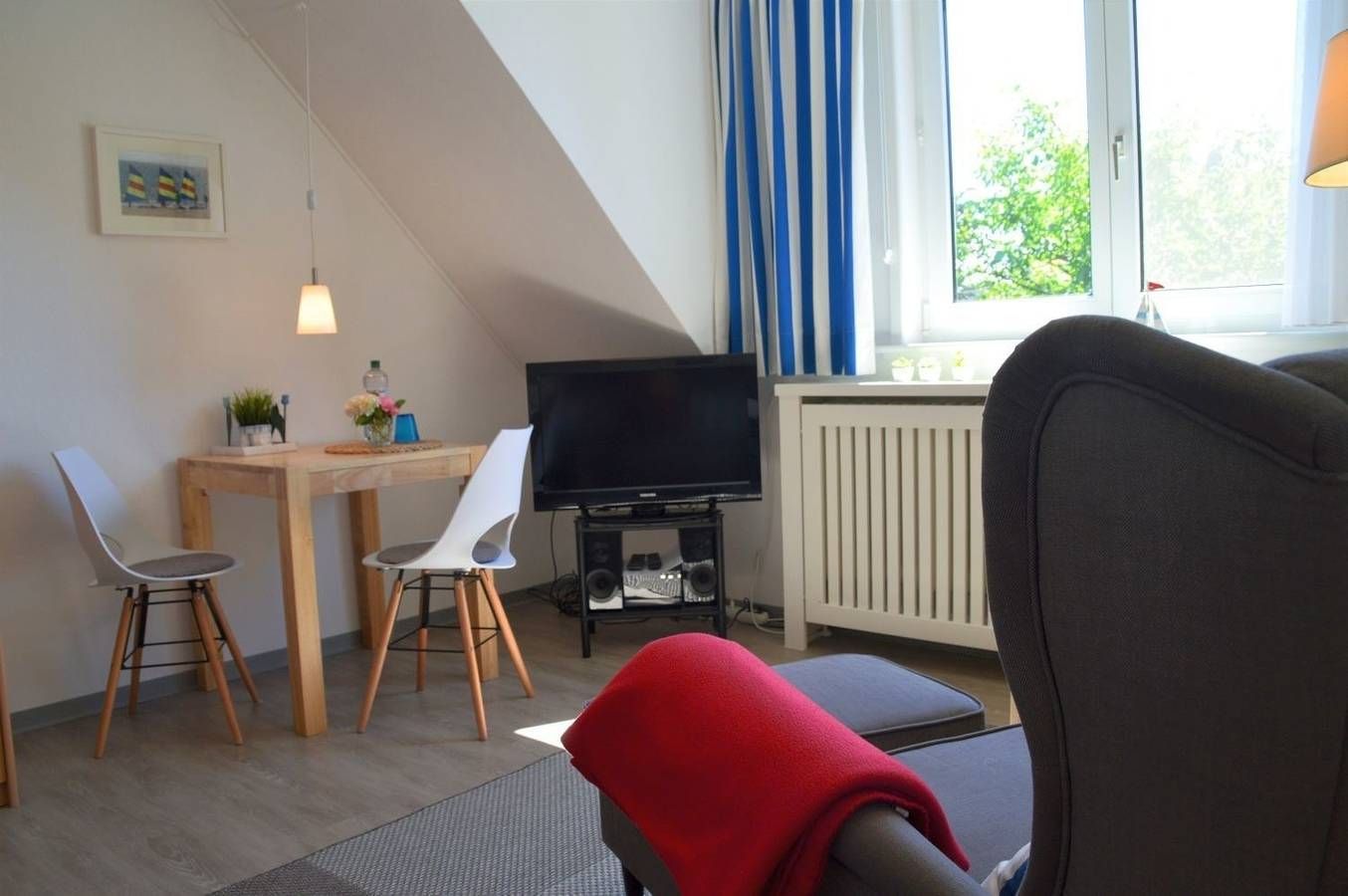 1 - Zimmer-Wohnung für eine Personen Das Haus Flurstrasse liegt ruhig und zentrumsnah in grüner Umgebung. Von der Wohnung aus erreichen Sie in wenigen Minuten die Innenstadt und Einkaufsläden. Auch der beliebte Wyker Südstrand ist nicht weit entfernt. Die Promenade führt Sie direkt in die Innenstadt bis hin zum Hafen, in den Sie mit der Fähre einlaufen und den Urlaub beginnen. Die gemütliche und geschmackvoll eingerichtete Wohnung ist für 1 Person und empfängt Sie im nordischen Stil mit Blick in den großzügigen Sommergarten, welcher der Hausgemeinschaft zur Verfügung steht. Hier finden Sie Gartenmöbel und Liegen zum Relaxen. Aber auch die Möglichkeit zum Spielen, einen Kaffee trinken oder mit einem Sundowner den Abend in Ruhe zu beenden ist hier gegeben. Vor dem Haus sind Pkw-Stellplätze vorhanden und für Fahrräder gibt es Abstellmöglichkeiten. Internet kostenfrei verfügbar. Gerne können Sie kostenpflichtig ein Wäschepaket pro Person optional dazu buchen. Bitte geben Sie uns diesbzgl. schnellstmöglich eine kurze Info.