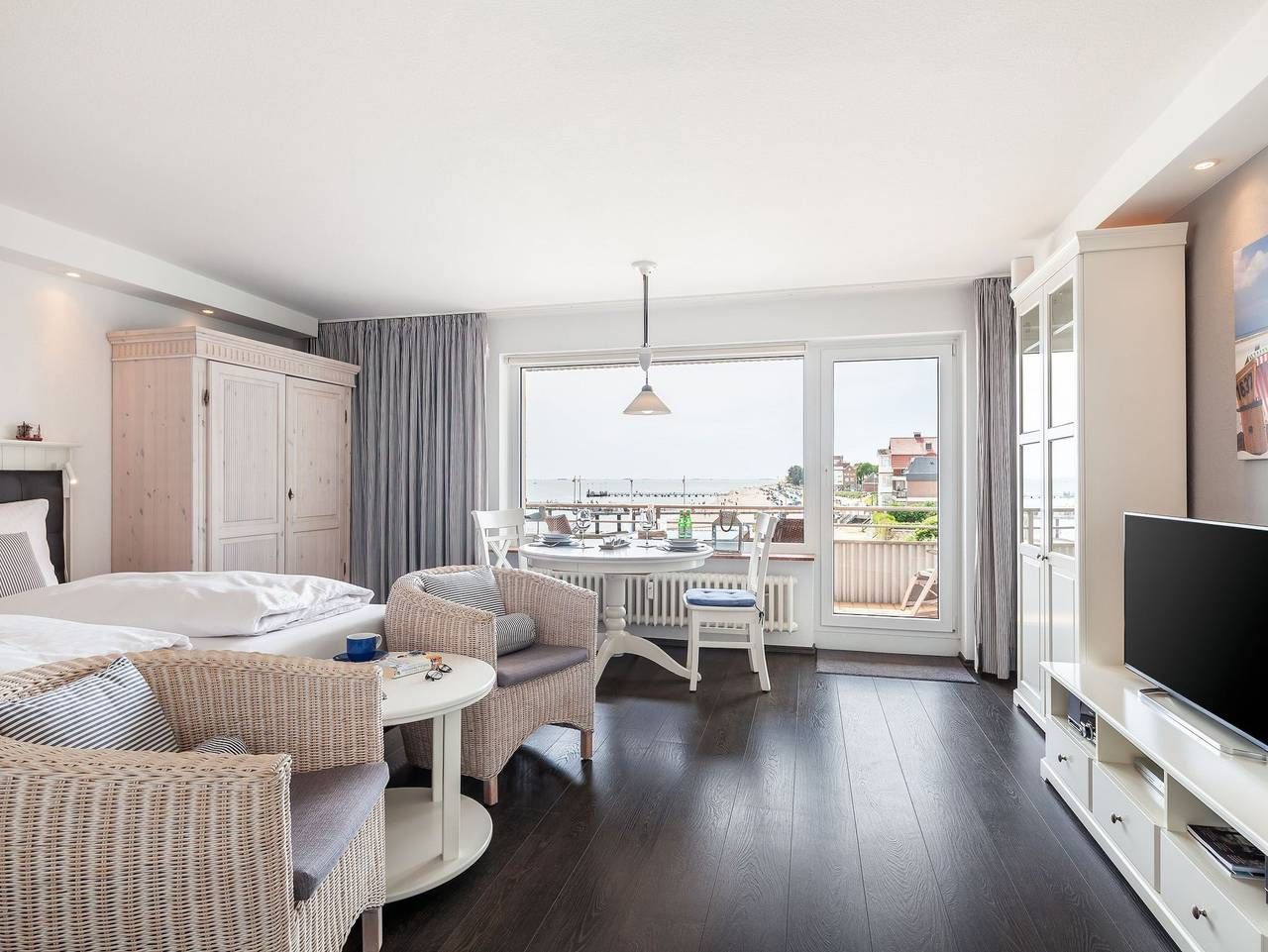Direkt am Strand mit Meerblick Kostbare Privatsphäre, Gemütlichkeit und einen unglaublichen Blick aufs Meer - das bietet Ihnen unsere Ferienwohnung am Strand (unser Strandhuis). Ein Wohn-/Schlafraum (u.a. mit hochwertigem Boxspringbett), separate Küche, Diele sowie Badezimmer mit Duschbad sind ideal für 2 Personen, die einen unbeschwerten und erholsamen Urlaub genießen wollen (2. Etage mit Aufzug). Die gut ausgestattete Küche lässt Ihnen die Wahl, sich eigene Mahlzeiten zuzubereiten. Freuen Sie sich auf den grandiosen Ausblick auf Strand und Nordsee vom Balkon oder aus dem Panoramafenster [nbsp] so lässt es sich wunderbar entspannen. Die einzigartige Lage - direkt am 15km langen Sandstrand und eingebettet in die friesische Idylle des Badeortes Wyk - bietet Urlaub pur direkt vor der Tür: Strand und Baden, Flanieren am Sandwall (Strandpromenade), Restaurants, Cafés, Einkaufsmöglichkeiten, Fähranleger und vieles mehr. Hier geht alles zu Fuß oder per Fahrrad.