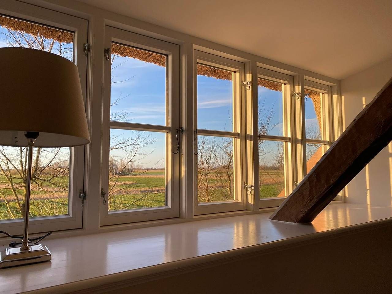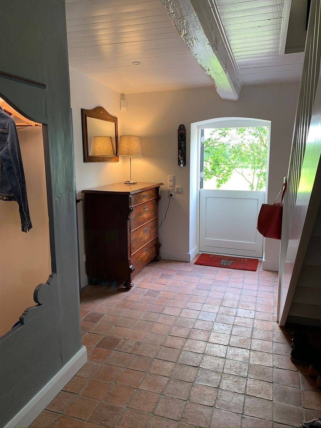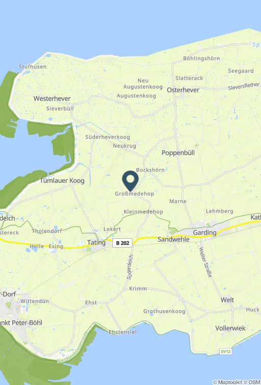 freistehendes Reetdach-Haus (ca. 160 qm) für 2-3 Familien (12 Personen), keine Haustiere. Nichtraucher. Erdgeschoss: Zwei Schlafzimmer mit hochwertigen Boxspringbetten, Wohn-Essbereich mit Kaminofen, Sofas, Esstisch, Fernseher. Küche mit Induktionsherd, Spülmaschine, Filter-Kaffeemaschine, Wasserkocher, Kapsel-Nespresso-Maschine mit Aerolatte, Kühlschrank mit Tiefkühlfächern. Ein Duschbad mit Föhn und ein separates WC. W-Lan vorhanden Obergeschoss: Ein Schlafzimmer mit zwei Doppelkojenbetten, zwei Schlafzimmer mit Doppelbetten, ein Duschbad mit Sauna und ein separates WC. Garten: Südterrasse mit Teakholz-Gartenmöbeln; Gartenliegen, Hängematte. Wäscheleinen zum Aufhängen der Strandtücher. Bis zu 3-4 Parkplätze sind auf dem Grundstück vorhanden. Hauswirtschaftsraum mit Waschmaschine, Trockner und Wäscheleinen. WICHTIG: Wegen des Reetdaches ist offenes Feuer in unmittelbarer Nähe des Hauses verboten. Im hinteren Teil des Gartens befindet sich ein Grillplatz mit einem Weber Gasgrill. Der Graben an der Längsseite des Grundstücks ist nicht gesichert; Haftungssausschluss. Das Haus darf nicht als Location für Partys oder Events genutzt werden. Jugendgruppen können wir leider nicht aufnehmen. Lust auf Sonne, Strand, Wassersport und gleichzeitig viel Platz für die Familie, Freunde und ein entspanntes Miteinander? Die 2019 und 2022 aufwendig sanierte Reetdachkate liegt in Tating vor den Toren von Sankt Peter Ording. Kurze Wege zum Strand, zum Golfplatz, nach Garding oder Sankt Peter-Ording und gleichzeitg eine angenehme Alleinlage inmitten von Koppeln und Weiden. Bis zu 3 Familien passen im großen Wohn-Esszimmer an die lange Tafel. Gemütliche Sofas vor dem großen Kaminofen laden ein zum Gespräch, ein Buch zu lesen oder ins Kaminfeuer zu schauen. Behaglichkeit pur! Ein Blick aus den dänischen Holzfenstern auf die umliegende Landschaft mit Kühen, Schafen und Lämmern lässt die Seele einen Gang runter schalten. In den Wohn- und Schlafzimmern wurde klassischer Dielenboden verlegt. Die Küche lässt das Herz eines Hobby-Kochs höher schlagen und ist mit einem extragroßen Herd, Spülmaschine und vielen Utensilien ausgestattet. Insgesamt verfügt das Haus über vier Doppelschlafzimmer und ein großes Kinderschlaf- und Spielzimmer mit zwei Kojenbetten. Das Bad im Erdgeschoss verfügt über eine bodentiefe Dusche und 2 Waschbecken. Das WC ist separat. Im Obergeschoss befindet sich ein weiteres Badezimmer mit einer bodentiefen Dusche und einer Sauna. Das WC im Obergeschoss ist ebenfalls separat. Die Reetdachkate steht längsseitig auf einem kleinen Deich. Den Haupteingang erreicht man rückseitig durch den Garten, welcher an einen wasserführenden Graben grenzt. Der Graben ist frei zugänglich und nicht gesichert. Die großzügige Terrasse ist windgeschützt gelegen. Auf hochwertigen Teak-Möbeln sitzend überblickt man den terrassierten Garten und die angrenzende Rasenfläche. Ein alter Baumbestand sorgt für Schatten und schafft eine zauberhafte Atmosphäre. Adirondack Chairs, Liegestühle und Hängematten runden die Gartennutzung ab. Gäste mit E-Bikes können ihre Räder im Hauswirtschaftsraum und Flur sicher abstellen und die Zugangstüren abschließen.