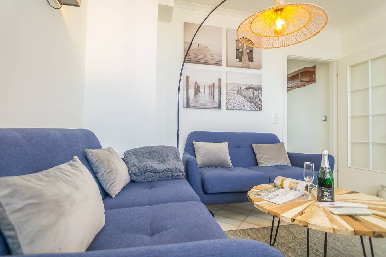 Ganz oben über den Dächern von Westerland! Erleben Sie mitten im Zentrum von Westerland den grandiosen Balkon-Blick vom nordöstlichen Wattenmeer über das Rantum-Becken bis zum südlichen Horizont. Ein Strandkorb und eine Sitzgarnitur laden nach einem traumhaften Sonnenaufgang von der Fußgängerzone abgewandt zum Frühstücken oder Sonnenbaden ein während Ihre Füße vom angenehmen Holzboden verwöhnt werden. Entscheiden Sie spontan, ob Sie nach wenigen Schritten in der Fußgängerzone der legendären Friedrichstrasse shoppen gehen oder lieber den Tag am ca. 200m entfernten Strand oder dem Erlebnis-/Wellnessbad „Sylter Welle“ verbringen wollen. Lassen Sie sich nach einem ereignisreichen Tag in den beiden Schlafzimmern bei gekipptem Fenster vom Meeresrauschen in den Schlaf schaukeln. Diese einzigartige 3-Zimmer-Ferienwohnung (ca. 50 qm, max. 4 Personen und Haustier) in der 4. Etage verfügt über einen modernen Aufzug und einen frisch renovierten Laubengang. Nach einem Blick nach Westen auf die Nordsee und dem Öffnen der Haustüre gelangen Sie durch den Flur, an der hochwertigen Küche (4-er Ceran-Kochfeld, Geschirrspüler, Kühl-/Gefrierkombination, Kaffee- [&] Espressomaschine, Wasserkocher, Toaster, Mikrowelle), dem ersten Schlafzimmer (TV und komfortables Boxspring-Doppelbett mit 2 Matratzen je 2,0m x 0,80m mit durchgehendem Topper und 0,60m Komfortliegehöhe ) und dem Bad (Sitzbadewanne, WC, Waschtisch [&] Handtuchheizkörper) vorbei in das gemütliche Wohn- [&] Esszimmer (TV, Audio-Anlage, Sitzgruppe [&] Essgarnitur). Von hier aus gelangen Sie in das zweite Schlafzimmer (TV, großes Doppelbett mit 2 Matratzen je 2,0m x 0,90m) und auf den Balkon. �� Haustiere sind willkommen!Für mitreisende Vierbeiner erhöht sich der Tagespreis um 5,00 €/Tier, zzgl. einer einmaligen Reinigungspauschale von 20,00 €/Tier. Im Untergeschoss des Hauses steht Ihnen eine gemeinschaftlich genutzte Waschmaschine gegen Münzeinwurf zur Verfügung.