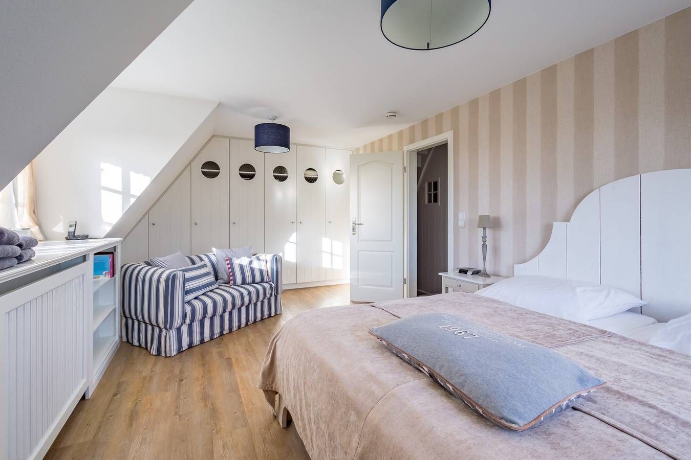 Moin und herzlich willkommen im "Friesenhaus meerZeit" - Ihrer reetgedeckten Oase an der Nordsee. Diese charmante Doppelhaushälfte bietet Ihnen mit zwei Schlafzimmern und zwei Bädern den idealen Raum für bis zu fünf Personen und einem Kleinkind. Hier erwartet Sie ein unvergesslicher Urlaub mit viel Komfort sowie einer Prise Luxus. Zu den Highlights gehören eine hauseigene Sauna, ein gepflegter Garten mit Terrasse und ein herrlicher Blick auf die umliegenden Felder. Die ruhige, strandnahe Lage lädt dazu ein, die Meerbrise zu genießen und vollkommen abzuschalten. Ab einem Aufenthalt von 7 Übernachtungen ist die Erstausstattung mit kleinen Wäschepaketen inklusive - für einen sorgenfreien Start in den Urlaub. Im Erdgeschoss befindet sich der großzügige Wohn- und Essbereich mit einer offenen, voll ausgestatteten Küche. Vom Wohnzimmer aus gelangen Sie direkt in den Garten und auf die sonnige Terrasse - der perfekte Ort für entspannte Stunden im Freien. Ein Ofen sorgt an kühleren tagen für wohlige Wärme und eine behagliche Atmosphäre. Im Obergeschoss erwarten Sie zwei liebevoll eingerichtete Schlafzimmer - eines mit Doppelbett und eigenem Fernseher, das zweite mit zwei Einzelbetten. Hier gibt es zudem eine Leseecke, einen kleinen Arbeitsplatz und eine gemütliche Chillecke - ideal zum Entspannen oder für eine Auszeit mit einem guten Buch. Im Souterrain wartet die private Sauna darauf, ihnen Entspannung pur zu bieten. Ein weiteres, großzügiges Vollbad mit Dusch und Badewanne sowie ein Tagesbett runden das Wohlfühlangebot ab. Genießen Sie unbeschwerte Sonnenstunden auf Ihrer eigenen Terrasse im Garten oder erkunden Sie die nahegelegenen Strände und idyllischen Landschaften. Ein privater PKW-Stellplatz direkt am Haus sorgt für zusätzlichen komfort. Erleben Sie im Friesenhaus meerZeit unvergessliche Urlaubstage, geprägt von Entspannung, Natur und nordischer Gemütlichkeit. Wir freuen uns darauf, Sie willkommen zu heißen. - Glasfaseranschluß - Yogamatten
