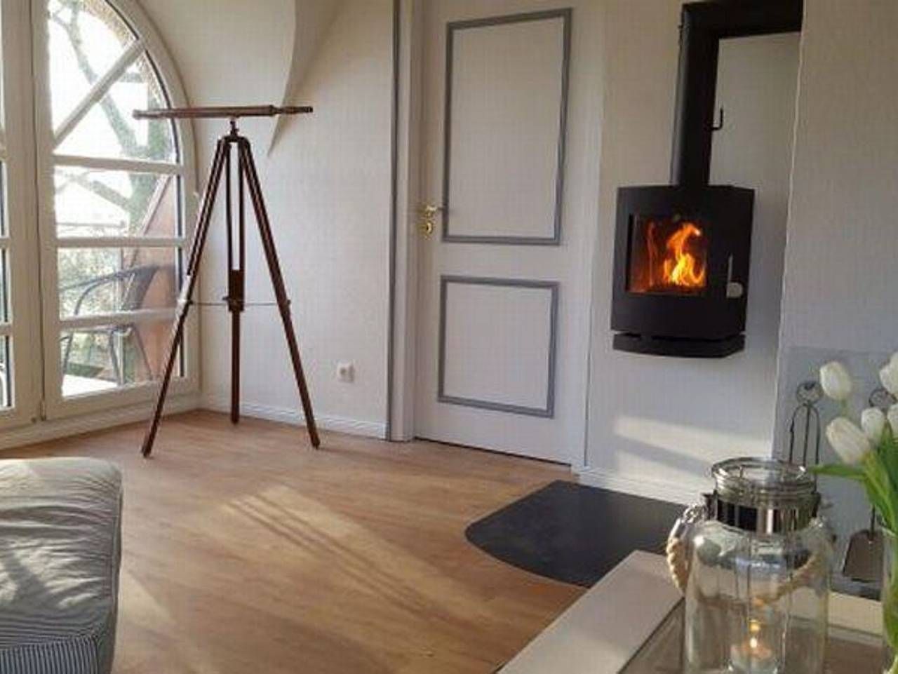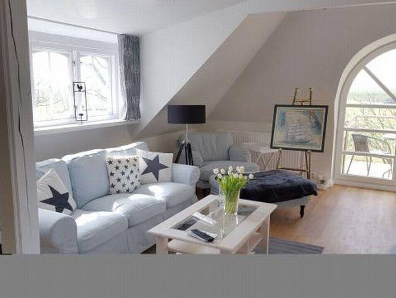 In herrlicher Warftlage, nahe am Nordseedeich, wurde das friesische Langhaus im Jahre 1871 als Bauernhaus mit dem typischen Reetdach erbaut und zu drei gepflegten und gemütlichen Ferienwohnungen für gehobene Ansprüche umgebaut. Die geschmackvollen und lässigen Einrichtungen, alle Wohnungen mit Spülmaschine, Kaminofen, Terrasse und Strandkorb bieten das ganze Jahr über Erholung bei jedem Nordseewetter . Die großzügige Dachwohnung ist ca. 100 qm groß und für 4 - 5 Personen geeignet. Durch das große Gaubenfenster mit Austritt nach Westen haben Sie einen großartigen Blick über die Wiesen zum Kirchturm und natürlich zum Leuchtturm. Die 4 Schlafkammern mit jeweils einem Gaubenfenster, sind zwar klein aber kuschelig. Im hellen Wohnraum befindet sich die Sitzecke mit lässigen Sitzmöbeln und Kaminofen. Im großen Küchenbereich mit Spülmaschine und freistehendem Kühlschrank lädt der große Esstisch zu schönen Gemeinschaftserlebnissen ein.