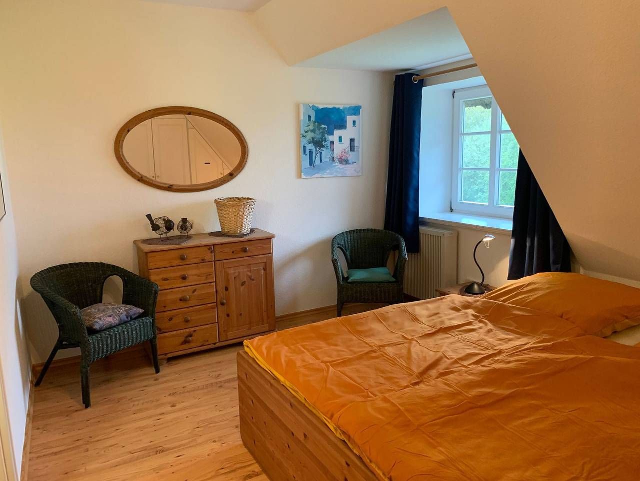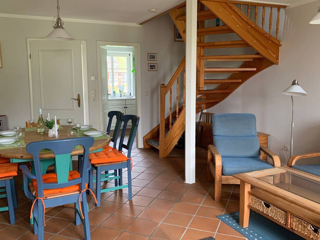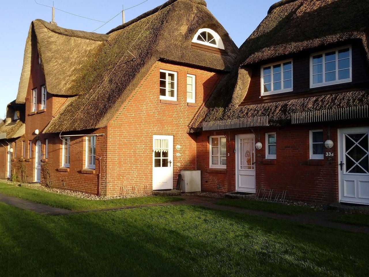 Der Friesenhof ist ein im typisch friesischen Stil erbautes Reetdachgebäude mit eigenständigen Hausteilen, gelegen im Kurzentrum Nordstrand. Der im Sommer 2022 frisch renovierte Hausteil ist ca. 90qm groß und ist für bis zu 6 Personen geeignet. Im Erdgeschoss befinden sich das geräumige Wohnzimmer mit Wohn- und Essbereich, die seperate komplett ausgestattet Einbauküche mit Spülmaschine, Mikrowelle usw. Vom Flur aus ist ein zusätzliches Gäste-WC zu erreichen, und vom Wohnzimmer aus geht es auf die möblierte zum Süden liegende Außenterrasse mit eigenem Strandkorb. Zwei Schlafzimmer, eines mit einem Doppelbett und ein weiteres mit zwei Einzelbetten, sowie Dusche/WC befinden sich im 1. Stock, ein drittes Schlafzimmer mit ebenfalls zwei Einzelbetten im oberen als Galerie ausgebauten Giebelzimmer. Das Haus verfügt über einen Glasfaseranschluss. Bettwäsche und Handtücher können optional dazu gebucht werden. Der Friesenhof liegt im Kurzentrum der Halbinsel Nordstrand, im Ortsteil Norderhafen. Der Nordseedeich mit Badestelle ist nur rund 300m entfernt. Bäcker, Café und Mini-Markt, sowie Restaurants sind ebenfalls fußläufug erreichbar. Der Fährhafen Strucklahnungshörn ist ist 1,5km entfernt. Von dort aus kann man Ausflugsfahrten durch das Wattenmeer starten und auch frischen Fisch und Krabben bei den hiesigen Krabbenfischern kaufen. Der Strand Fuhlehörn mit Strandkorbverleih und Imbiss ist nur rund 2,5km entfernt.