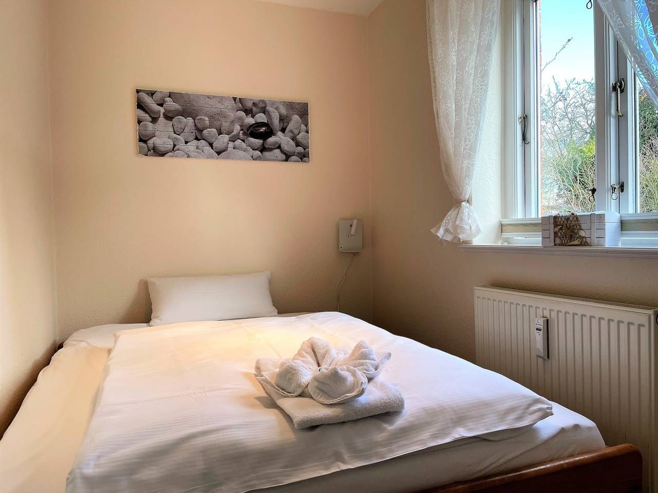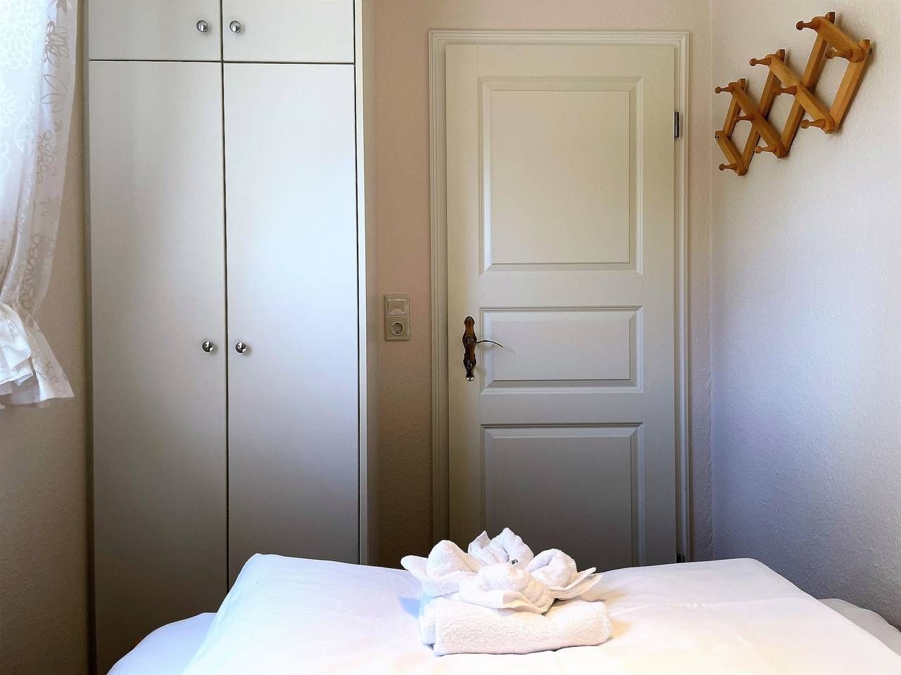 Die Wohnanlage Friesenperle in der Feldstraße in Wyk ist zentral gelegen und bietet gemütliche Wohnungen für 2 bis 4 Personen, teilweise mit Hundeerlaubnis, an. Zur gemeinschaftlichen Nutzung gehört eine Sauna, eine Grillecke und ein Schaukelgerüst. Zentral in Wyk liegt diese Wohnung in einer Ferienhausanlage auf einem großen Grundstück mit viel Platz zum Toben und Spielen für unsere kleinen Gäste. Im Untergeschoss des Hauses finden Sie eine Sauna (gegen Gebühr), einen Ruheraum, Waschmaschine und Trockner (gegen Gebühr) zur gemeinschaftlichen Nutzung. Gerne stellen wir Ihnen ein Kinderbett und einen Hochstuihl bereit. Ein PKW- Stellplatz befindet sich direkt am Domizil. An den Parkplatz angrenzend ist zwischen zwei alten Obstbäumen ein kleiner Spielbereich angelegt mit zwei Schaukeln und einem Klettergerüst, wenn Ihre Lütten mal nicht zum Strand gehen möchten - oder einfach mal für zwischendurch. Die Abgrenzung zum Nachbargrundstück erfolgt durch einen mit Sträuchern begrünten Friesenwall. Alle wichtigen Versorgungseinrichtungen wie Bäcker, Supermarkt usw. befinden sich in unmittelbarer Nähe. Den Strand, das Meerwasserwellenbad AquaFöhr sowie das Kleintiergehege erreichen Sie zu Fuß in wenigen Minuten. Falls Sie grillen möchten, haben wir eine Grillecke mit Tisch und Sitzgelegenheiten eingerichtet. Hier können Sie sich nach einem Tag am Strand oder einer Inseltour mit anderen Feriengästen zum Grillen verabreden und den Urlaubstag in geselliger Runde mit Würstchen, Steak und Flens ausklingen lassen. Die gemütliche Ferienwohnung Friesenperle Nr. 3 wurde liebevoll eingerichtet und verfügt über eine umfassende Ausstattung die keine Wünsche offen lässt. Kabel-TV, Telefon, WLAN und Stereoradio im Wohnzimmer und eine integrierte Küchezeile mit Backofen, Geschirrspüler, Wasserkocher und einigem mehr bieten Ihnen den gehobenen Komfort, den Sie von dieser Wohnung erwarten dürfen. Die Wohnung (ca. 45 m) befindet sich im Erdgeschoss und verfügt über ein Schlafzimmer mit Doppelbett (180 x 200 cm), ein Kinderzimmer mit franz. Bett (durchgehende Matratze 140 x 200 cm) sowie dem kleinen Flur und dem Badezimmer mit einer Dusche. Die Terrasse ist nach Süden ausgerichtet, sodass Sie von morgens bis abends die Sonne genießen können. Der Zugang erfolgt direkt aus dem Wohn,-Küchenbereich über eine doppelflügelige Terrassentür. Die Lage des gesamten Terrassenbereiches ist absolut ruhig und so gestaltet, dass ein Sichtschutz und die grüne Bepflanzung zum Nachbargrundstück Ihnen die Privatspähre gestattet, die Sie sich wünschen. Dies ist ein Domizil zum Wohlfühlen und zum Genießen Ihres Urlaubes. In dieser Anlage betreuen wir die Wohnungen 2,3,5,6 und 11. Besonders mehrere Generationen oder befreundete Familie können hier Ihre Ferien wunderbar gemeinsam verbringen. ---------------------------------------- 2025: Infos zum Wäschepaket (obligatorisch): Unser Wäschepaket besteht aus der bezogenen Bettwäsche, 1 Duschtuch, 2 Handtüchern, 1 Geschirrtuch und einem Badvorleger und gehört obligatorisch zur Buchung dazu. Ab 21 Übernachtungen bieten wir auf Wunsch einen kostenfreien Wäschewechsel an. Zusätzlich können Handtücher und Duschtücher optional nach Bedarf einzeln hinzugebucht werden. Ab 2026 mehr Flexibilität und Individualität: Das bekannte Wäschepaket ist nicht mehr buchbar. Die Bettwäsche bleibt aus hygienischen Ansprüchen eine obligatorische Serviceleistung. Sie finden die Betten weiterhin bezogen vor. Doch Hand- und Duschtücher können Sie künftig entweder selbst mitbringen oder auf eigenen Wunsch einzeln optional hinzubuchen. Diese Variante ist aus betrieblichen Gründen erst für Buchungen in 2026 buchbar und entspricht dem Gästewunsch laut Umfrage nach mehr Flexibilität, Individualität und Nachhaltigkeit! Infos zum Präsentkorb Föhrer Inselkäse für 2 oder 4 Personen (Inhalte nicht austauschbar) Der Föhrer Präsentkorb für 4 Personen enthält: 200g Föhrer Naturkäse, 200g roten Föhrer Fruchtaufstrich, 430g Alkersumer Gemüsetopf, 6 Stangen (ca. 160g) Wattwürmer, 150g Landleberwurst , 125ml Föhrer Chutney und 0,33l Föhrer Biar. Der Föhrer Präsentkorb für 2 Personen enthält: 200g Föhrer Bärlauch-Käse, 200g Föhrer Fruchtaufstrich Apfel-Zimt, 430g vegane Linsenbolognese und ca. 130g mildem Landschinken vom Schwein.