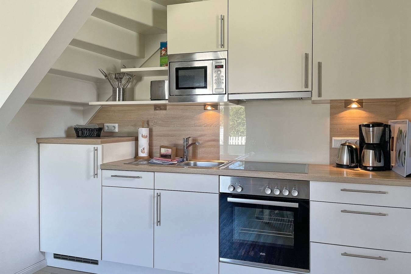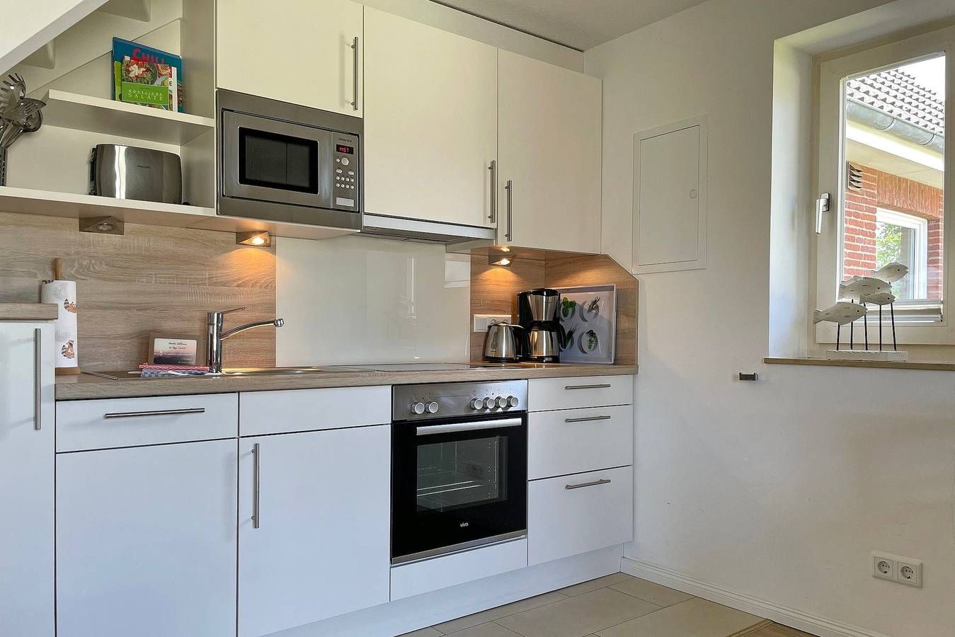 Das Haus Friesenstern mit seinen zwei Wohneinheiten ist ein charmantes Feriendomizil mit einer hochwertigen Ausstattung. Der große Gemienschaftsgarten begeistert nicht nur die kleinen Gäste, die sich austoben können, während sich die Großen auf der jeweils eigenen Terrasse entspannen. Umgeben von Grün,inmitten eines schönen Gartens mit Spielgeräten steht das Haus Friesenstern mit 2 Wohnungen. Über kurze Wege erreichen Sie die Innenstadt, die Strandpromenade mit ihren vielen Cafes und Boutiquen sowie den Strand. Die Wohnung 2 im Anbau zeichnet sich durch einen hellen Flur aus von dem man ins Bad gelangt. Dort befindet sich auch eine Waschmaschine. Weiter gelangt man in einen modernen Wohn-Essbereich mit einer ebenfalls sehr gut ausgestatteten Küchezeile und einem direkten Zugang zur eigenen Terrasse und dem Garten. Im Obergeschoss befindet sich ein Schlafzimmer mit Doppelbett(1,80x2,00m) sowie einem Alkovenbett (90 x 190cm) für ein Kind. Auf dem großen Waldspielplatz Löwenhöhle oder im Friesenmuseum gleich in der Nachbarschaft finden Klein und Groß Spaß und Interressantes über die grüne Insel. Haupthaus und Anbau sind sehr kinderfreundlich gestaltet und laden zu einem entspannten Urlaub auf unserer grünen Insel ein. Bei Auswahl eines Kinderreisebetts wird dieses anstelle eines normalen Bettes bezogen. Sollten Sie das Kinderreisebett zusätzlich benötigen, buchen Sie bitte ein weiteres Wäschepaket hinzu, da wir nur bezogene Kinderreisebetten verleihen. ---------------------------------------- 2025: Infos zum Wäschepaket (obligatorisch): Unser Wäschepaket besteht aus der bezogenen Bettwäsche, 1 Duschtuch, 2 Handtüchern, 1 Geschirrtuch und einem Badvorleger und gehört obligatorisch zur Buchung dazu. Ab 21 Übernachtungen bieten wir auf Wunsch einen kostenfreien Wäschewechsel an. Zusätzlich können Handtücher und Duschtücher optional nach Bedarf einzeln hinzugebucht werden. Ab 2026 mehr Flexibilität und Individualität: Das bekannte Wäschepaket ist nicht mehr buchbar. Die Bettwäsche bleibt aus hygienischen Ansprüchen eine obligatorische Serviceleistung. Sie finden die Betten weiterhin bezogen vor. Doch Hand- und Duschtücher können Sie künftig entweder selbst mitbringen oder auf eigenen Wunsch einzeln optional hinzubuchen. Diese Variante ist aus betrieblichen Gründen erst für Buchungen in 2026 buchbar und entspricht dem Gästewunsch laut Umfrage nach mehr Flexibilität, Individualität und Nachhaltigkeit! Infos zum Präsentkorb Föhrer Inselkäse für 2 oder 4 Personen (Inhalte nicht austauschbar) Der Föhrer Präsentkorb für 4 Personen enthält: 200g Föhrer Naturkäse, 200g roten Föhrer Fruchtaufstrich, 430g Alkersumer Gemüsetopf, 6 Stangen (ca. 160g) Wattwürmer, 150g Landleberwurst , 125ml Föhrer Chutney und 0,33l Föhrer Biar. Der Föhrer Präsentkorb für 2 Personen enthält: 200g Föhrer Bärlauch-Käse, 200g Föhrer Fruchtaufstrich Apfel-Zimt, 430g vegane Linsenbolognese und ca. 130g mildem Landschinken vom Schwein.