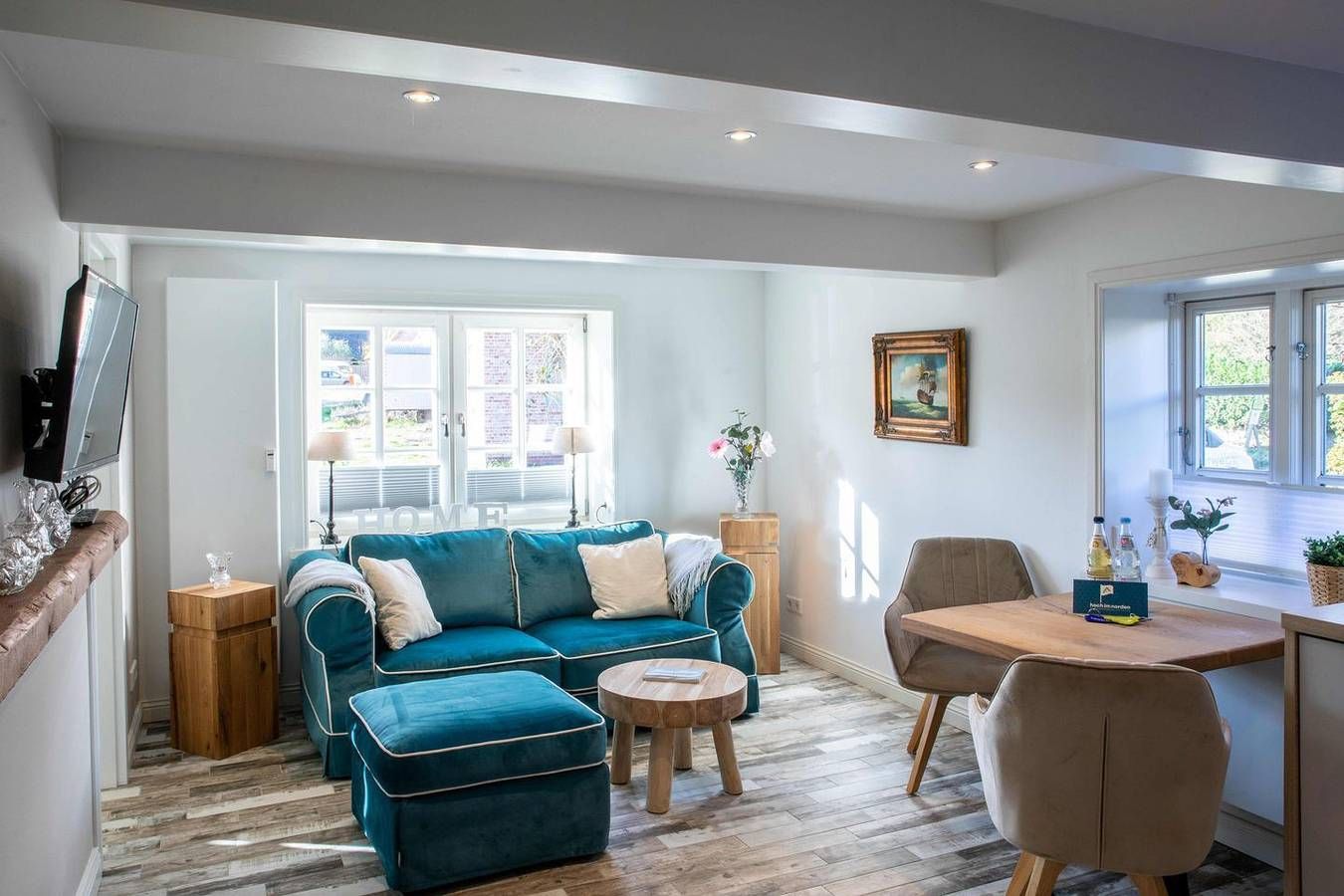 Willkommen in der Töwerland Ferienwohnung Töwerland 1, einem gemütlichen Rückzugsort in ländlicher Umgebung in Oevenum, direkt auf der Insel Föhr. Diese einladende Ferienwohnung bietet Ihnen auf 35 m² alles, was Sie für einen komfortablen Aufenthalt benötigen, und eignet sich ideal für Paare oder kleine Familien, die eine entspannende Zeit verbringen möchten. Die Unterkunft verfügt über ein Schlafzimmer mit zwei Schlafmöglichkeiten sowie ein gut ausgestattetes Badezimmer mit einer bodengleichen Dusche. Die geräumige Wohnfläche umfasst ein Wohnzimmer mit Sofaecke, einem Sessel und einem Esstisch, wo Sie gemeinsam essen und entspannen können. Der offene Küchenbereich ist mit modernen Geräten ausgestattet, darunter ein Cerankochfeld, ein Elektrobackofen, eine Spülmaschine, ein Kühlschrank mit Gefrierfach sowie weitere Küchenutensilien wie ein Toaster und eine Kaffeemaschine. Diese Ausstattung ermöglicht es Ihnen, leckere Mahlzeiten zuzubereiten, während Sie den Blick auf den Garten genießen. Die Ferienwohnung ist mit WLAN ausgestattet, sodass Sie auch während Ihres Aufenthalts in Verbindung bleiben können. Für Ihre Sicherheit sorgt ein Rauchmelder, und es stehen Ihnen Erstausstattung, Bettwäsche und Handtücher zur Verfügung, die im Mietpreis inbegriffen sind. Besonders hervorzuheben ist die private Terrasse, die mit Gartenmöbeln ausgestattet ist. Hier können Sie entspannen und die frische Luft genießen. Der hauseigene Garten, sowie der Strandkorb am Strand, laden Sie ein, die Natur in vollen Zügen zu erleben. Die Entfernung zum Sandstrand beträgt lediglich 3800 m, sowie zu Einkaufsmöglichkeiten und Restaurants, die in angenehmer Nähe zu erreichen sind. Ein Restaurant befindet sich nur 100 m von der Wohnung entfernt, während Sie die nächsten Einkaufsmöglichkeiten nach 3100 m erreichen. Die Lage der Wohnung bietet eine ideale Ausgangsbasis für Erholungssuchende und Naturliebhaber. Profitieren Sie von der ruhigen ländlichen Umgebung und den nahegelegenen sportlichen Aktivitäten wie Golf, das nur 3600 m entfernt ist. Die Insel Föhr bietet vielfältige Freizeitmöglichkeiten, von den sanften Stränden bis hin zu Rad- und Wanderwegen, die die wunderschöne Nordseeküste umgeben. Diese Ferienwohnung ist kinderfreundlich, bietet jedoch auch eine Haustierregelung, sodass kleine und vierbeinige Begleiter herzlich willkommen sind (maximal 1 Haustier). Abgerundet wird das Angebot durch praktische Annehmlichkeiten wie einen Privatparkplatz, Gemeinschaftsnutzung von Waschmaschine und Trockner sowie die Möglichkeit einer Kinderbetreuung mit Hochstuhl und Babybett. Die letzte Renovierung der Ferienwohnung fand 2022 statt, sodass Sie sich auf moderne und frische Räume freuen können. Der gemütliche und authentische Stil schafft eine einladende Atmosphäre, wo Sie sich wie zu Hause fühlen können. Wenn Sie sich eine Auszeit vom Alltag gönnen und die Schönheit der Nordsee genießen möchten, dann ist die Töwerland Ferienwohnung Töwerland 1 der perfekte Ort für Ihren nächsten Urlaub. Sichern Sie sich Ihren Aufenthalt und erleben Sie unvergessliche Tage auf Föhr, umgeben von Komfort und einer atemberaubenden Natur.