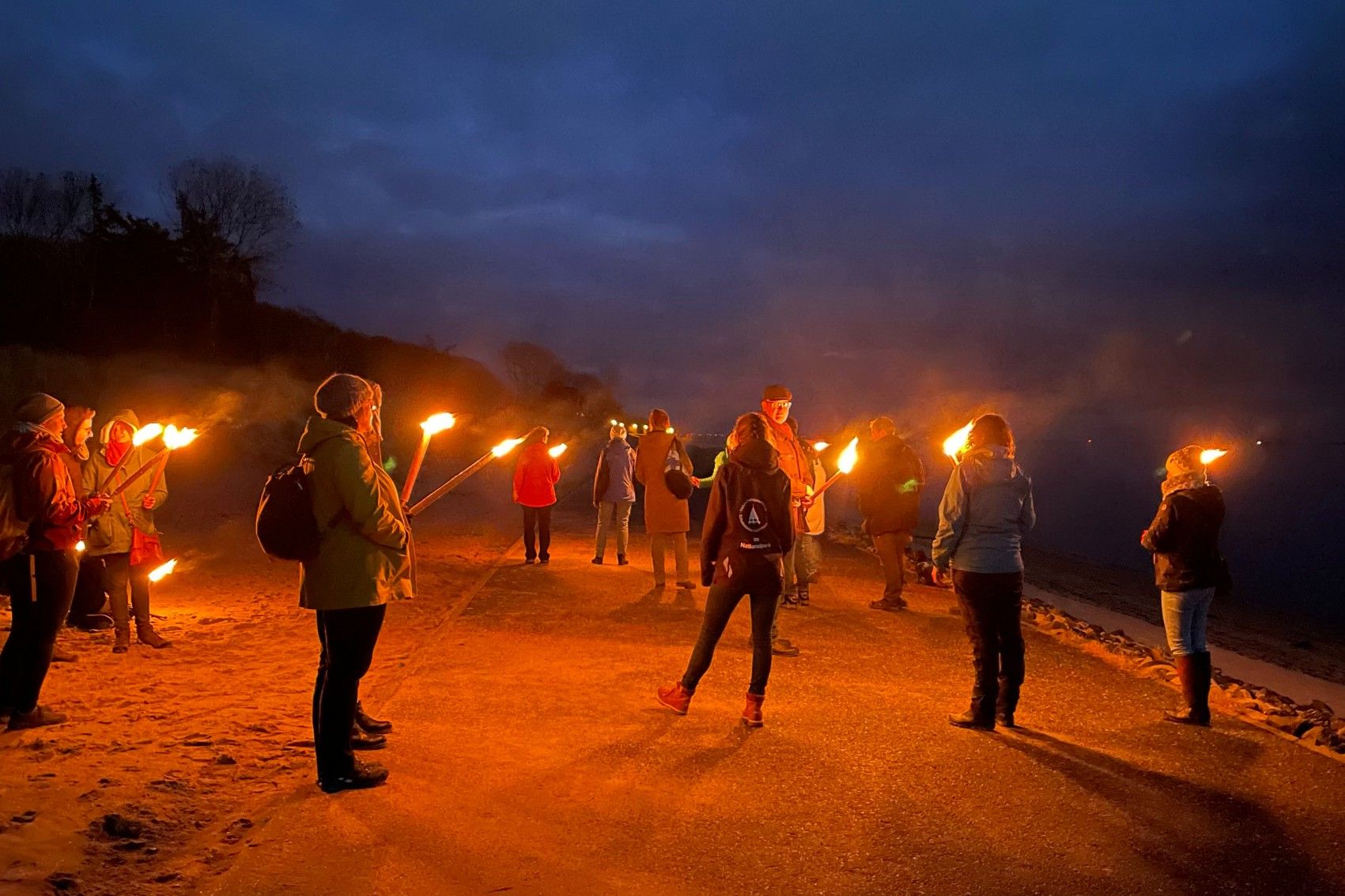 Beschaulich und ruhig sieht Föhr mit seinem weißen Strand und den friedlichen Schafen auf den Deichen aus. Doch der Schein trügt! Kleine Oterbantjes sollen nachts ihr Unwesen und so manch einen Insulaner zur Weißglut treiben. Und mitten in der Nordsee, gar nicht weit von hier, lebt angeblich ein großer Drache und atmet ganz langsam ein und aus. Doch was hat der Drache mit Ebbe und Flut zu tun und warum ist die Nordsee eigentlich salzig? Erfahren Sie auf dieser rund 1,5-stündigen Tour eine Mischung aus Sagen und Wissenschaft und entscheiden Sie am Ende selbst, welcher Variante Sie mehr Glauben schenken. Das Licht der Fackel trägt zu einer einzigartigen Atmosphäre bei. Wir empfehlen je nach Jahreszeit barfuß oder mit festem Schuhwerk teilzunehmen und behalten uns vor, die Fackeln bei starkem Wind aus Sicherheitsgründen nicht anzuzünden. Wir übernehmen keine Haftung im Fall von Brandlöchern in der Kleidung.