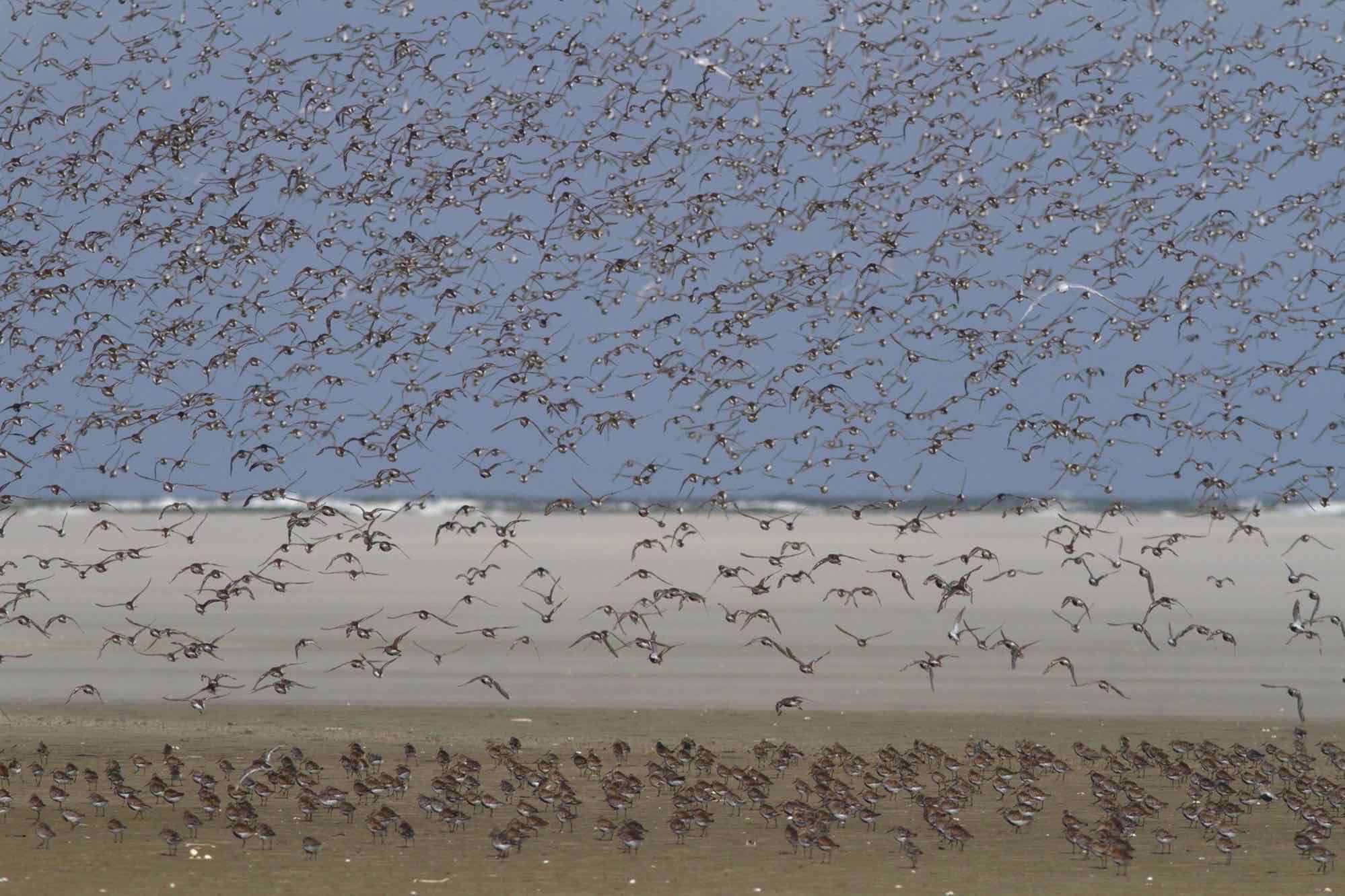 Die Vogelwelt aus einer anderen Perspektive zu beobachten, kann sehr reizvoll sein. Gerade zur Zugzeit im Frühjahr und Herbst bilden sich auf den freien Wattflächen und Außensänden oft imposante Schwärme einiger Watvogelarten. Ein eindruckvolles und unvergessliches Erlebnis. Ausgerüstet mit Fernglas und Fernrohr gehen wir ins Watt, beobachten dort Vogelarten wie Knutt oder Alpenstrandläufer bei der Nahrungssuche und studieren ihr Verhalten.