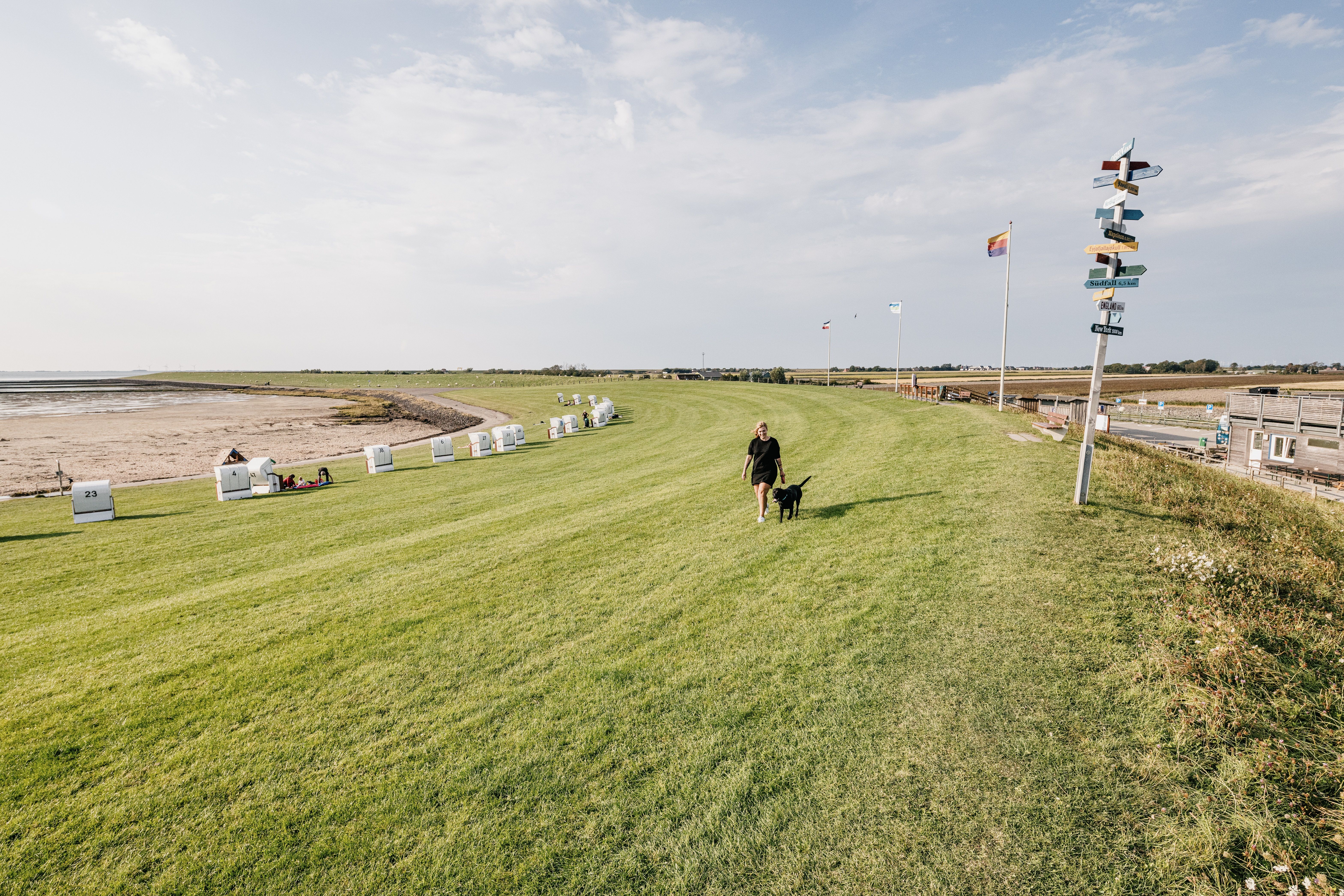 Auch Hunde sind willkommen: Ein separater Hundestrand macht Fuhlehörn zu einem beliebten Ausflugsziel für Tierfreunde. Allerdings gilt auch hier Leinenpflicht!