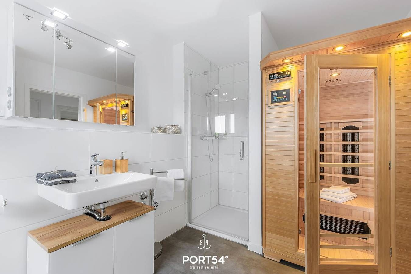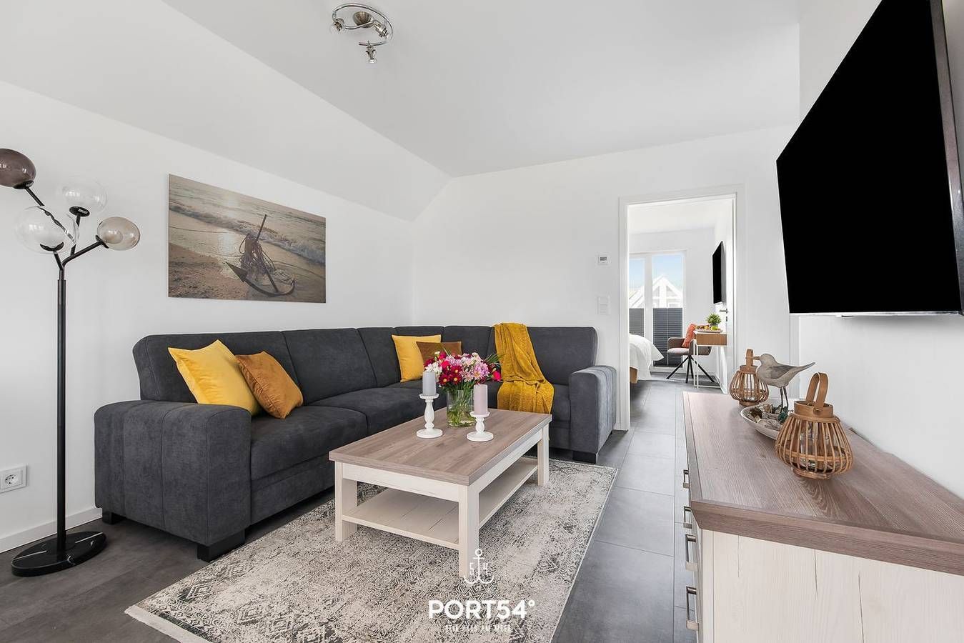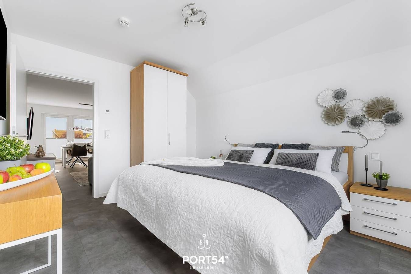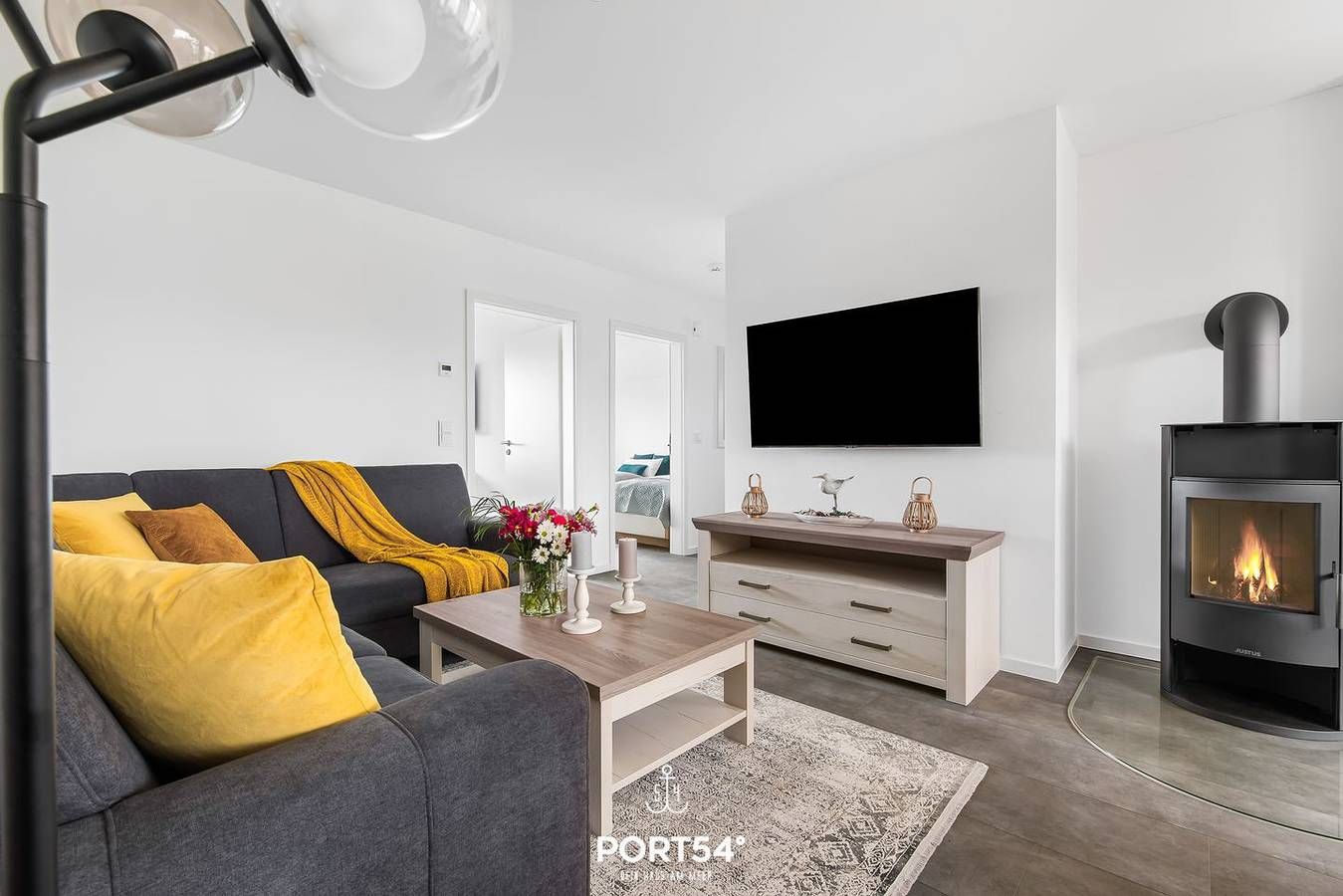 Einzigartig und gemütlich ausgestattet, fängt der Urlaub hier an. Das moderne Wohnzimmer bietet einen großen Esszimmertisch mit Sitzmöglichkeiten für 4 Personen. Der Kamin spendet besonders in den Wintermonaten eine wohlige Wärme. Für Ihre Unterhaltung finden Sie im Wohnzimmer auch einen Smart-TV. Die hochwertige Küche ist u.a. mit einer Waschmaschine, Geschirrspüler, Backofen, Kaffeemaschine (Nespresso-Maschine), Wasserkocher, Toaster und Mikrowelle ausgestattet. Die Wohnung verfügt über zwei Schlafzimmer. Das erste Schlafzimmer ist mit einem Doppelbett ausgestattet, das zweite Schlafzimmer mit 2 Einzelbetten, welche problemlos zusammengeschoben werden können. Beide Schlafzimmer sind mit jeweils einem Smart-TV ausgestattet. In beiden Schlafräumen gibt es Maß-Plissees zum Sicht- und Sonnenschutz, um bei Bedarf eine maximale Verdunkelung zu erreichen, damit Sie in Ihrem Urlaub einen erholsamen Schlaf haben. Im Badezimmer erwartet Sie eine Infrarot-Sauna. Für die kleinen Gäste ist ebenfalls gut gesorgt: Die Wohnung verfügt über einen Hochstuhl und ein Kleinkinderreisebett. Der schöne, große Balkon ist der perfekte Platz für einen Grillabend. Es ist ein Elektrogrill vorhanden, sowie ein Gartentisch mit 4 Gartenstühlen und Polstern. Vor der Unterkunft steht Ihnen ein eigener, kostenfreier Parkplatz für einen PKW zur Verfügung. Mitgebrachte Fahrräder können im verschließbaren Schuppen untergestellt werden. Außerdem gibt es eine E-Ladesäule zusammen mit der Nachbarwohnung, die Abrechnung erfolgt direkt an der Säule. Sollten Sie Ihren Nordseeurlaub mit der ganzen Familie und Freunden verbringen wollen, können wir Ihnen durch die Verwaltung mehrerer Objekte auch eine Symbiose aus 2 nebeneinander liegenden Ferienwohnungen ermöglichen.