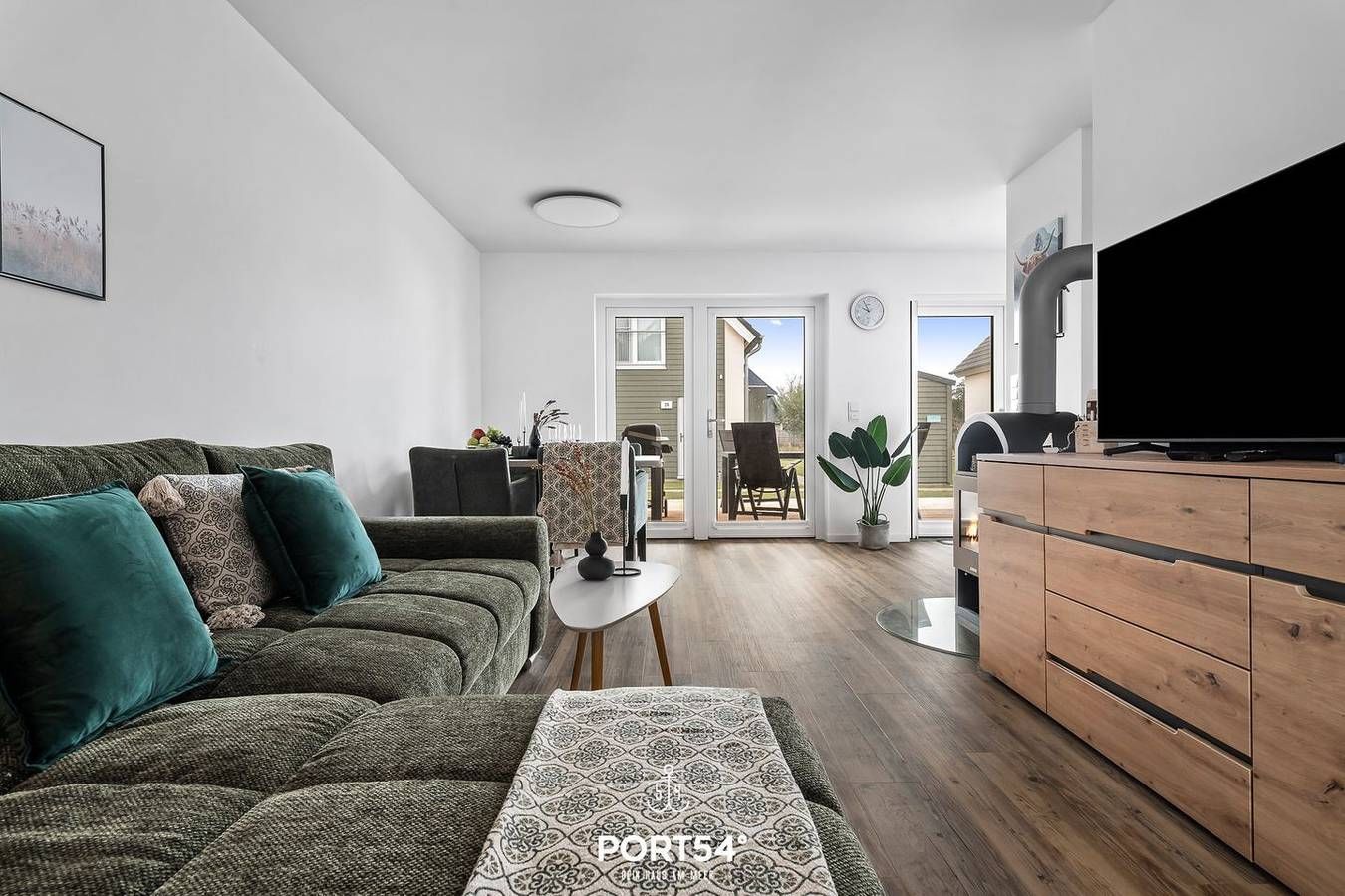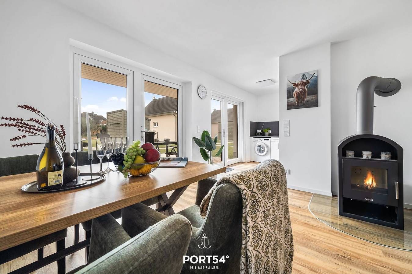 Die Ferienwohnung "Seute Deern" für 4 Personen wurde im Frühjahr 2022 fertig gestellt und befindet sich im schönen Nordseeresort fußläufig zur Familienlagune „Perlebucht“. Neben zwei Schlafzimmern, einem Badezimmer mit Badewanne und einer offenen Küche, lädt die Wohnung "Seute Deern" mit einem geräumigen Wohnbereich mit Kamin und einer Terrasse mit angrenzender Rasenfläche zu jeder Jahreszeit zu einem Nordseeurlaub ein. Ein Schlafzimmer ist mit einem Doppelbett (180x200cm) und das andere mit zwei Einzelbetten (je 90x200cm) ausgestattet. Beide Schlafzimmer verfügen über einen Flatscreen-TV, Insektenschutzgitter, sowie Verdunkelungsmöglichkeiten, für einen erholsamen Schlaf. Der gemütliche und moderne Wohnbereich bietet ein Sofa, sowie einen Flachbild-TV mit einer Nintendo Switch. Ein Feuer im Kamin sorgt für zusätzliche Gemütlichkeit an kalten Tagen. Vom Essbereich aus blicken Sie in die moderne voll ausgestattete Küche, die keine Wünsche offen lässt. Hier lassen sich wunderbar Kochabende mit der ganzen Familie verbringen. Das großzügige Badezimmer mit Badewanne und ebenerdiger Dusche bietet genügend Platz zum Entspannen. Vom Essbereich geht die Terrasse ab, auf der Sie einen gemütlichen Grillabend verbringen können. Auf der Terrasse finden Sie einen großen Gartentisch mit Platz für 4 Personen. Mitgebrachte oder vor Ort ausgeliehene Fahrräder können im abschließbaren Fahrradschuppen direkt vor dem Haus untergestellt werden. Sollten Sie Ihren Nordseeurlaub mit der ganzen Familie und Freunden verbringen wollen, können wir Ihnen durch die Verwaltung mehrerer Objekte auch eine Symbiose aus 2 nebeneinander liegenden Ferienwohnungen ermöglichen.