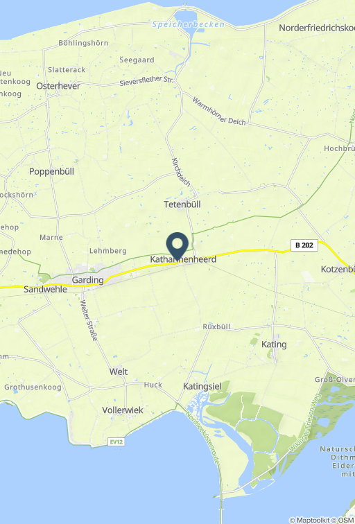 Ferienwohnung EG und OG, 8 Personen, ca. 80 qm Erdgeschoß: Wohnzimmer mit Farb-TV, Stereoanlage Schlafzimmer mit Doppelbett, Kleiderschrank Küche mit Herd mit Ceranfeld, Geschirrspülmaschine und Mikrowelle Waschmaschine Duschbad Obergeschoß: Schlafzimmer mit 3 Einzelbetten Schlafzimmer mit Etagenbett und Einzelbett, Kinderreisebett Gäste-WC WLAN Das Gästehaus Willkommen liegt in dem Ort Katharinenheerd im Herzen der Halbinsel Eiderstedt. Das Haus liegt verkehrsgünstig an der Strasse, die Sie in 10 Autominuten nach St. Peter- Ording führt. Das ehemalige Bauernhaus bietet den Gästen neben drei modern ausgestatteten Ferienwohnngen mit WLAN-Anschluß für 4 - 8 Personen einen 1600 qm großen Garten mit Gartenmöbeln, mehreren Grills, zwei Sandkisten , Schaukel, Rutsche und Fahrräder in verschiedenen Größen. Direkt vor dem Haus befindet sich ein Radweg für ausgedehnte Fahrradtouren. Im Sommer laden der Spezialitätenmarkt der Landfrauen und die Musikantenbörse zum Verweilen ein. die Musikantenbörse findet immer Dienstagsabend in der Innenstadt statt. Hier können Sie "handgemachte" Musik auf mehreren Bühnen genießen. Für das leibliche Wohl ist selbstverständlich auch gesorgt. Wenn Sie einmal nicht nach St. Peter- Ording (ca. 10 Autominuten) zum Baden möchten, besuchen Sie doch die Badestelle in Vollerwiek (ca. 5 Autominuten). Sie ist auch gut mit dem Fahrrad zu erreichen. An der DLRG- bewachten Badestelle finden sie alles, was Sie für einen erholsamen Urlaubstag benötigen. Parkplätze, Süßwasserduschen, Liegeflächen auf dem Gründeich, Sandkasten, Treppen ins Wasser. Hinter dem Deich befindet sich ein beliebter Strandimbiss Bettwäsche kann gegen Gebühr gemietet werden. Handtücher müssen Sie bitte mitbringen. Fahrräder stehen kostenlos zur Verfügung. Die Ferienunterkunft ist am Anreisetag ab 15.00 Uhr bezugsfertig und steht Ihnen am Abreisetag bis 10.00 Uhr zur Verfügung. Bitte melden Sie sich spätestens 1 Woche vor Anreise bei Familie Ploog und besprechen mit Familie Ploog die Schlüsselübergabe.