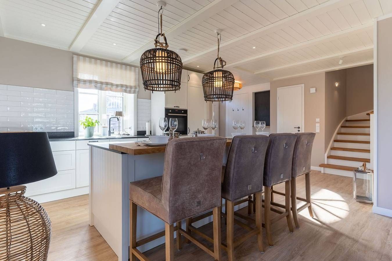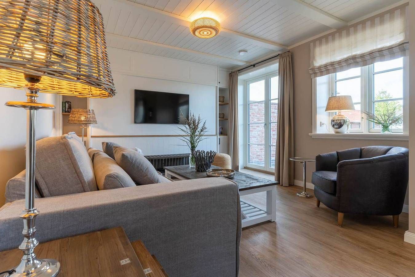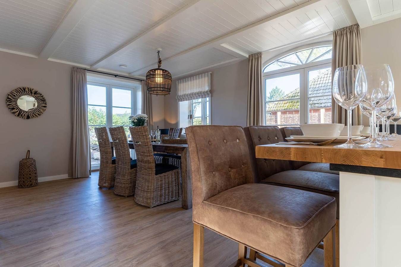 Reetdach-Doppelhaushälfte Gaia - Ferienhaus für 6 Personen in SPO Dorf. Ankommen und sich Wohlfühlen und vom ersten Moment an den Urlaub in vollen Zügen genießen. Das können Sie in dieser mit Liebe zum Detail eingerichteten Reetdachhaushälfte im Ortsteil Sankt-Peter-Dorf. Das Haus ist seit September 2022 in der Vermietung und verfügt über ca. 110 m² Wohnfläche und bietet Platz für 6 Personen. Im Erdgeschoss erwartet Sie ein loftartiges Gefühl, denn das lichtdurchflutete Wohnzimmer, die offene Küche sowie das wunderschöne Esszimmer mit luxuriösen Möbeln gehen alle ineinander über. Die Küche verfügt über hochwertige Elektrogeräte und genügend Platz zum gemeinsamen Kochen. Der Flur bietet ausreichend Stauraum für Schuhe, Jacken und Schirme. Ebenfalls im Erdgeschoss befindet sich ein kleiner Abstellraum mit Waschmaschine und Trockner sowie ein kleines Gäste-WC. Über eine schöne Holztreppe gelangt man in das Obergeschoss, in dem sich 3 liebevoll eingerichtete Schlafzimmer sowie 2 Bäder mit einer kleinen Sauna befinden. Das Master-Schlafzimmer verfügt über ein Doppelbett, einen TV, einen großen Kleiderschrank sowie ein eigenes kleines Bad en suite. Die 2 anderen Schlafzimmer sind ebenfalls mit TV und einem Kleiderschrank ausgestattet. Das vollausgestattete Badezimmer im OG, hat eine Dusche, ein WC und einen großzügigen Doppelwaschtisch. Ein Highlight ist die integrierte Sauna, die das hochwertige Hauskonzept abrundet und keine Wünsche offen lässt. Das Grundstück mit Stellplatz, Rasenfläche und zwei sonnigen Terrassen- einer Frühstücksterrasse und einer Abendterrasse - ist mit Pflanzen aus der Region angelegt. Der Garten ist eingezäunt. Für die Sicherheit Ihrer Fahrräder gibt es ein kleines Fahrradhäuschen, so dass ungetrübten Urlaubstagen nichts im Wege steht. Zudem besticht das Haus durch die einzigartige Lage, denn in nur wenigen Minuten gelangt man zu Fuß zu vielen Lebensmittelgeschäften und in das Dorfzentrum des Ortsteils "Dorf". Das Grundstück liegt in einer Sackgasse, so dass nur wenig Autoverkehr Ihren erholsamen Urlaub beeinträchtigt. Dieses liebevolle und individuelle Haus lässt keine Wünsche offen und garantiert Ihnen von der ersten Minute an einen unvergleichlichen Urlaub an der Nordseeküste.