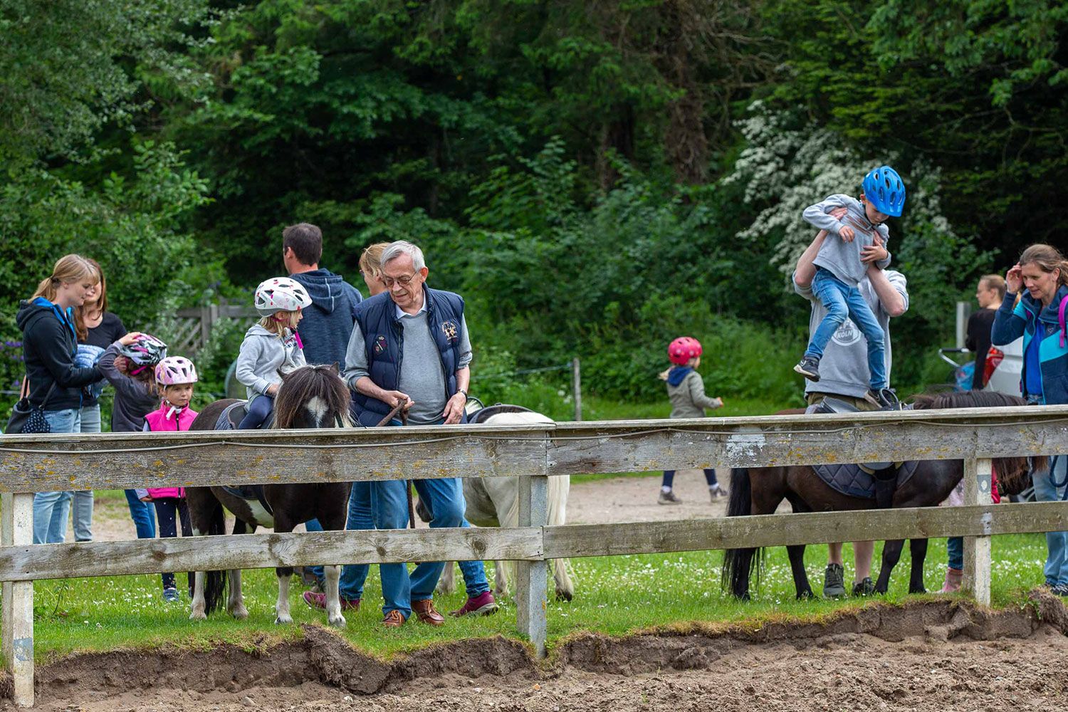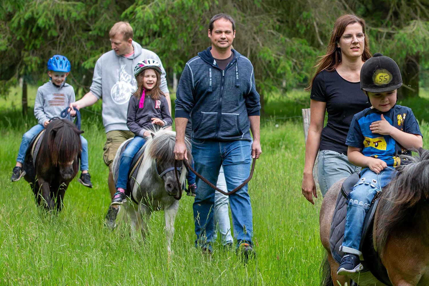 Der besondere Anblick einer Ponymähne von oben, die ersten Reiterlebnisse, die schöne Natur - das ist Kinderglück pur. Sie können ihr Kind neben dem Pony begleiten und mit einem ca. 1,3 km langen Spaziergang auf unserem herrlichen Wiesengelände verbinden.