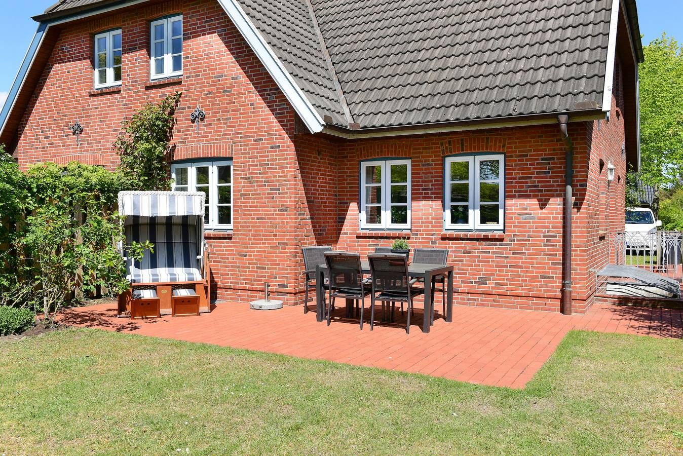Moin und herzlich willkommen im Haus "Gmelinstraße 33" - Ihrem perfekten Rückzugsort für unvergessliche Tage an der Nordsee. Mit großzügigen 130 m² Wohnfläche bietet dieses Ferienhaus ausreichend Raum für bis zu 6 Erwachsene oder Familien mit Kindern und begeistert mit seiner Lage. Nur wenige Schritte entfernt befinden sich der beliebte, bewachte Südstrand sowie der idyllische Nordseekurpark. Die Erstausstattung mit Bettbezügen sowie Handtüchern ist inklusive. Das lichtdurchflutete Innere des Hauses lädt zum Wohlfühlen und Entspannen ein: Im großen Wohnzimmer erwartet Sie eine komfortable Einrichtung mit Flachbildschirm, Radio und kostenlosem WLAN. Der einladende Essbereich und die gemütliche Sitzecke machen das Wohnzimmer zum perfekten Ort für entspannte Fernsehabende oder gemeinsame Mahlzeiten. Erholsame Nächte garantieren die drei geschmackvoll gestalteten Schlafzimmer - ausgestattet mit bequemen Doppel- oder Einzelbetten. Jedes Zimmer ist abschließbar, sodass Ihnen und Ihren Mitreisenden auch bei voller Belegung Ruhe und Privatsphäre sicher sind. Die geräumige, komplett ausgestattete Küche mit Geschirrspüler lädt zu geselligen Kochsessions ein, bei denen Sie gemeinsam Ihre Lieblingsgerichte zaubern können. Insgesamt bietet das Haus vier Sanitärräume für höchsten Komfort: Im Obergeschoss finden Sie ein großes Vollbad mit Wanne, Dusche und WC sowie ein zusätzliches Duschbad. Ein Gäste-WC steht im Erdgeschoss zur Verfügung und im Souterrain erwartet Sie ein weiteres Badezimmer mit Dusche, WC sowie Waschmaschine und Trockner. Der nahegelegene Südstrand ist einer der schönsten Strandabschnitte der Insel . genießen Sie dort entschleunigende Stunden am Meer, die Sandwattflächen oder den herrlichen Blick auf die Halligen und die Insel Amrum. Der Außenbereich des Ferienhaus lädt Sie ebenfalls zum Verweilen ein: Der große Garten sowie die sonnige Terrasse mit Strandkorb und Gartenmöbeln sind ideal, um die frische Nordseeluft zu genießen. Starten Sie Ihren Tag mit einem Frühstück im Freien, entspannen Sie tagsüber in der Sonne oder lassen Sie den Abend auf der Terrasse ausklingen. Wir freuen uns auch Ihren Besuch!