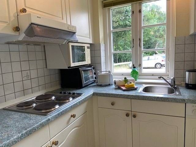 In der Strandstraße in Wyk liegt die gepflegte Wohnanlage Green Eilun mit seinen komfortablen Reihenhäusern im inseltypischen Stil mit überdachten Terrassen. Jede von Ihnen ist individuell und geschmackvoll eingerichtet. Zusätzlich lässt ein kleiner Spielplatz das Herz unserer kleinen Gäste höher schlagen. Für einen gemütlichen Abend steht Ihnen ein Fernseher zur Verfügung. Richtige Urlaubsstimmung kommt auf der schönen Terrasse der Ferienwohnung auf. Im Urlaub kochen? Los geht´s, die Küche ist gut ausgestattet, sogar mit einer Spülmaschine. Das Badezimmer verfügt über eine Dusche und einen Haartrockner. In der Unterkunft finden Sie außerdem eine Waschmaschine, welche Sie nutzen können. Zu der Ferienwohnung gehört auch ein PKW - Stellplatz. Die Unterkunft liegt ideal für Strandliebhaber. Ihre Haustiere können Sie leider nicht mitbringen. Das ist auch toll: Bettwäsche und Handtücher sind inklusive. Diese Unterkunft ist eine Nichtraucher - Unterkunft. überdachte Terrasse mit Windschutz Doppelbett im unteren Schlafzimmer lässt sich leicht in zwei Einzelbetten trennen.