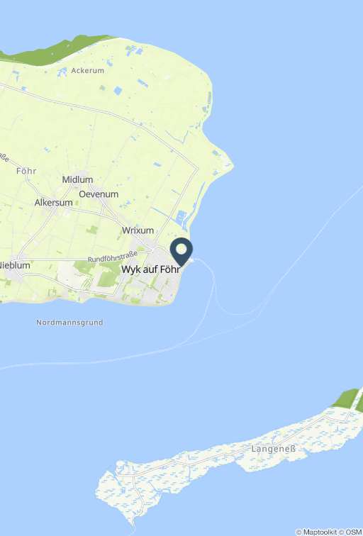 Diese schöne geschmackvoll eingerichtete 50m² große Ferienwohnung liegt in unmittelbarer Strandnähe mit seitlichen Meerblick. Die Wohnung befindet sich im zweiten Obergeschoss einer Appartementanlage. Ein großzügiges Wohnzimmer mit Essecke und Küchenzeile, ein Schlafzimmer mit Doppelbett und ein modernes Duschbad bieten ausreichend Platz für 2-3 Personen. Fußläufig erreicht man schnell die Flaniermeile am Sandwall, wo auch der Badestrand ist. Hier finden sie kleine Läden zum Stöbern, zudem laden einige Cafés und Restaurants zum Verweilen ein. Von hier aus haben Sie einen wunderschönen Blick auf die Halligen und das Wattenmeer. Ihre Unterkunft befindet sich auf der Insel Föhr, der Zweitgrößten Insel in der Nordsee. Föhr liegt mitten im Nationalpark Schleswig-Holsteinisches Wattenmeer und hat durch den Golfstrom ein mildes Seeklima. Schon bei der Anreise mit der Fähre durch das Wattenmeer, entlang der Sandbänke, fängt der Urlaub an. Vielleicht sieht man hier schon den ersten Seehund ;). Ob eine Fahrradtour durch die grüne Natur, ein Strandtag am Meer oder eine Wattwanderung - die Insel Föhr ist sehr vielfältig. Ein Urlaub auf der schönen Insel Föhr lohnt sich in jeder Jahreszeit. Das Team von Clausens Vermietung ist gerne behilflich bei der Objektsuche - sei es in der kleinen Stadt Wyk oder über Land in den schönen Friesendörfern. Die zentral gelegene, strandnahe Ferienunterkunft befindet sich im 2.OG einer Appartementanlage. Die Raumaufteilung ist wie folgt: 1 Schlafraum mit Doppelbett, 1 Wohnraum mit Schlafgelegenheit in Form einer Schlafcouch, 1 Küchenzeile, 1 Badezimmer mit Dusche. Auszeichnung: Haustiere nicht gestattet, Nichtraucher. Küche / Haushalt: Backofen, Cerankochfeld, Filterkaffeemaschine, Geschirrspüler, Wasserkocher. Service: Bettwäsche/Handtücher. Unterhaltung / Kommunik.: Flachbild-TV, Satelliten-TV, W-LAN-Zugang.