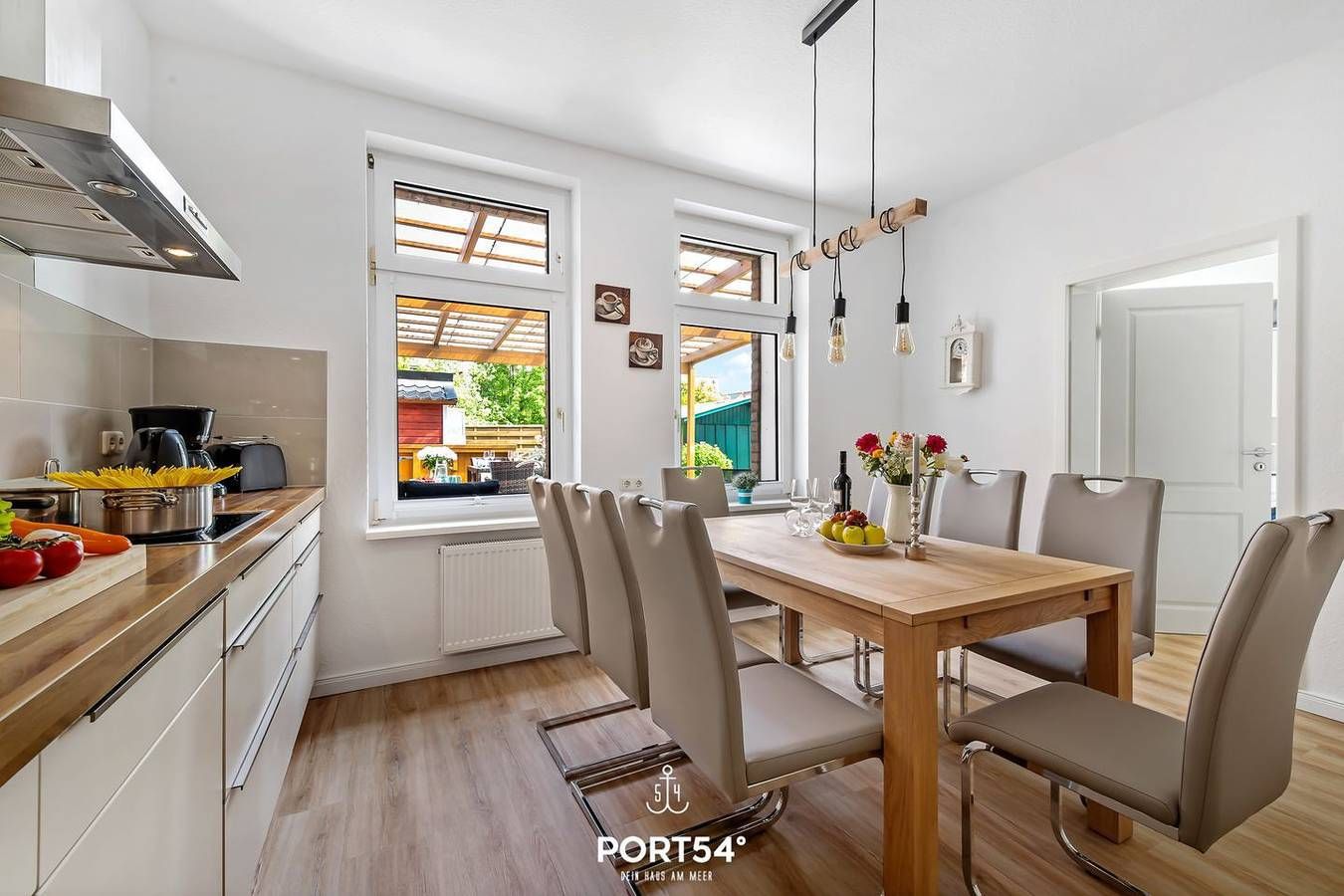 Die Unterkunft "Villa Nova", in absolut zentraler Lage im Zentrum von Büsum, bietet auf 125m² Platz für bis zu 7 Personen. Sie erstreckt sich über zwei Etagen mit einem Wohnbereich, einer Küche, drei Schlafzimmern und zwei Badezimmern. Genießen Sie einen entspannten Abend auf der Couch, die verschiedenen Streaming-Zugänge sorgen für das perfekte Unterhaltungsprogramm. Im Wohnzimmer, der Küche und im oberen Bad sind Alexa Echos vorhanden. Auch die voll ausgestattete Küche mit Magenta-TV lässt keine Wünsche übrig. Die Schlafzimmer besitzen ebenfalls alle einen eigenen TV und für die gute Nachtruhe verdunkelbare Fenster. Im Schlafzimmer im Erdgeschoss befindet sich ein Einzelbett, die im Obergeschoss gelegenen Zimmer verfügen jeweils über ein Doppelbett (160x200cm und 180x200cm). Eine weitere Schlafmöglichkeit bietet die gemütliche Schlafcouch im Wohnbereich. Das im Erdgeschoss gelegene Badezimmer bietet neben einer Dusche auch eine Badewanne. Im Obergeschoss steht eine Dusche zur Verfügung. Lassen Sie Ihren schönen Urlaubstag auf der Terrasse ausklingen und genießen Sie die Abendsonne bei einem Grillabend. Vier Sonnenliegen, eine gemütliche Sitzecke und Lounge, sowie ein Esstisch stehen für Sie bereit. Vor dem Haus befindet sich eine kostenfreie Parkmöglichkeit. Mitgebrachte Fahrräder können Sie im Gartenhaus, oder auf der überdachten Terrasse abstellen.