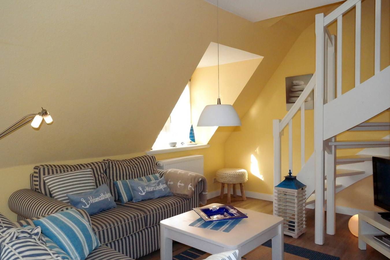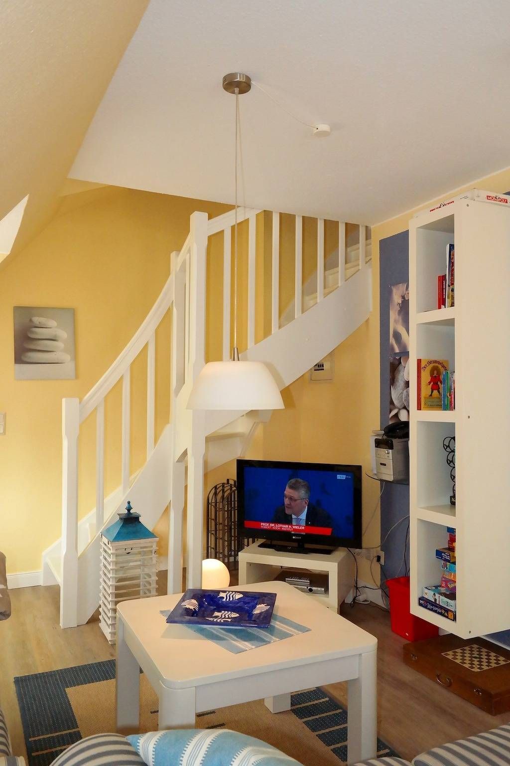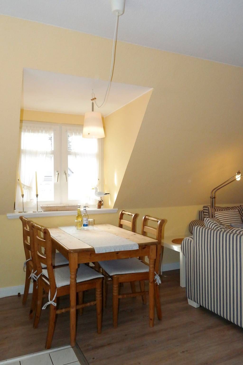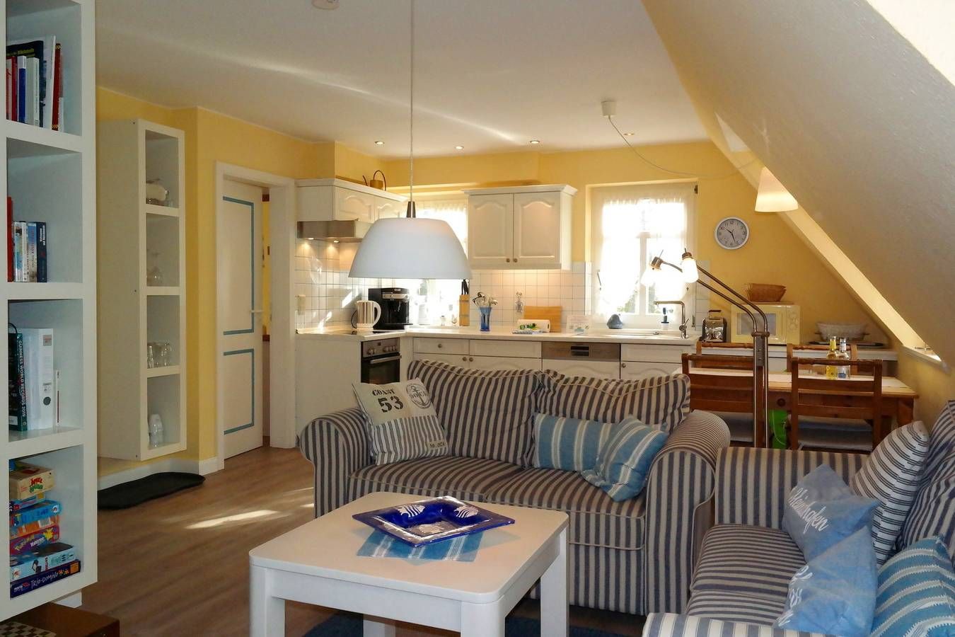 Zentral in Wyk liegen die drei Wohnungen des Hauses Gud Tidj in einer Ferinhausanlage auf einem ca. 3000 m² großen Grundstück mit viel Platz zum Toben und Spielen für unsere kleinen Gäste. Selbstverständlich sind Spielgeräte vorhanden. Die gemütliche Ferienwohnung wurde liebevoll eingerichtet und dekoriert und verfügen über eine umfassende Ausstattung die keine Wünsche offen lässt.Kabel-TV, Telefon und Stereoanlage sowie in das Wohnzimmer integrierten Küchenzeile mit Backofen, Geschirrspüler, Wasserkocher usw. bieten Ihnen den gehobenen Komfort, den Sie von der Wohnung erwarten dürfen. Die Wohnung 03 (ca. 35 m²) befindet sich im 1. OG und verfügt über ein Schlafzimmer mit Doppelbett. Außerdem gehört ein Schwimmbad, Sauna und ein Fitnessraum mit Crosstrainer, Ergometer und Schrägbank zur Anlage. Nur drei Gehminuten zur Promenade und zum großen Badestrand. In unmittelbarer Nähe befinden sich der Park an der Mühle sowie alle Erholungs- und Einkaufsmöglichkeiten, Cafés & Restaurants. Der Fährhafen ist in wenigen Minuten zu Fuß erreicht.